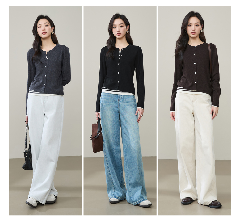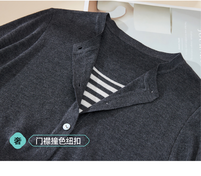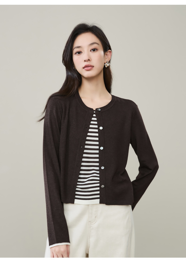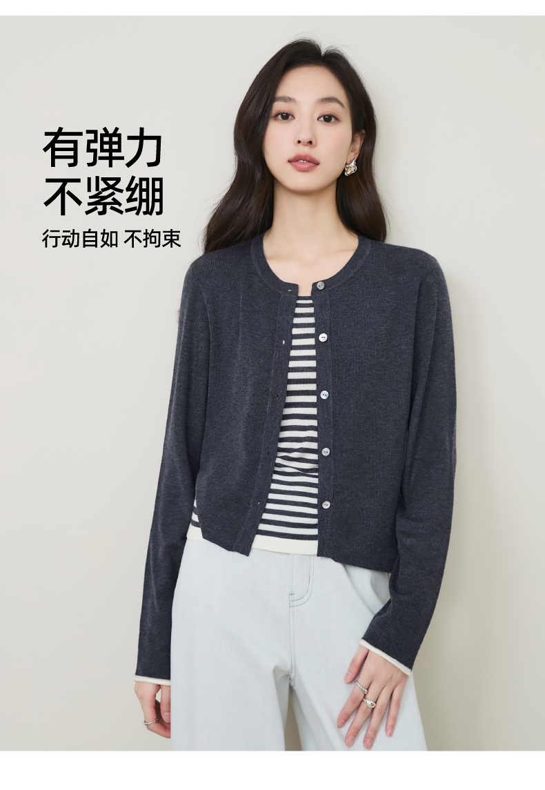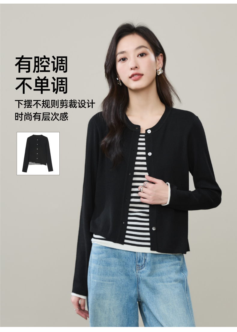【绵羊毛&桑蚕丝-假两件开衫】逸阳秋款外搭圆领气质长袖针织外套5292
