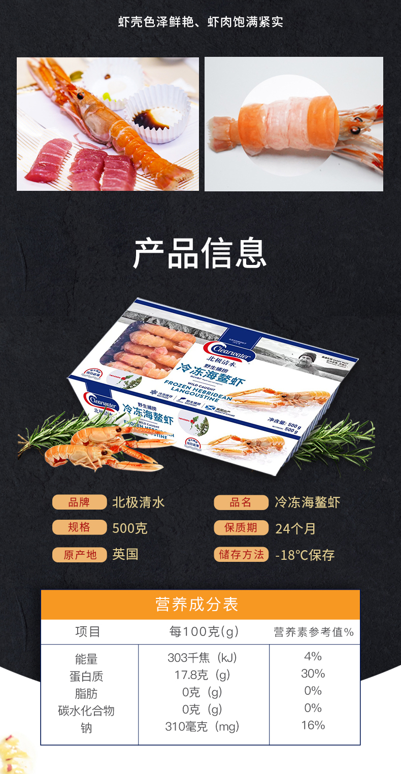 Clearwater/北极清水冷冻海鳌虾500g(20-30只/kg)