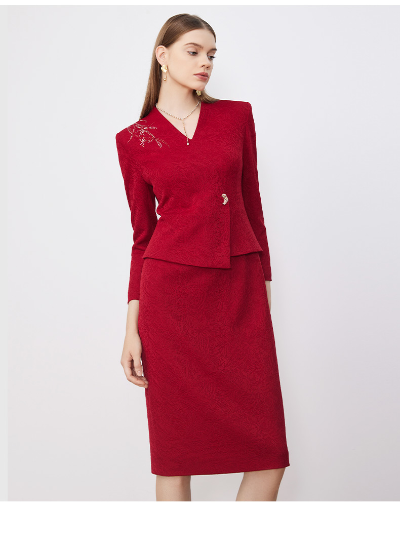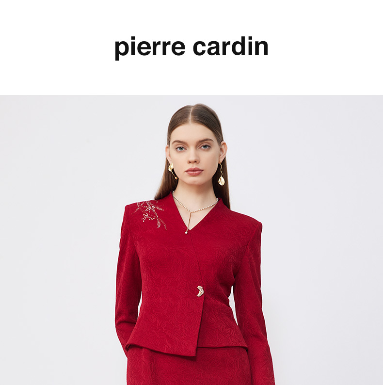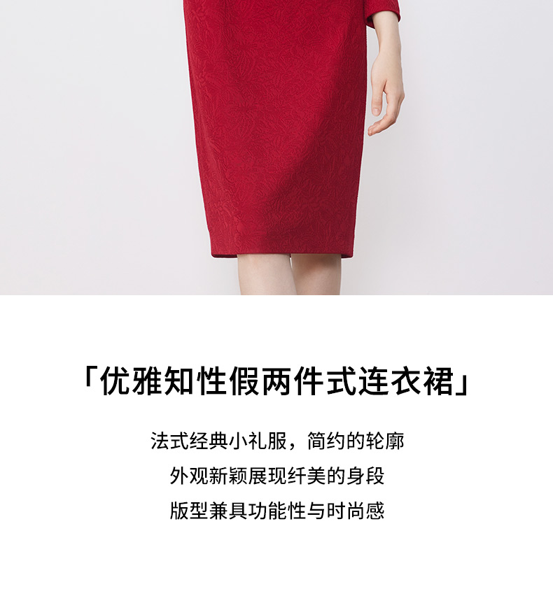 皮尔卡丹女装连衣裙假两件醋酸红色优雅场合A字裙P3314E3887T0