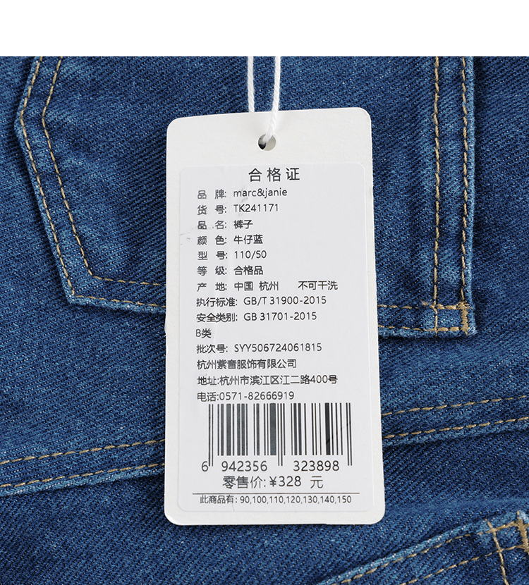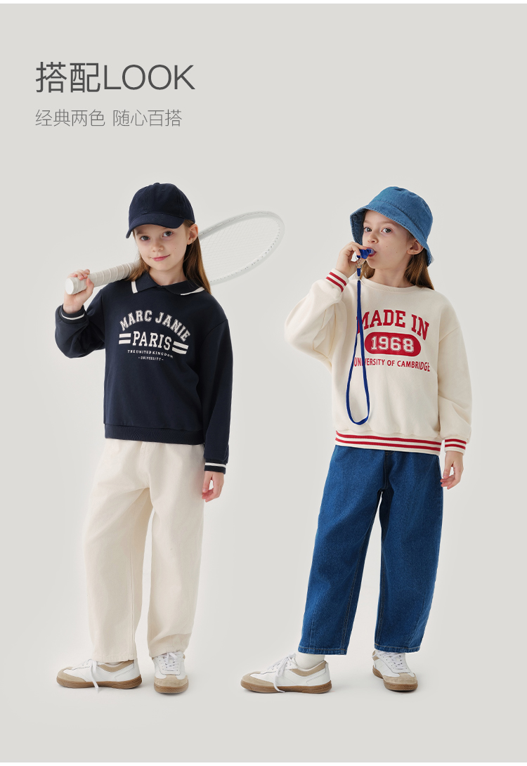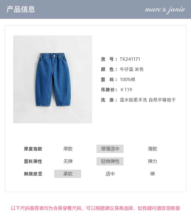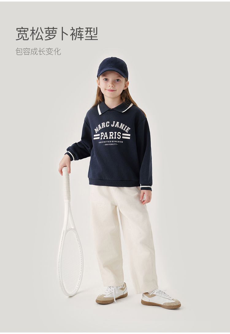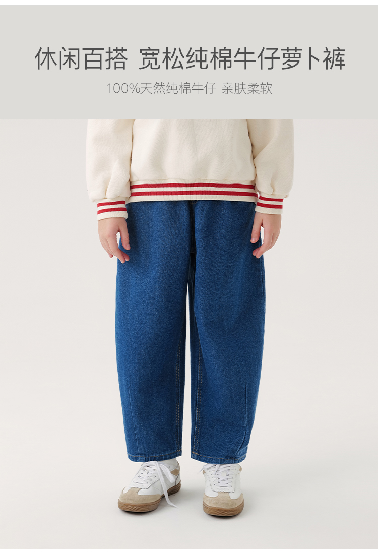 马克珍妮女童裤子春秋款宽松纯棉牛仔裤萝卜裤儿童秋装裤子241171