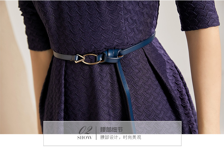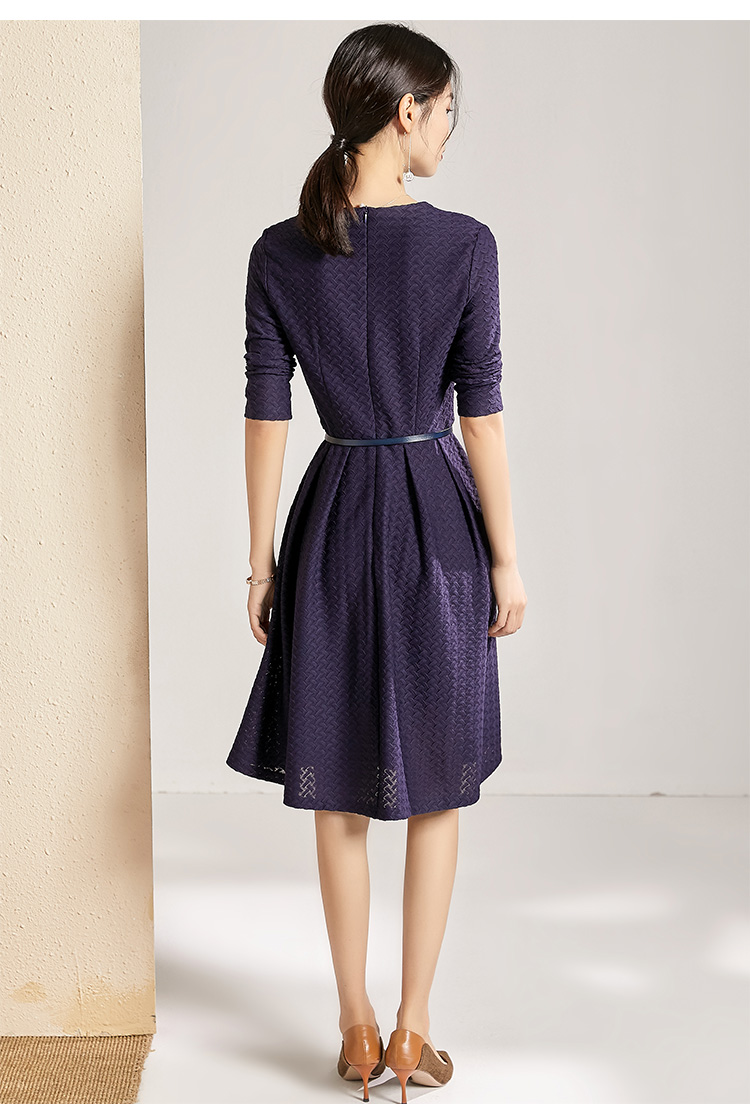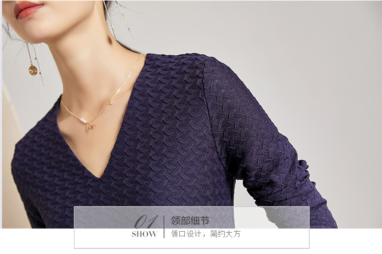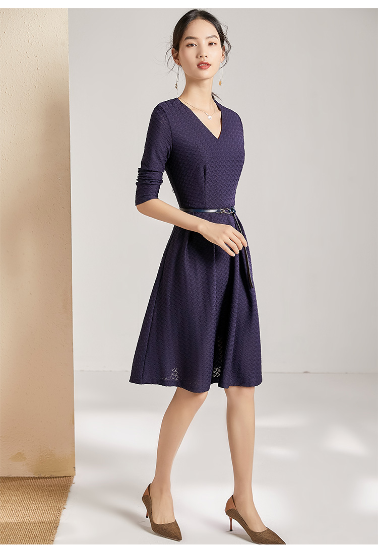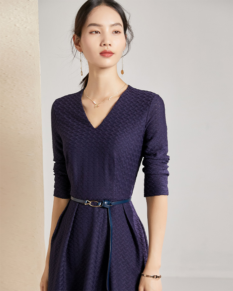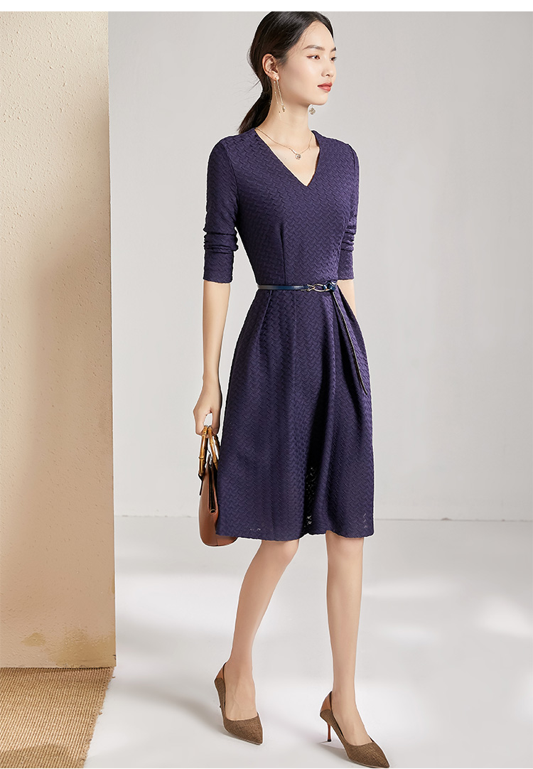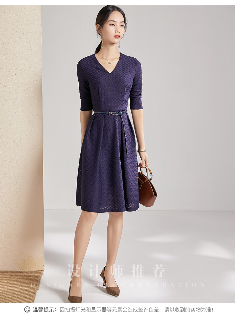 剩S 【透气梭织裙子】新款秋季透气梭织花纹V领长袖连衣裙