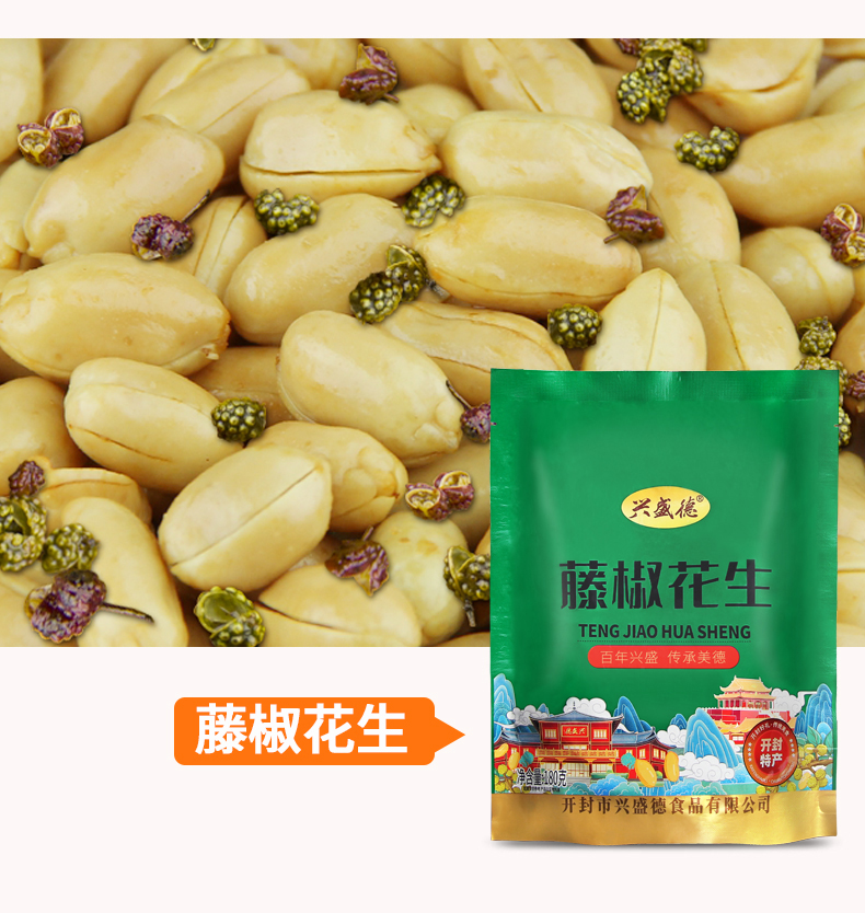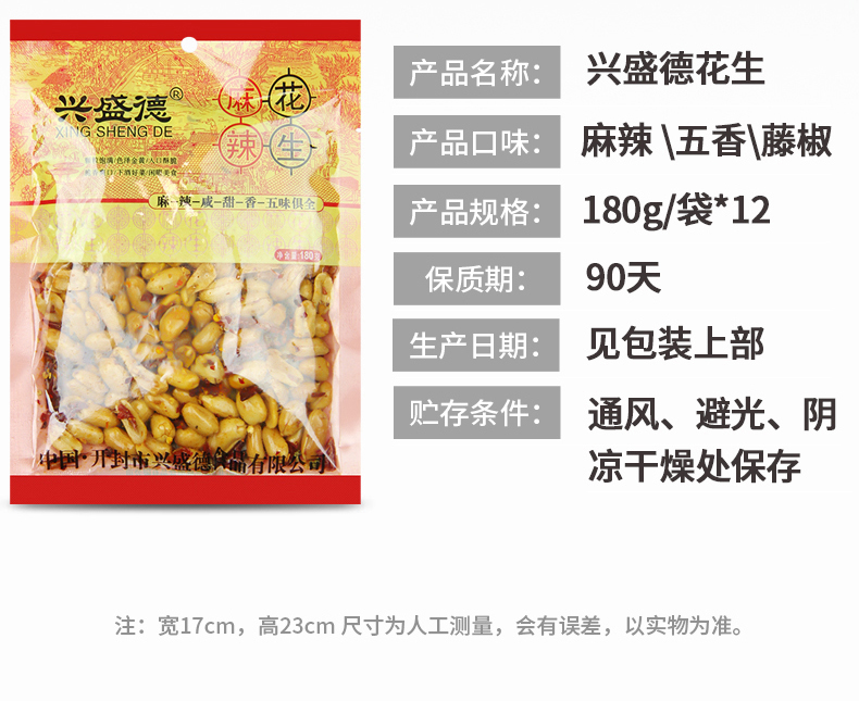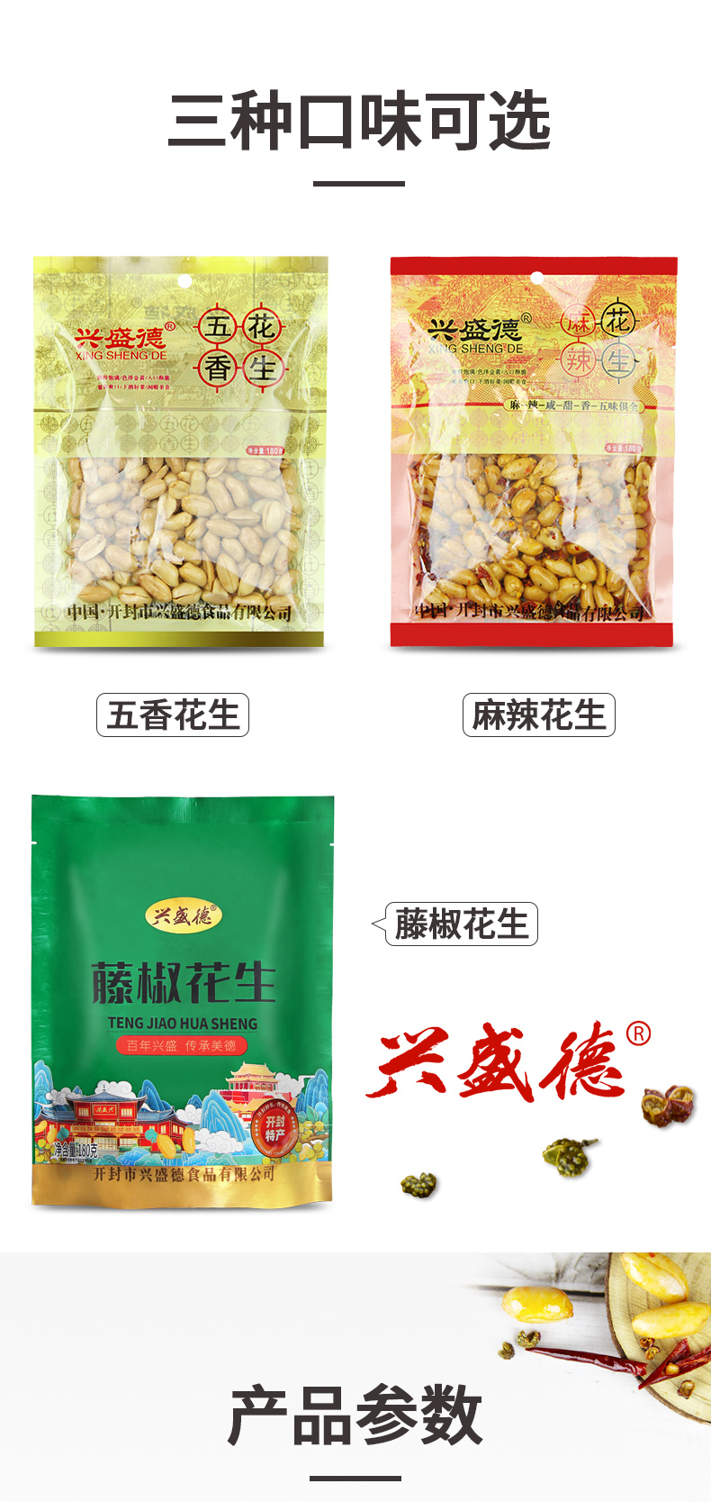 河南开封特产兴盛德麻辣藤椒五香花生180g*12袋组合装