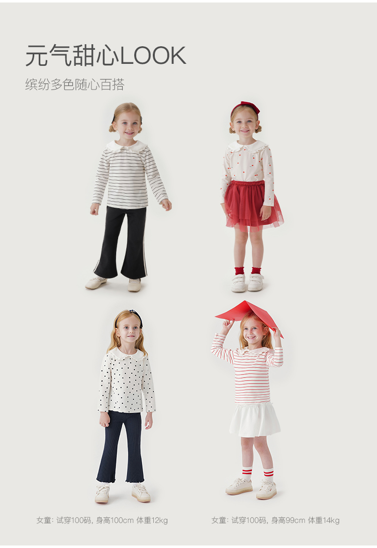 马克珍妮女童花边娃娃领条纹长袖T恤 儿童打底衫秋装新款241180