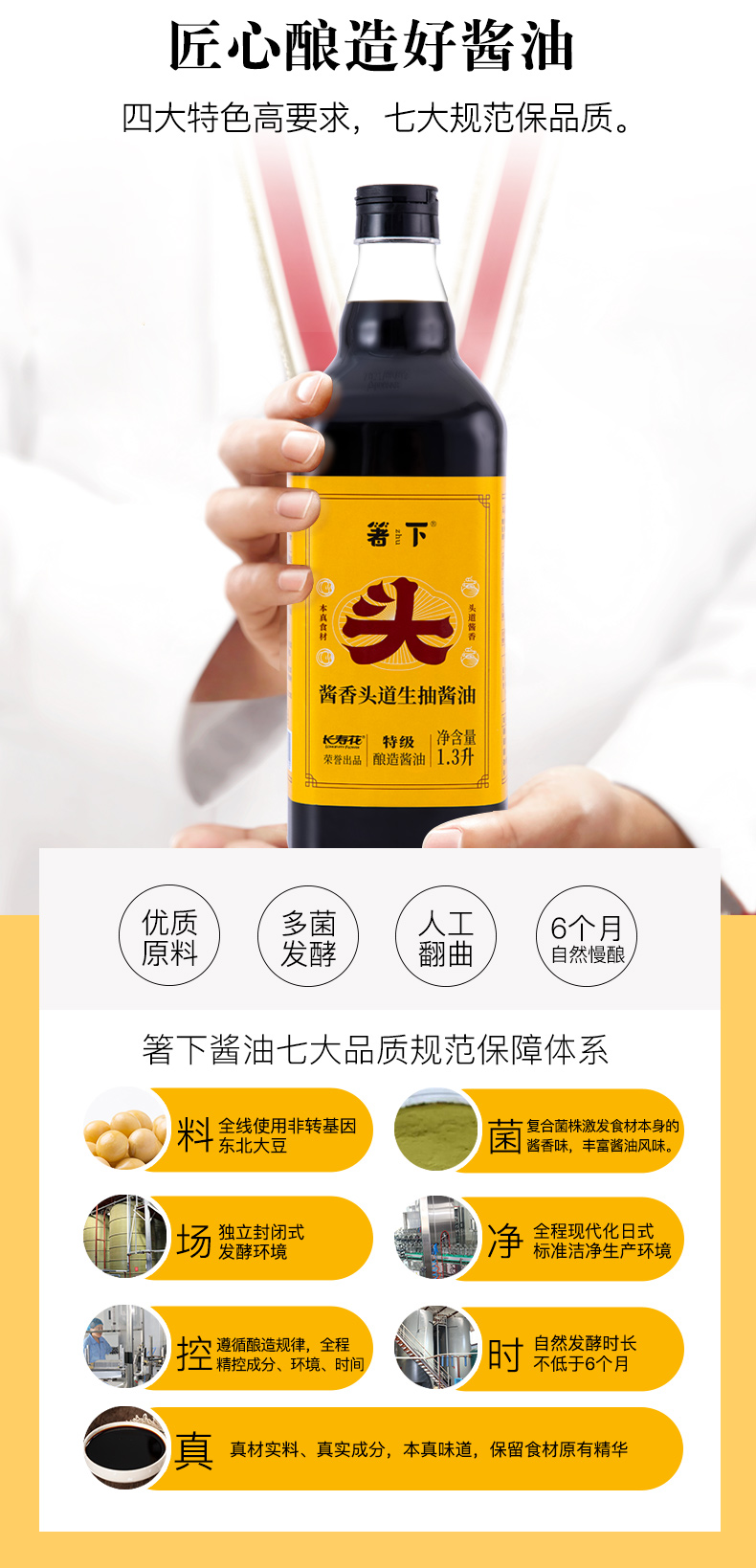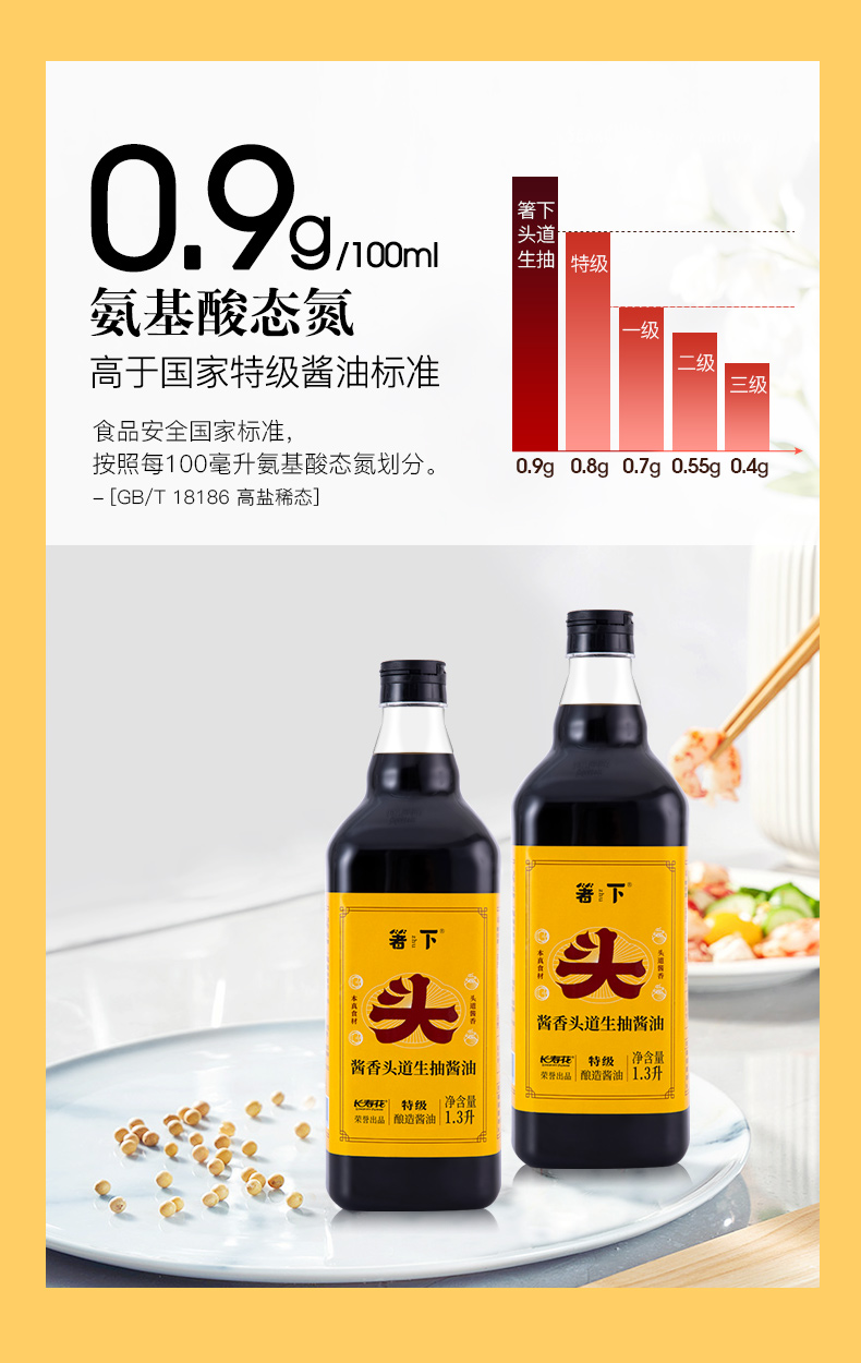 【特价品】长寿花箸下酱油特级头道生抽酱油1.3L酿造酱油家用调味厨房炒菜凉拌