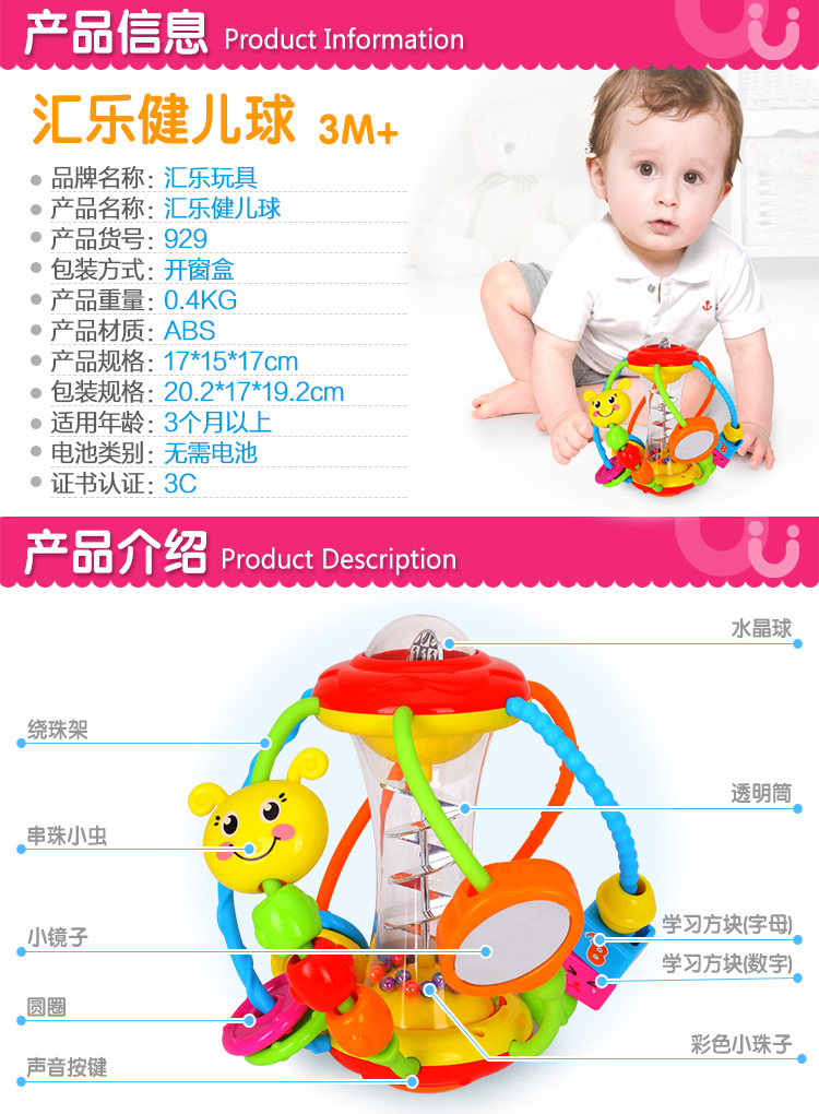 汇乐玩具(HUILE TOYS)益智玩具 摇铃手抓球 健儿球 929