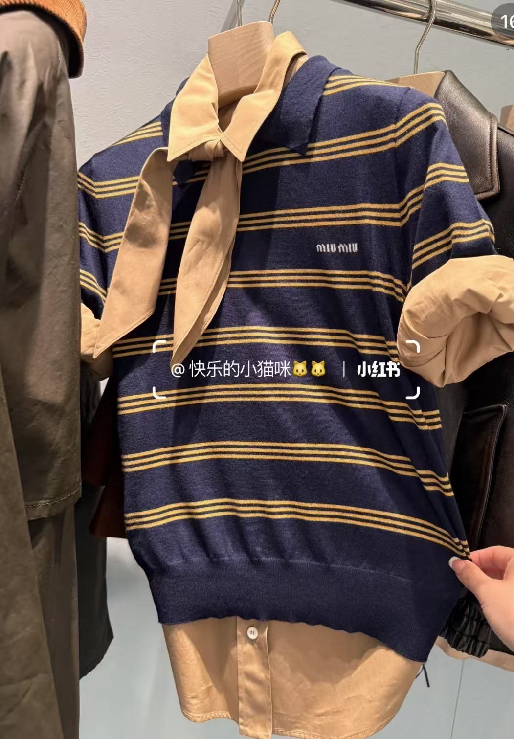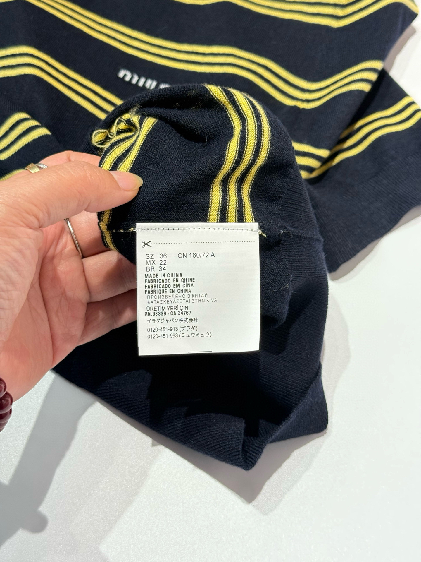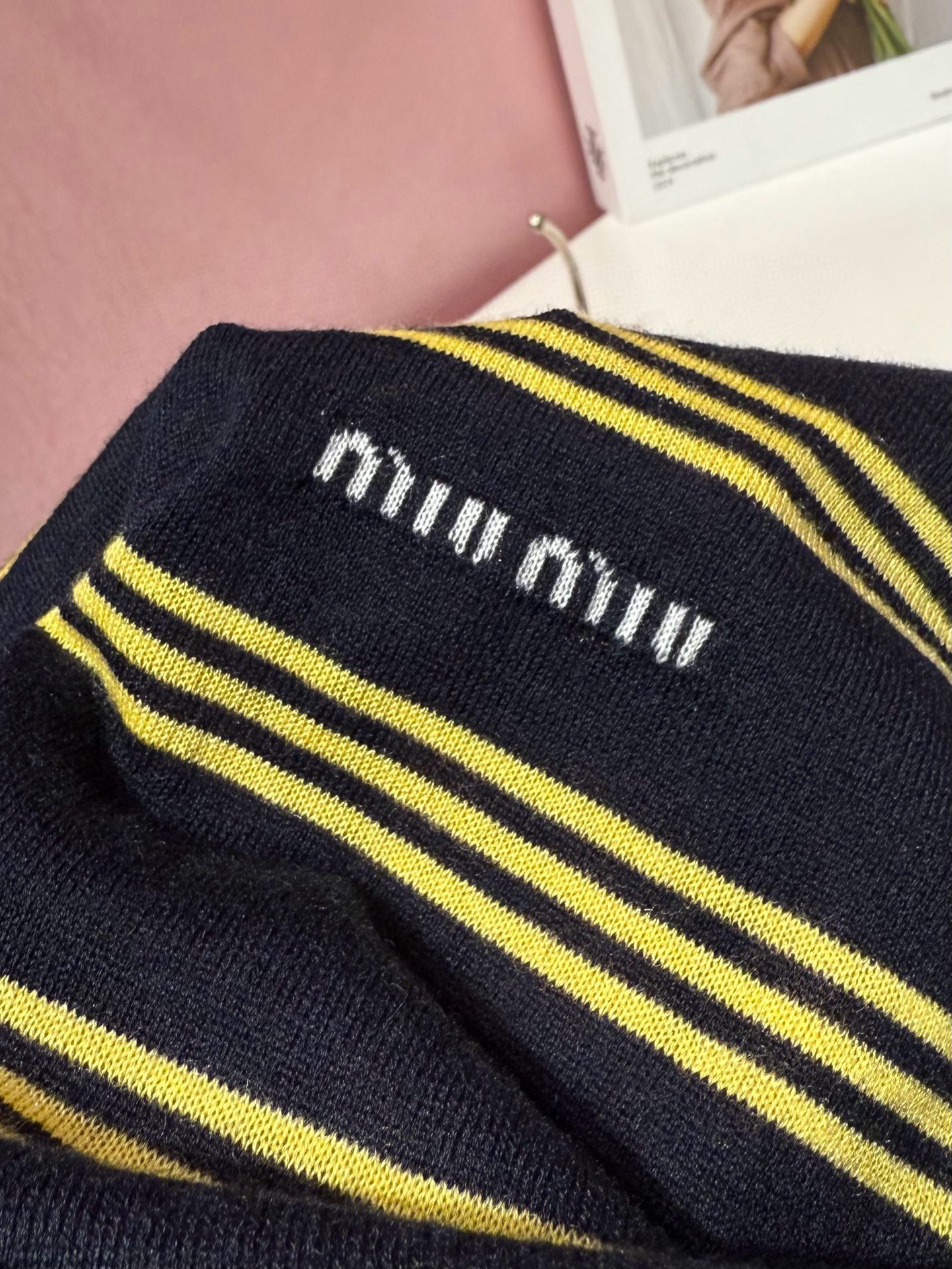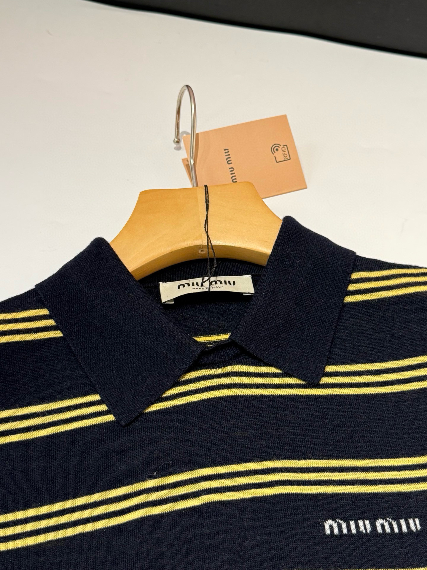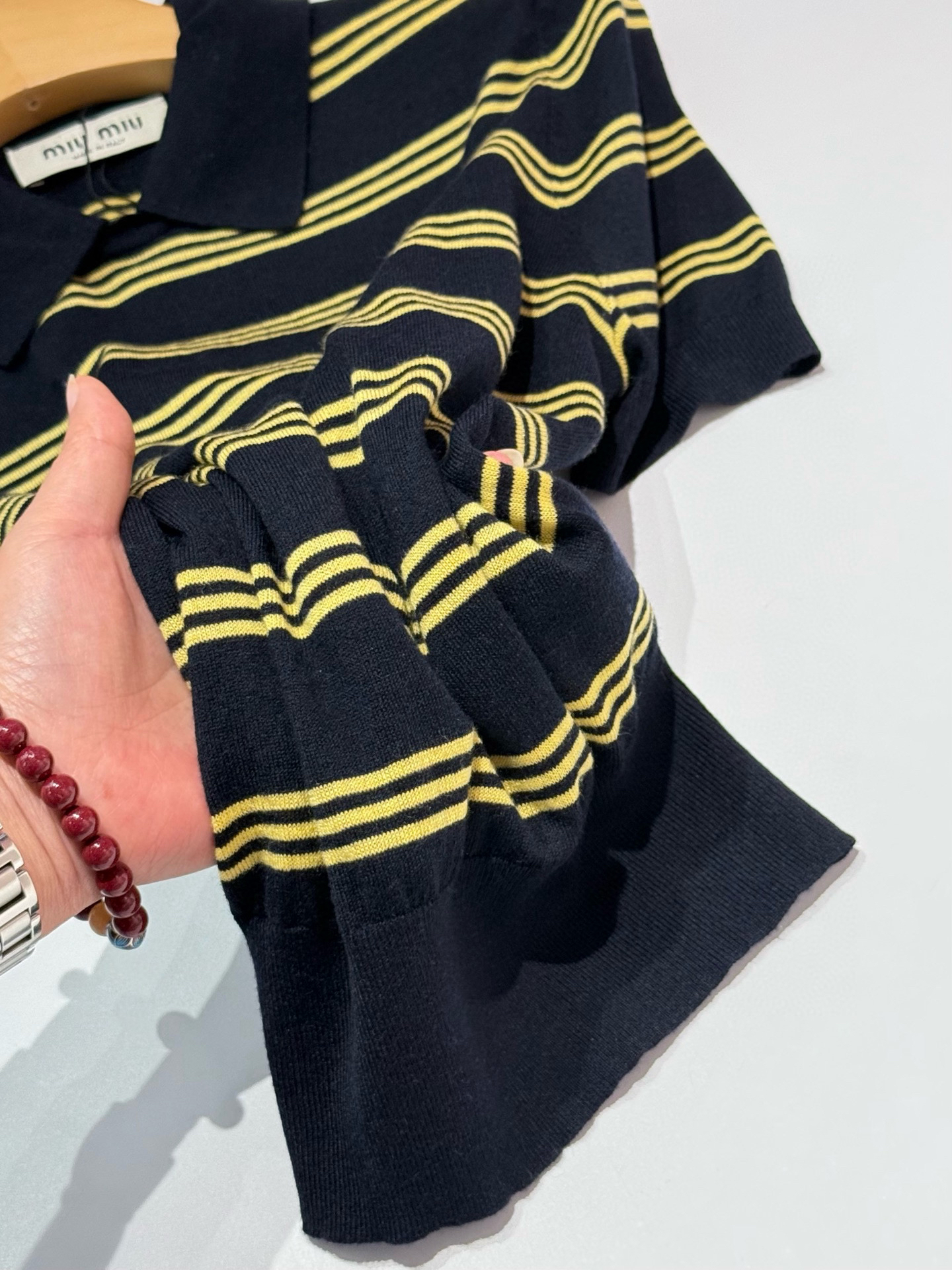 谁能拒绝MIU风魅力啊!复古与俏皮皆备,藏蓝色和亮黄相间的条纹配色,活泼又亮眼,上身秒变时髦精,不管搭配百褶裙打造甜酷学院风,还是配休闲裤应在随性氛围感,都毫无压力~