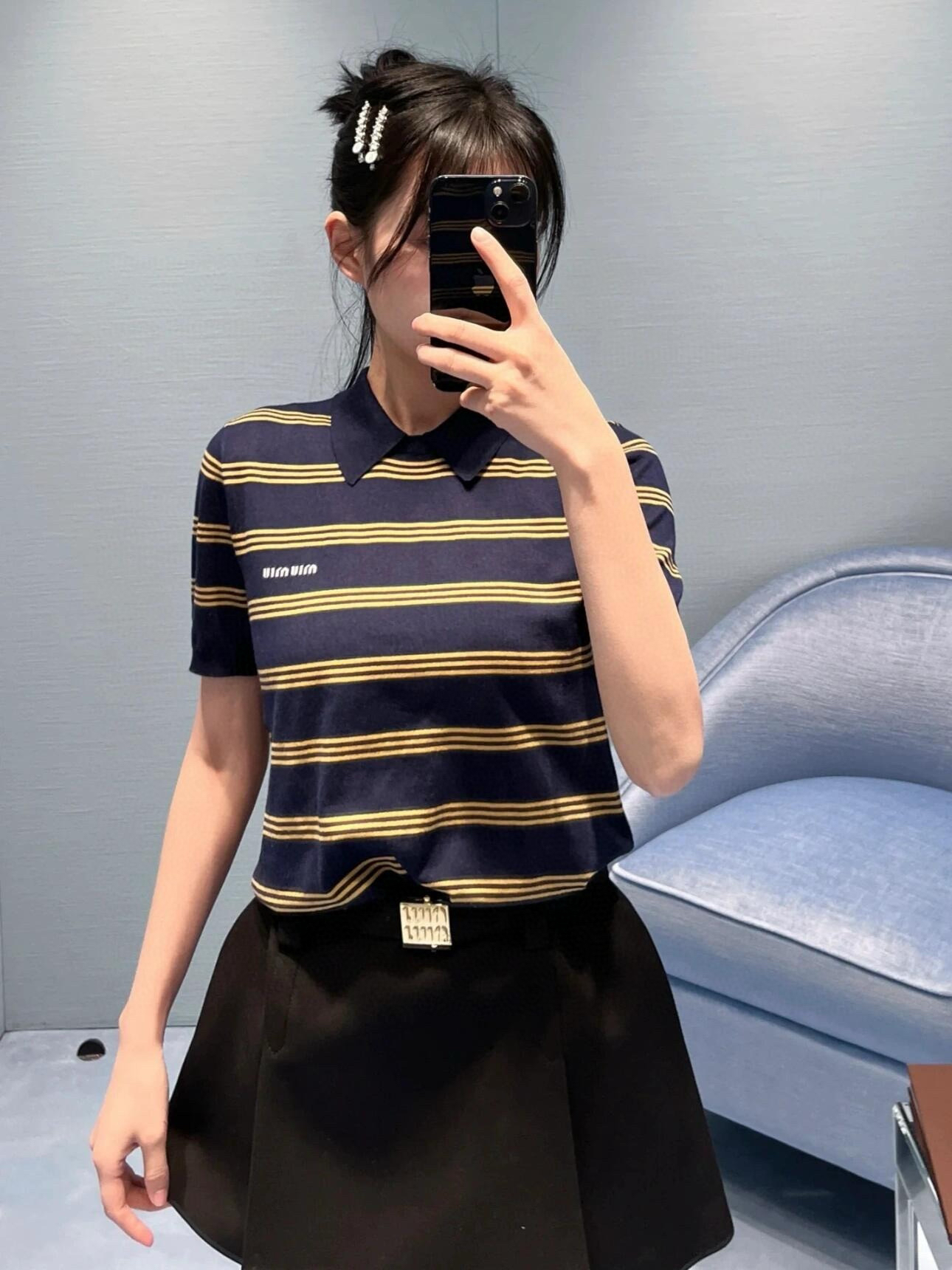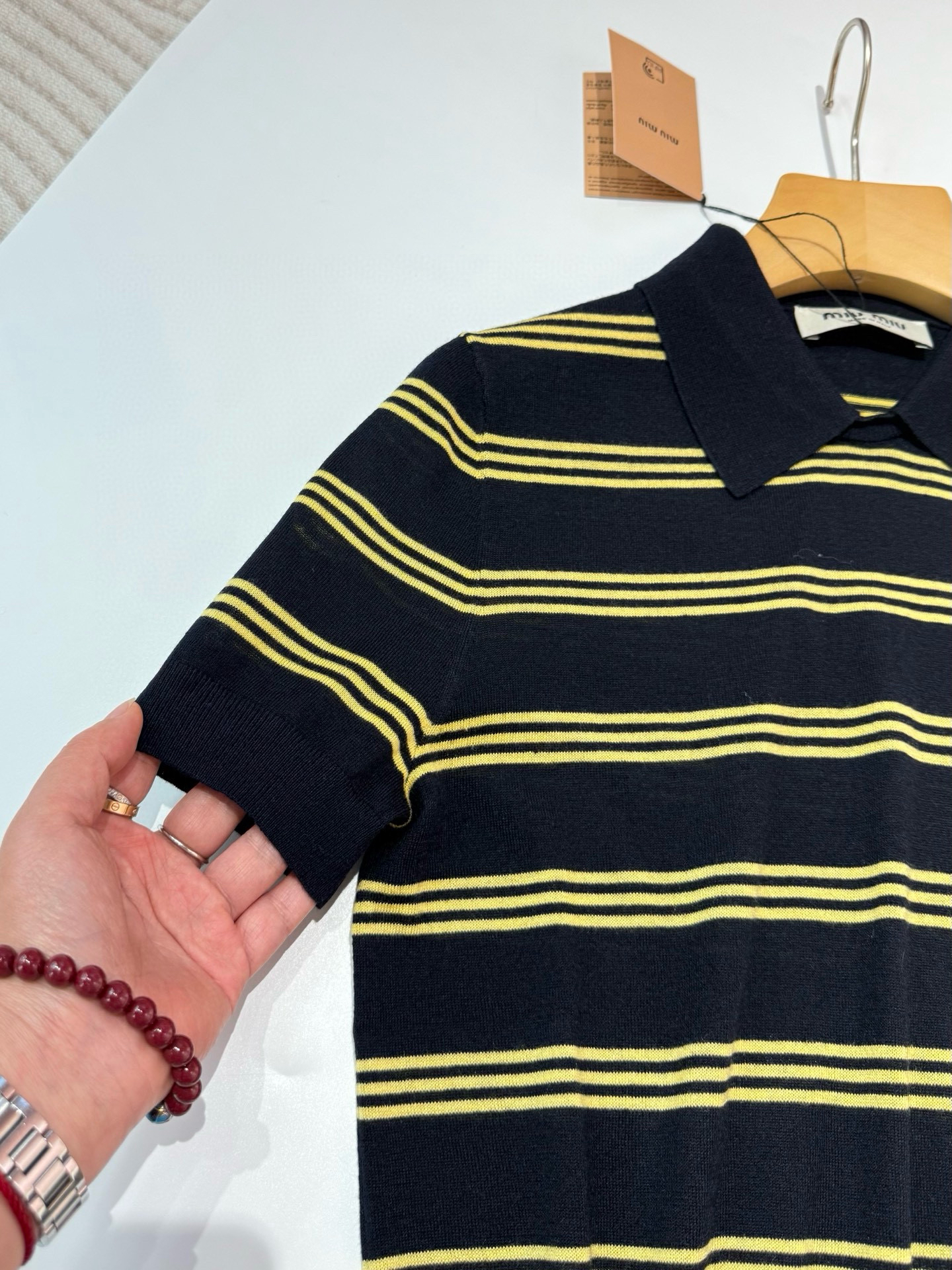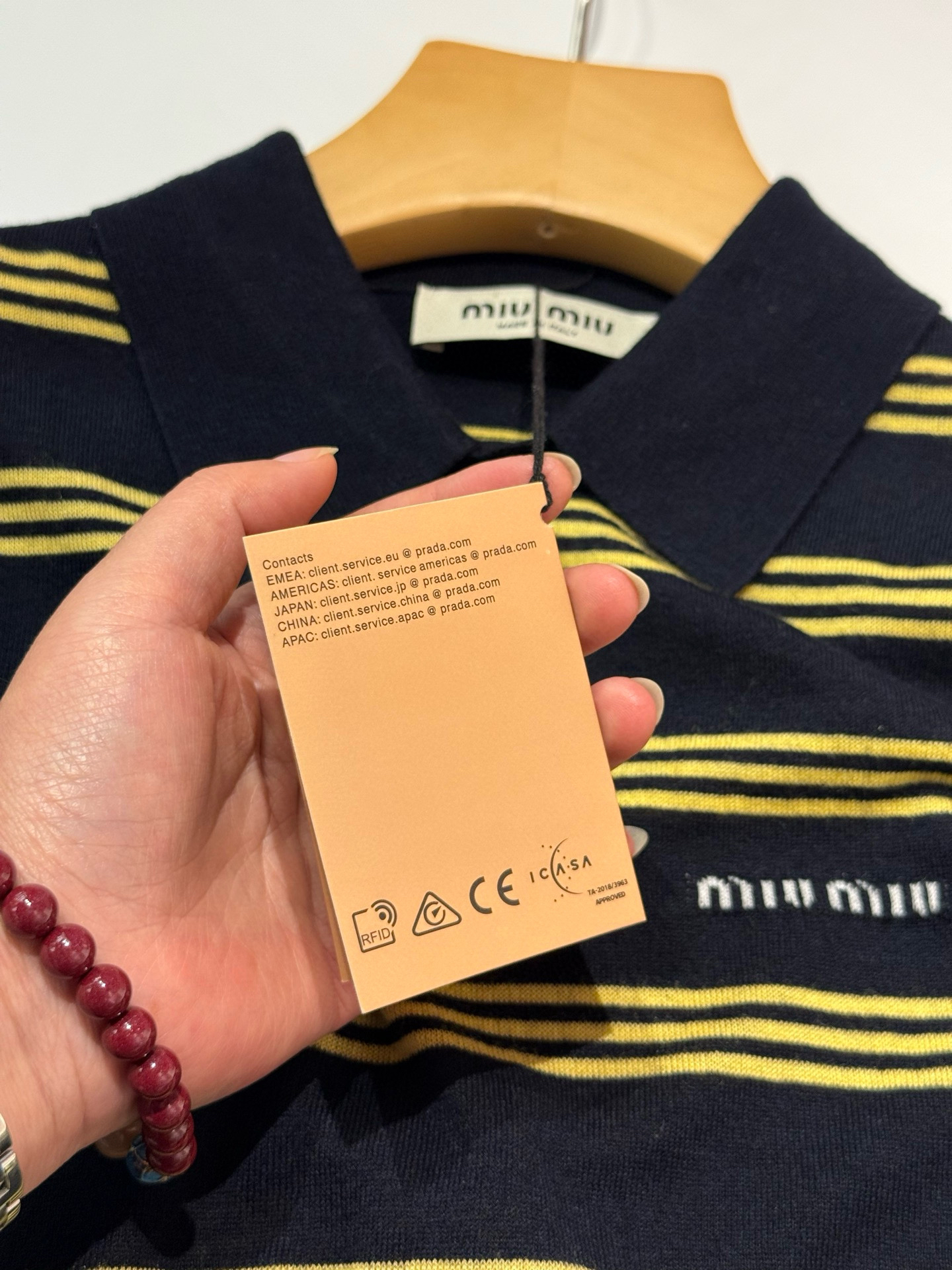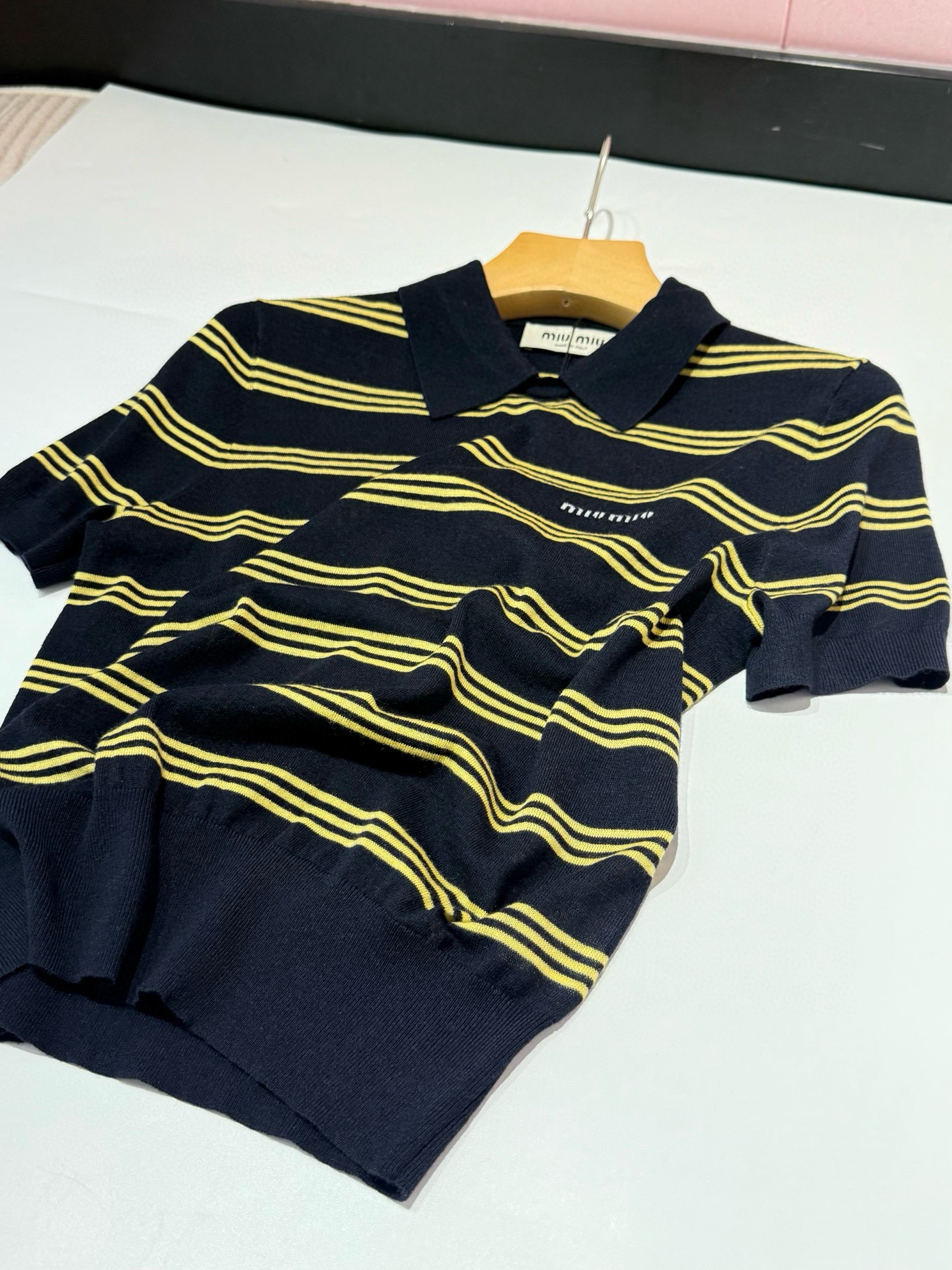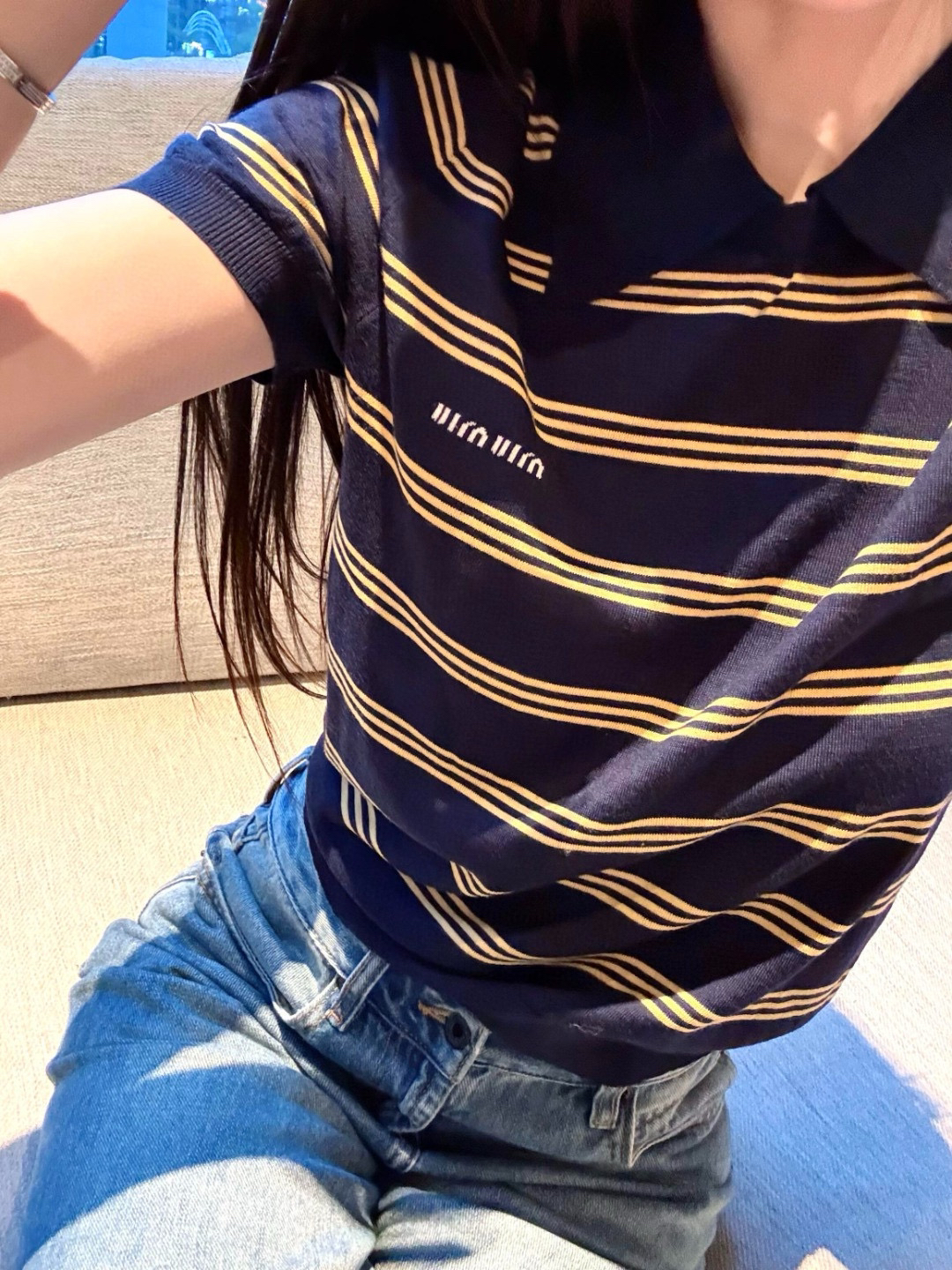 谁能拒绝MIU风魅力啊!复古与俏皮皆备,藏蓝色和亮黄相间的条纹配色,活泼又亮眼,上身秒变时髦精,不管搭配百褶裙打造甜酷学院风,还是配休闲裤应在随性氛围感,都毫无压力~