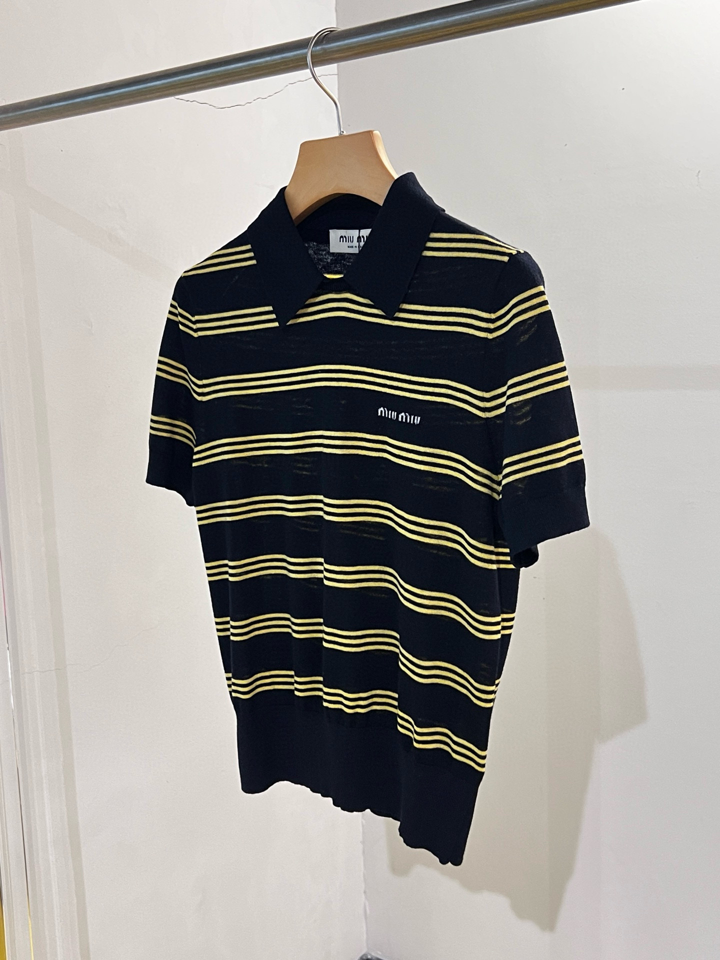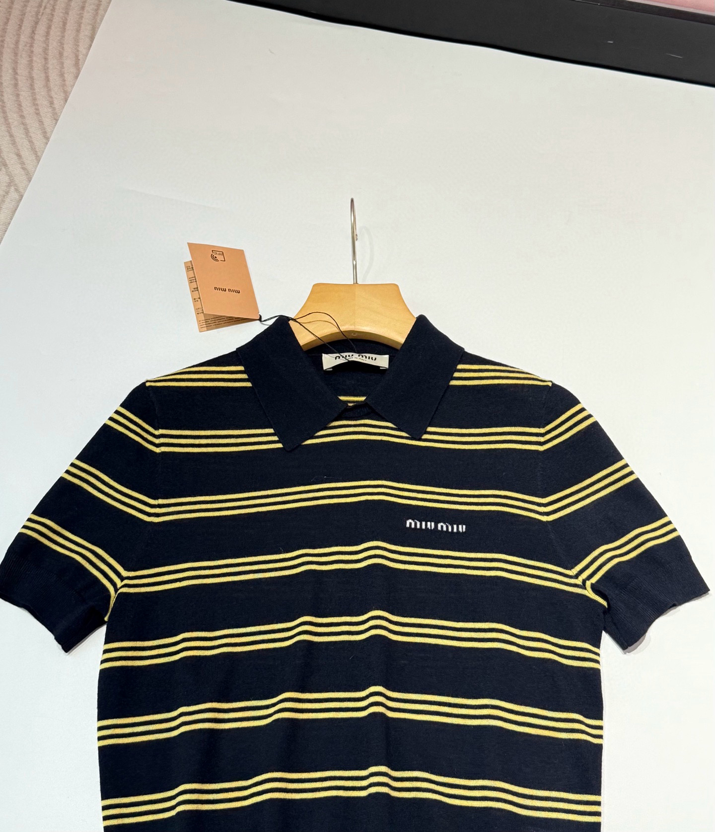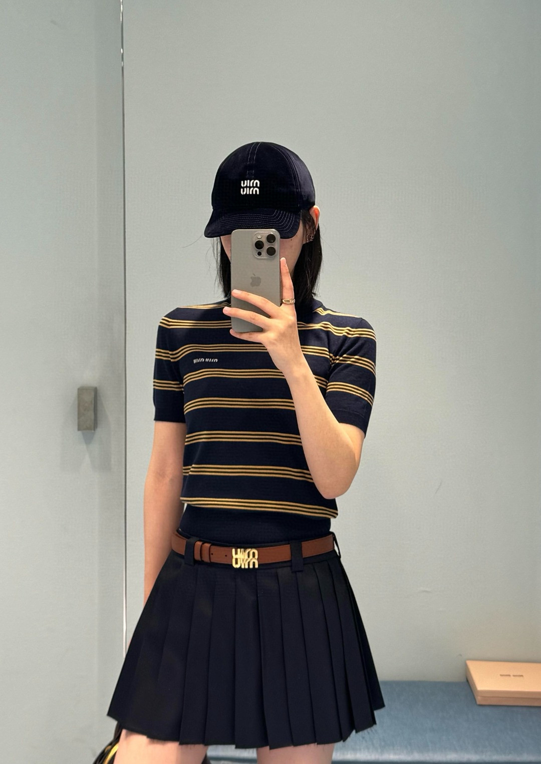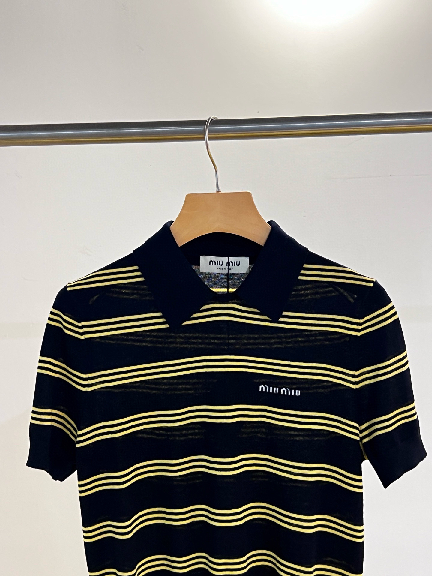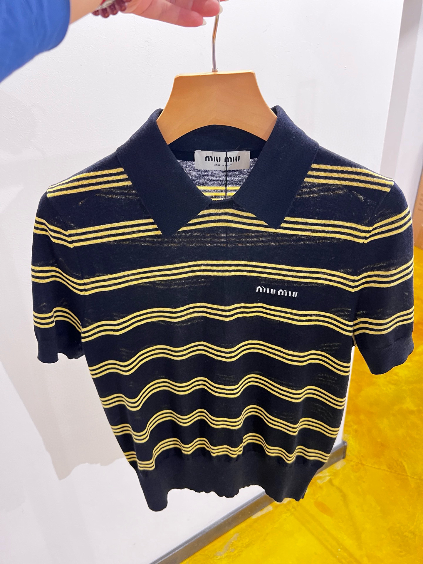 谁能拒绝MIU风魅力啊!复古与俏皮皆备,藏蓝色和亮黄相间的条纹配色,活泼又亮眼,上身秒变时髦精,不管搭配百褶裙打造甜酷学院风,还是配休闲裤应在随性氛围感,都毫无压力~