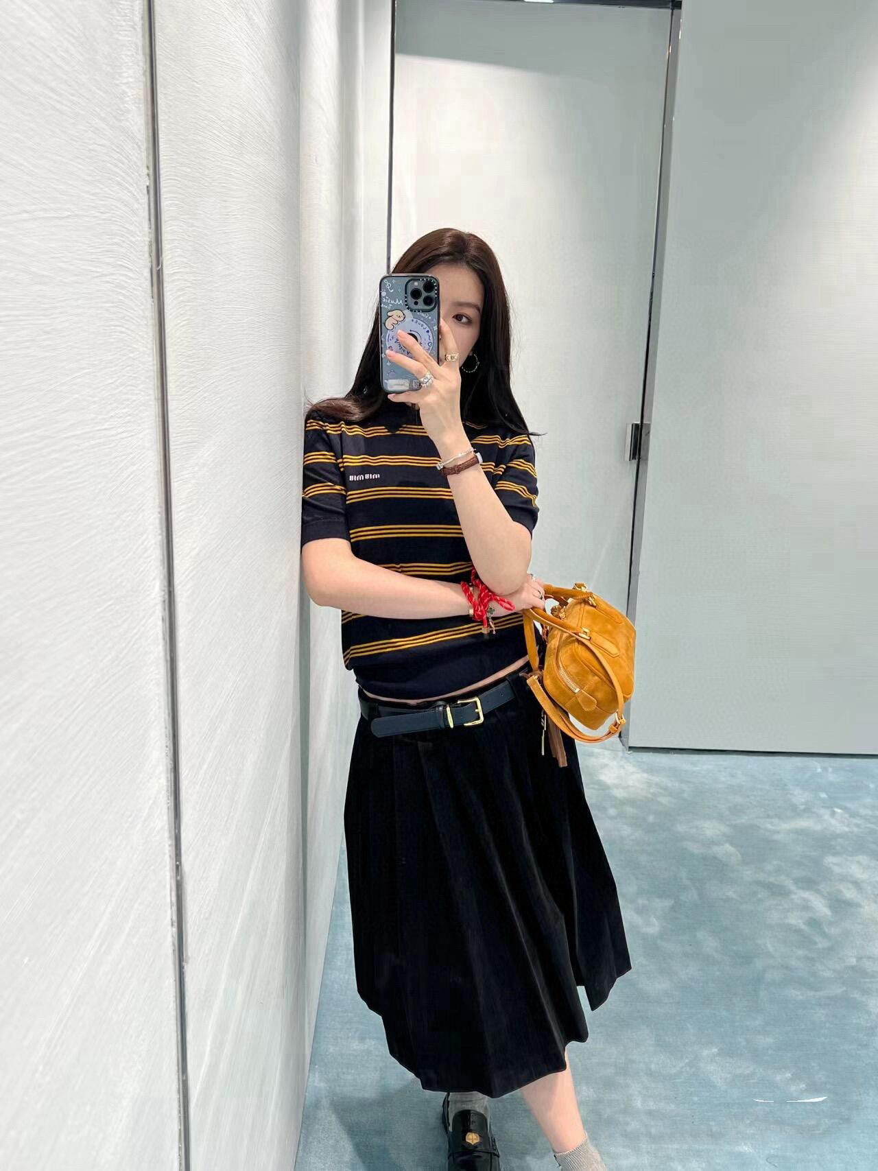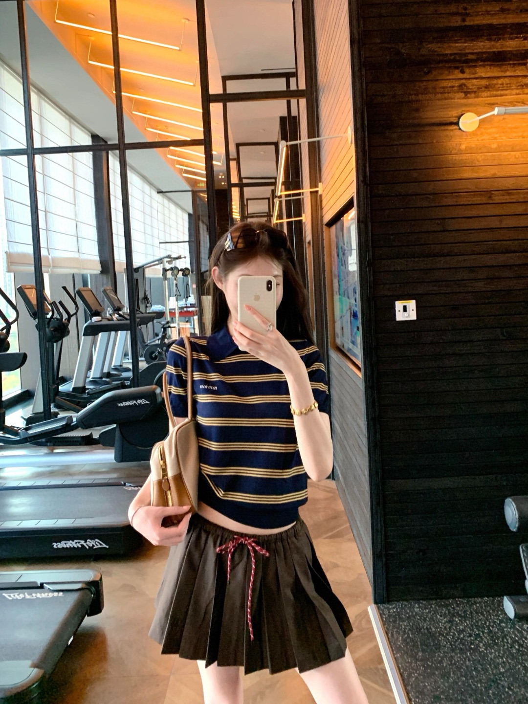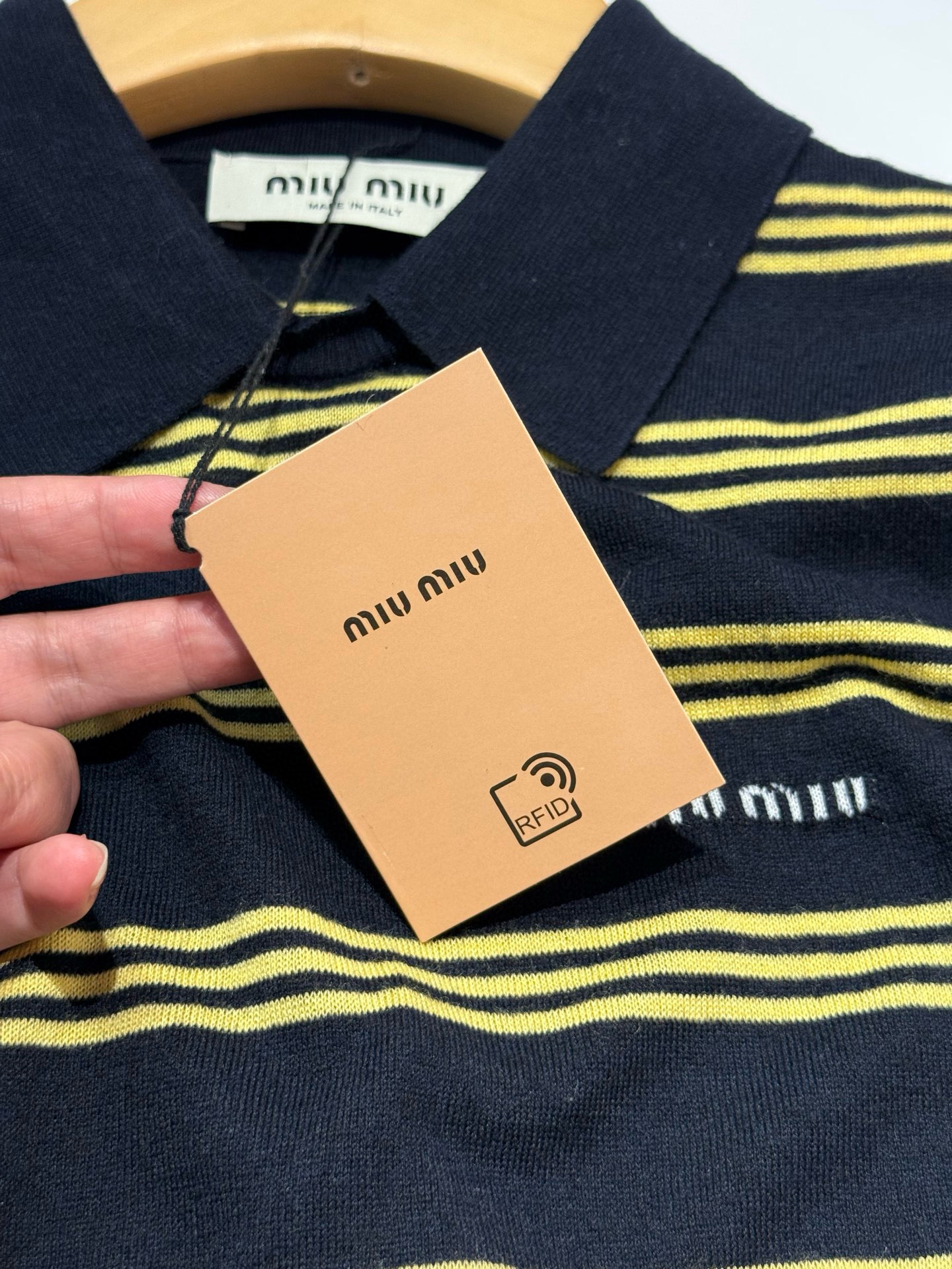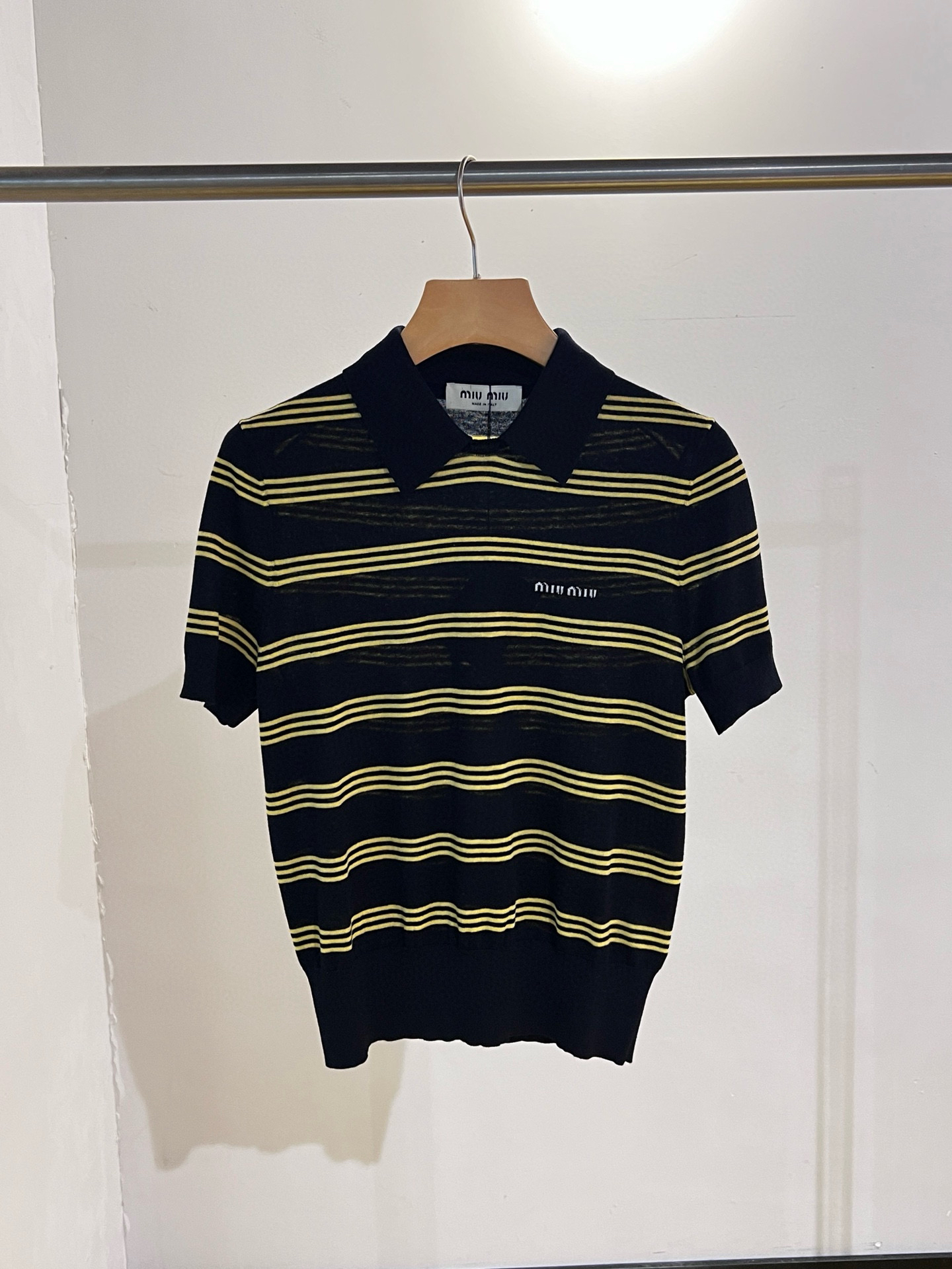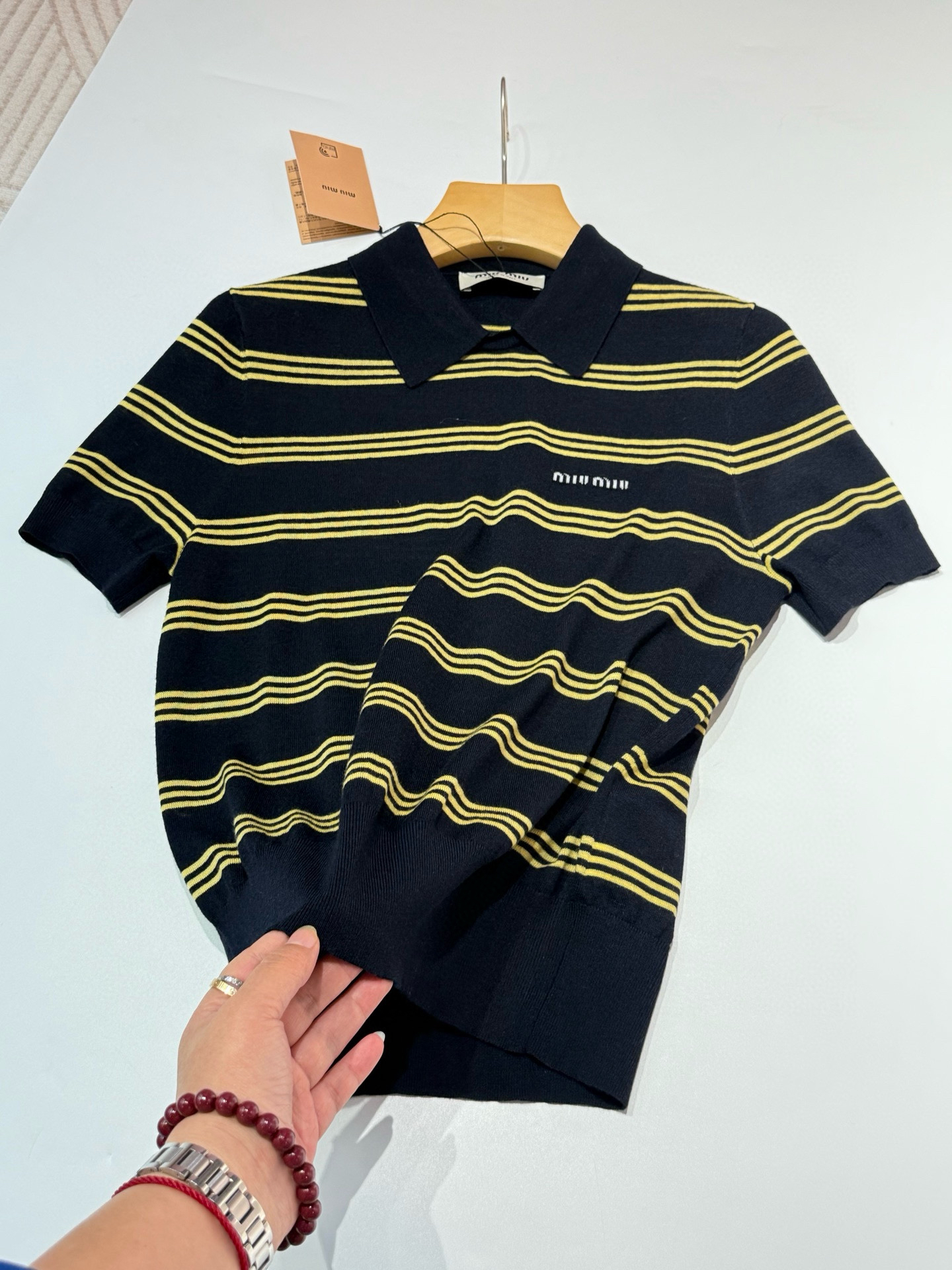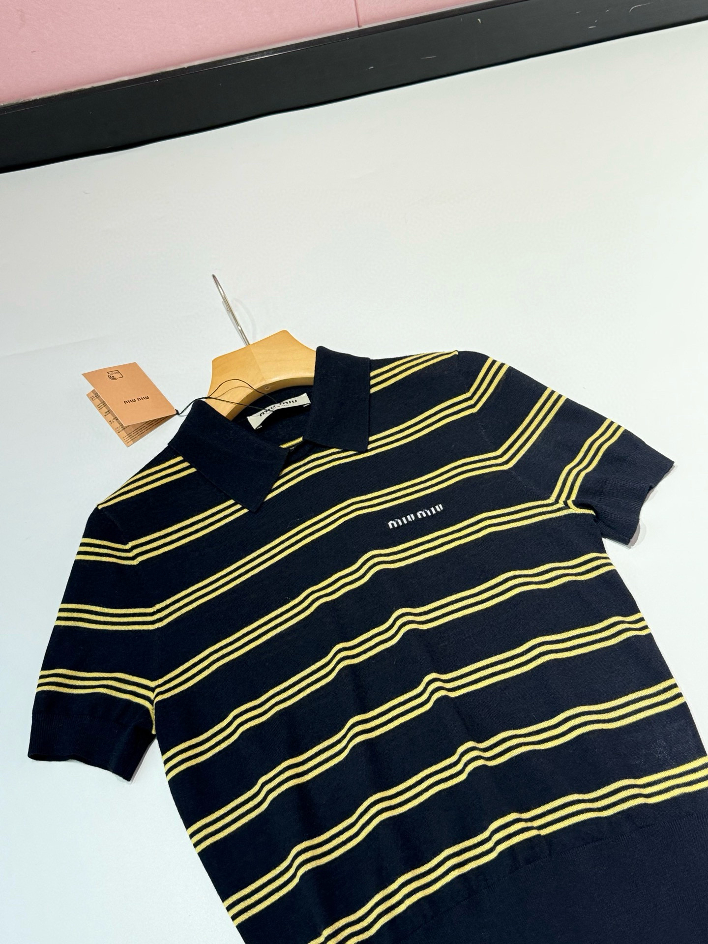 谁能拒绝MIU风魅力啊!复古与俏皮皆备,藏蓝色和亮黄相间的条纹配色,活泼又亮眼,上身秒变时髦精,不管搭配百褶裙打造甜酷学院风,还是配休闲裤应在随性氛围感,都毫无压力~