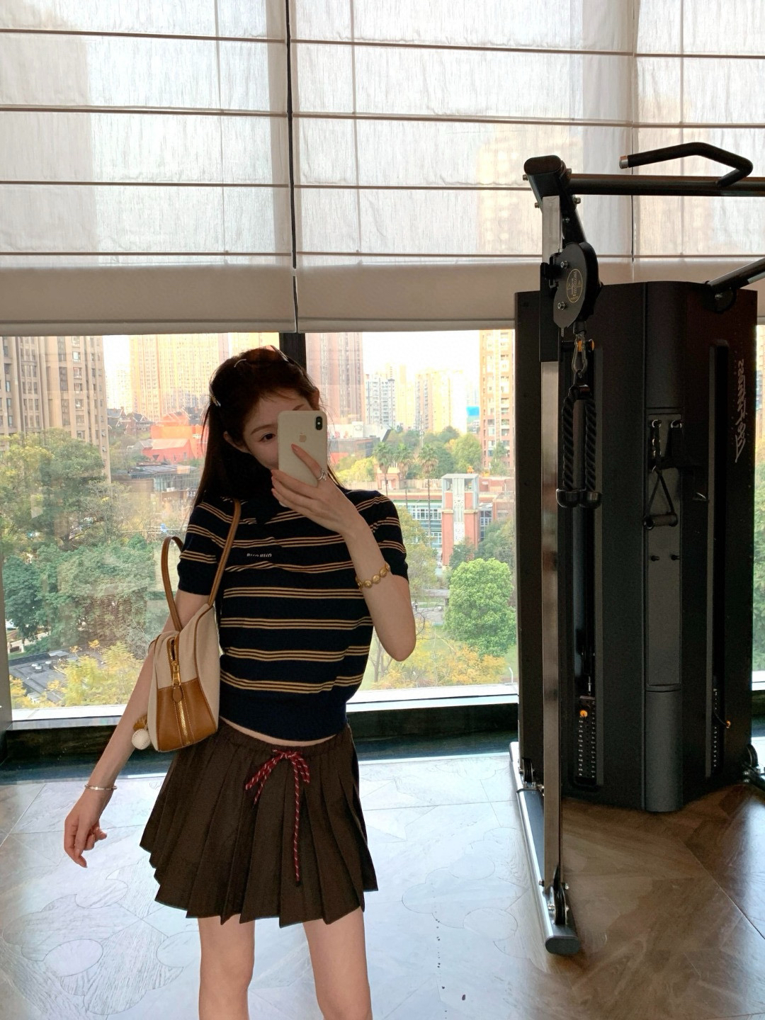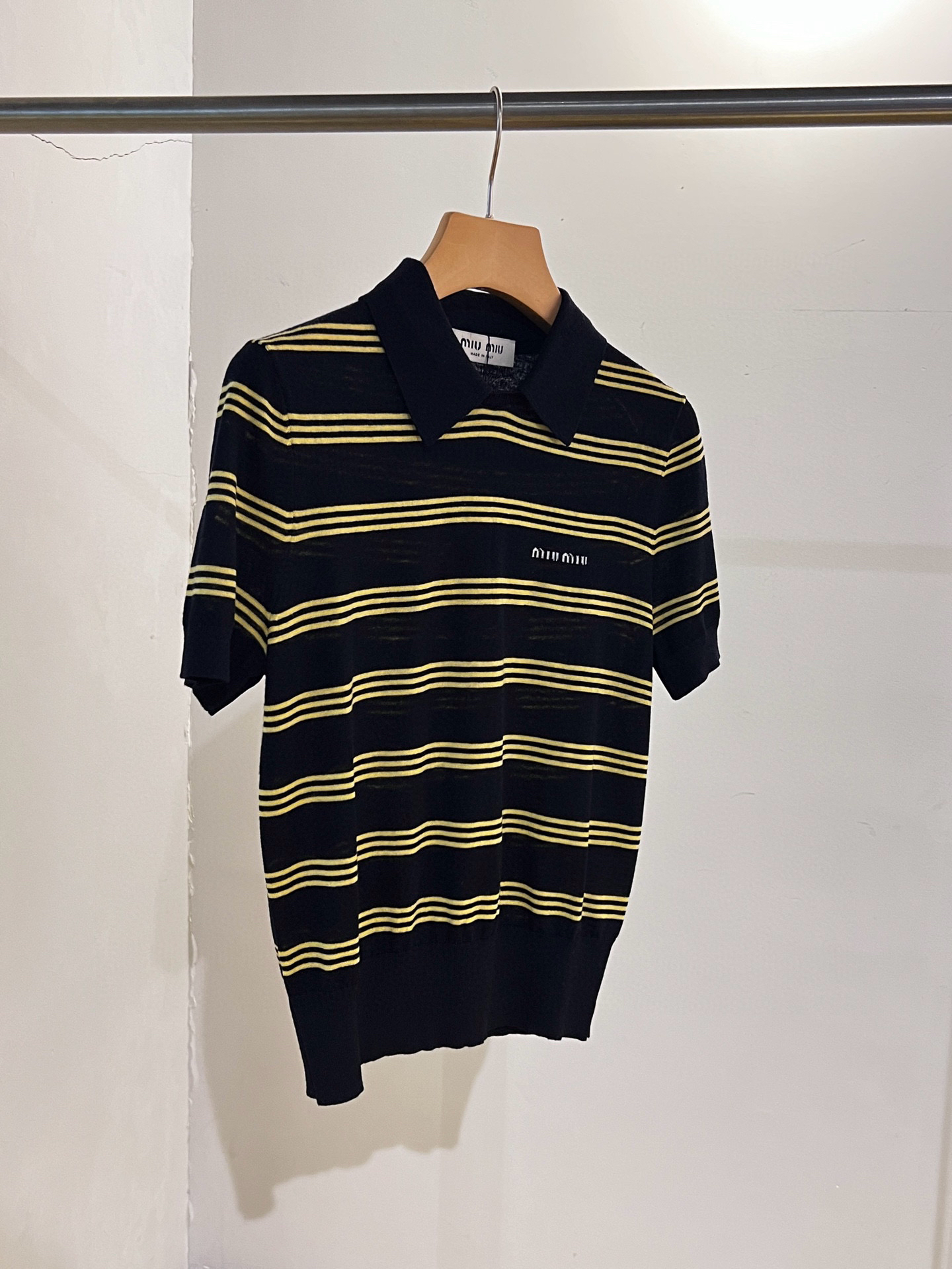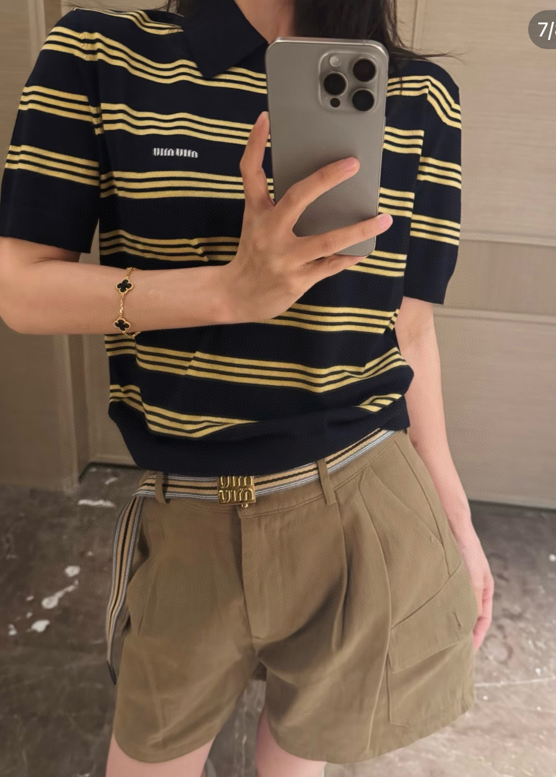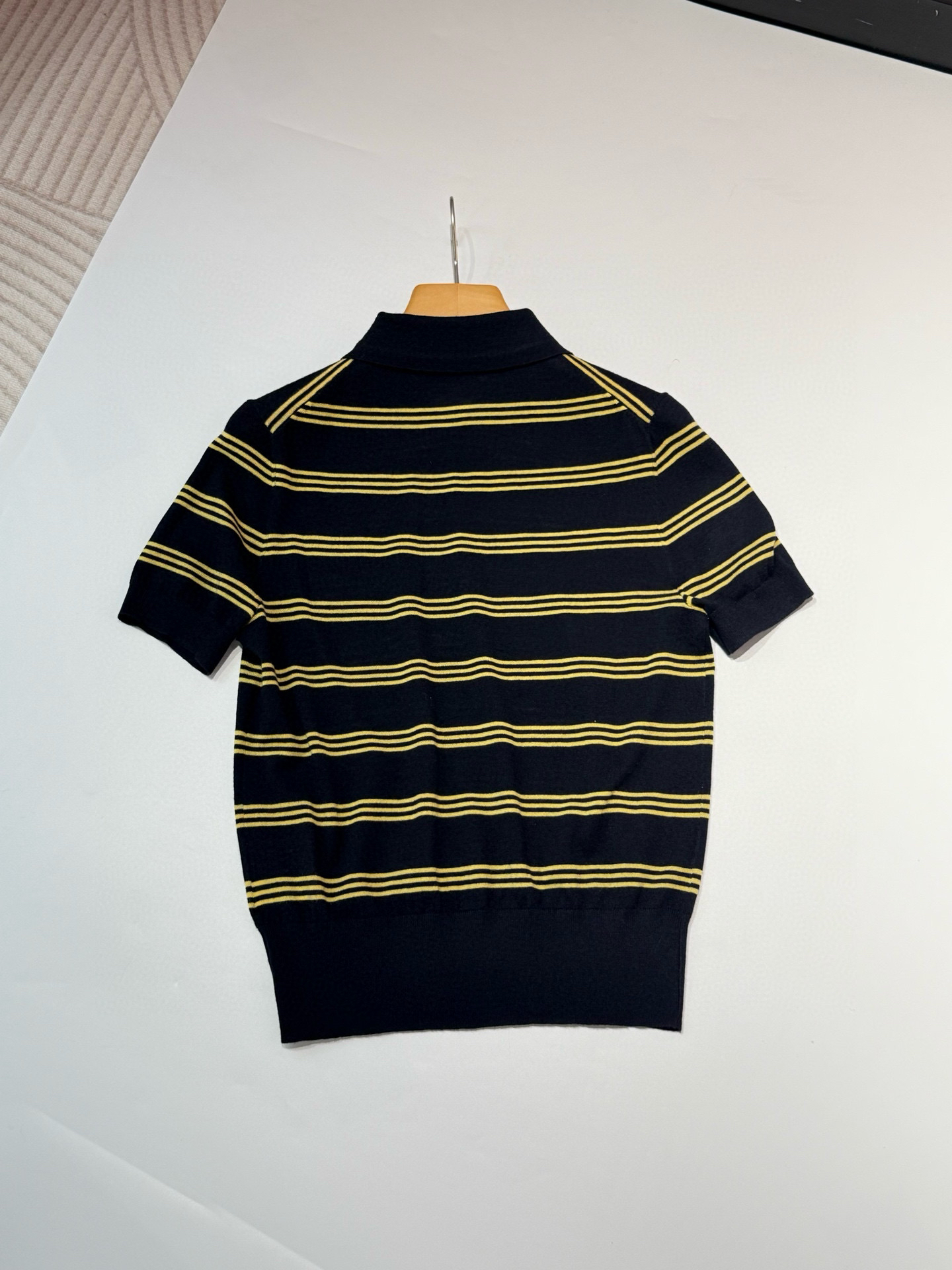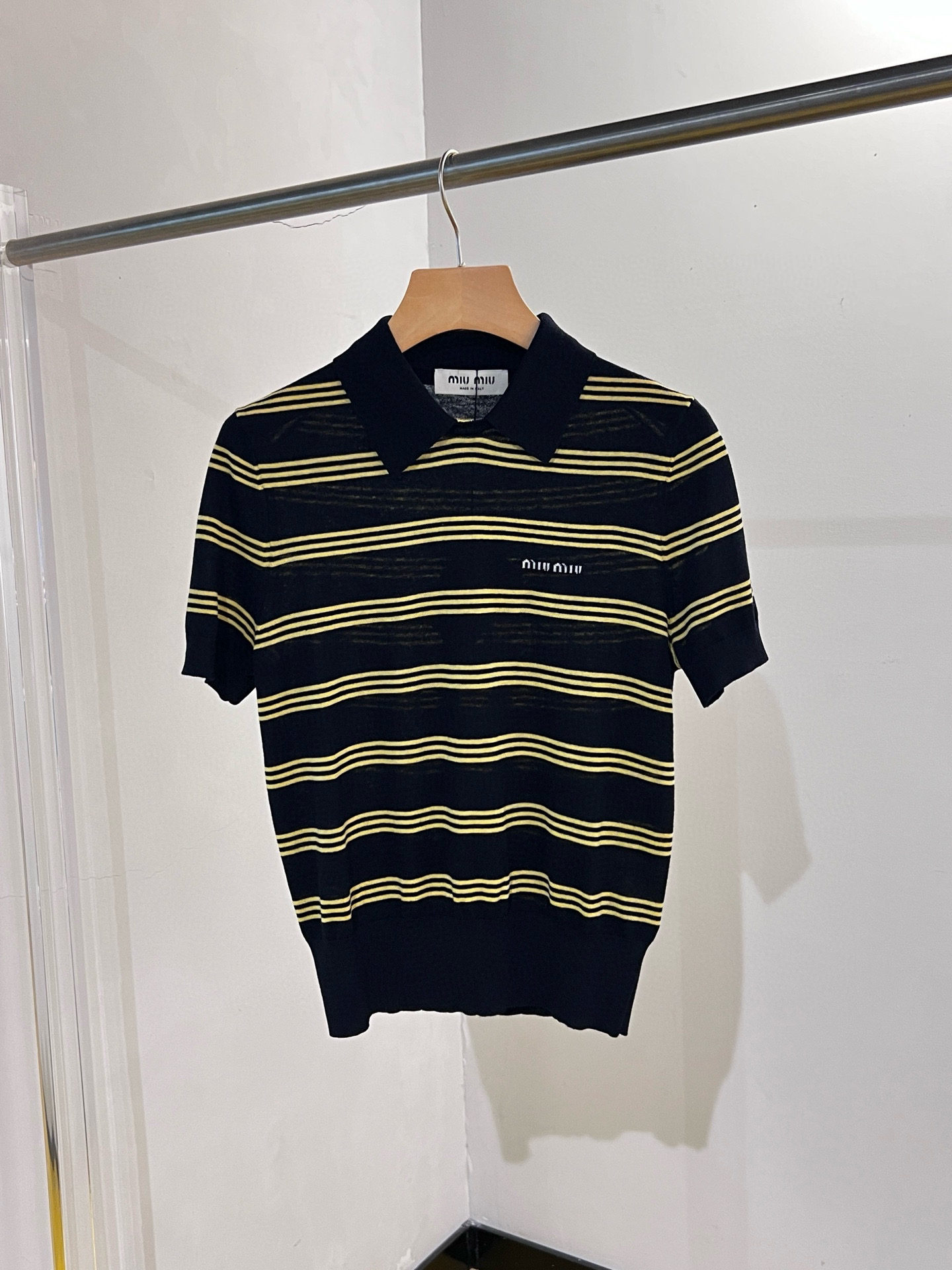 谁能拒绝MIU风魅力啊!复古与俏皮皆备,藏蓝色和亮黄相间的条纹配色,活泼又亮眼,上身秒变时髦精,不管搭配百褶裙打造甜酷学院风,还是配休闲裤应在随性氛围感,都毫无压力~