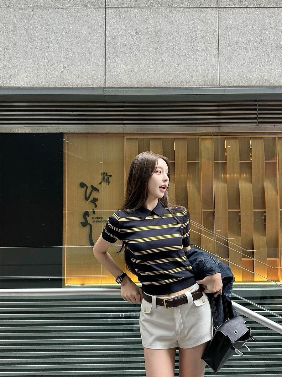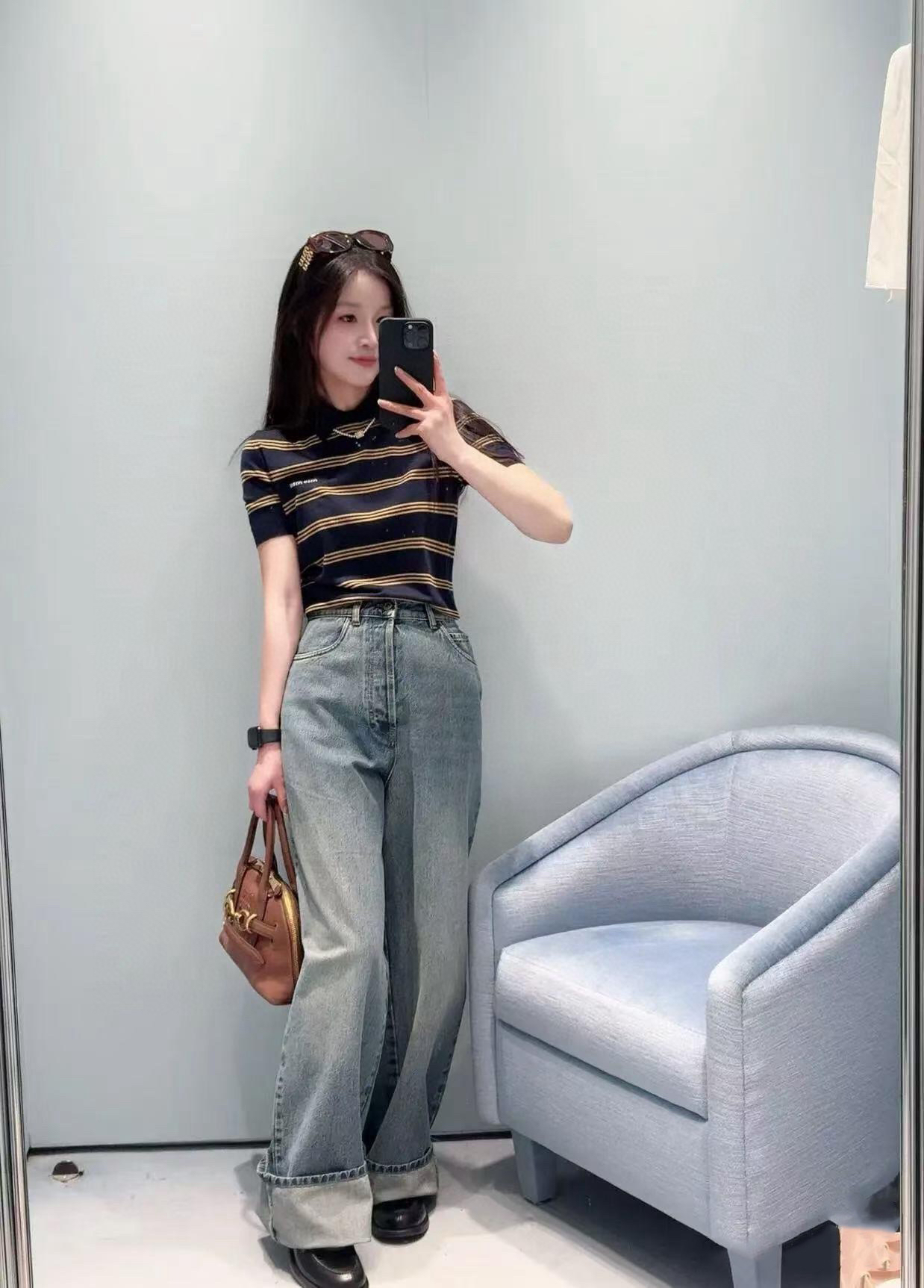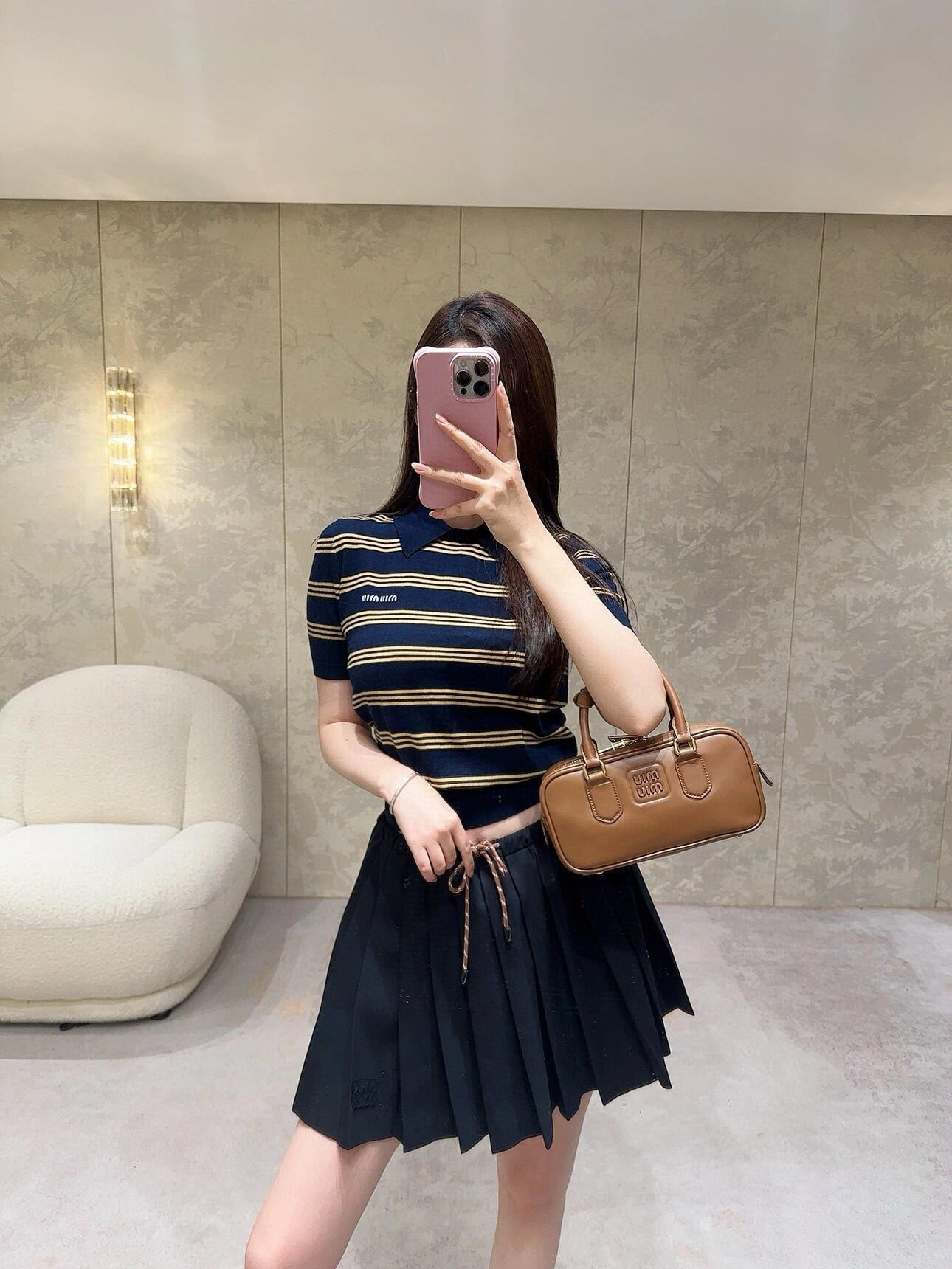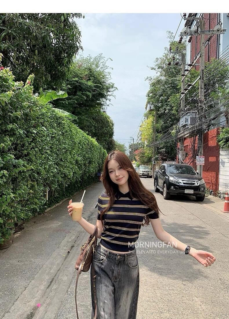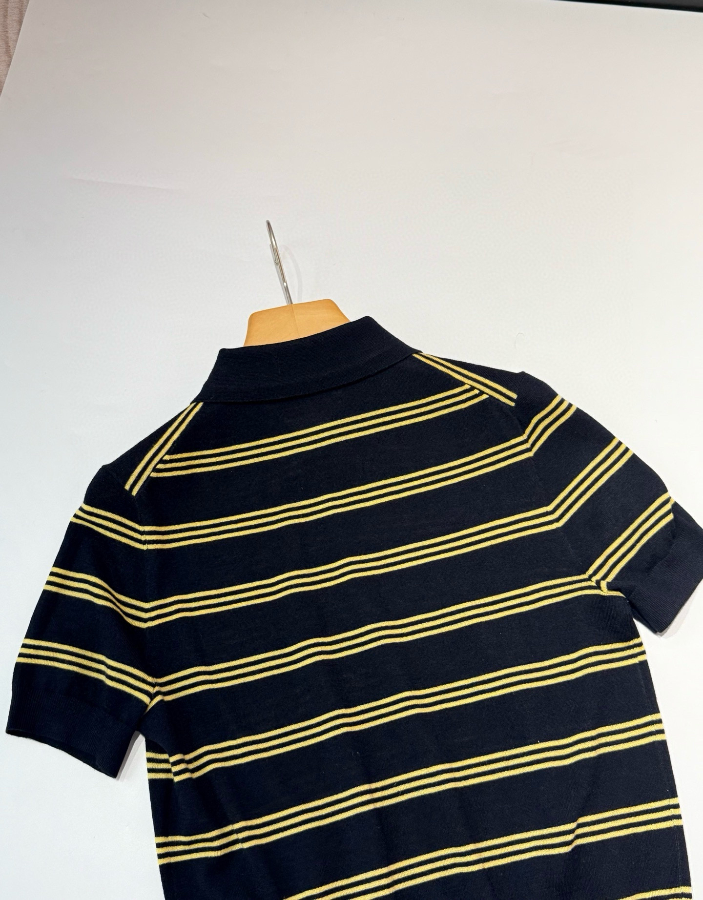 谁能拒绝MIU风魅力啊!复古与俏皮皆备,藏蓝色和亮黄相间的条纹配色,活泼又亮眼,上身秒变时髦精,不管搭配百褶裙打造甜酷学院风,还是配休闲裤应在随性氛围感,都毫无压力~