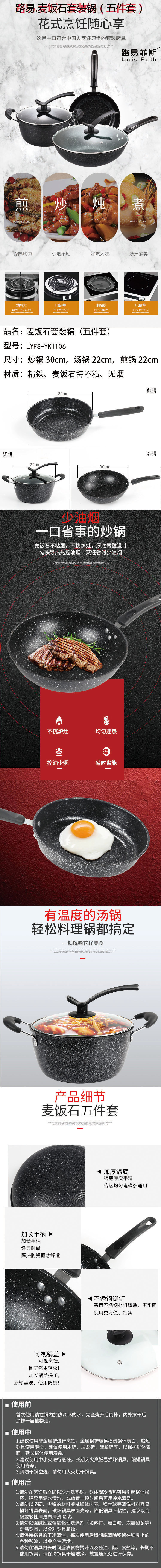 路易菲斯麦饭石套装锅五件套LYFS-YK1106