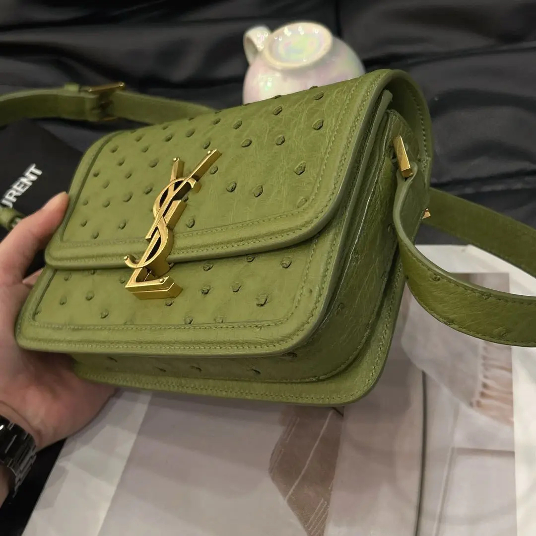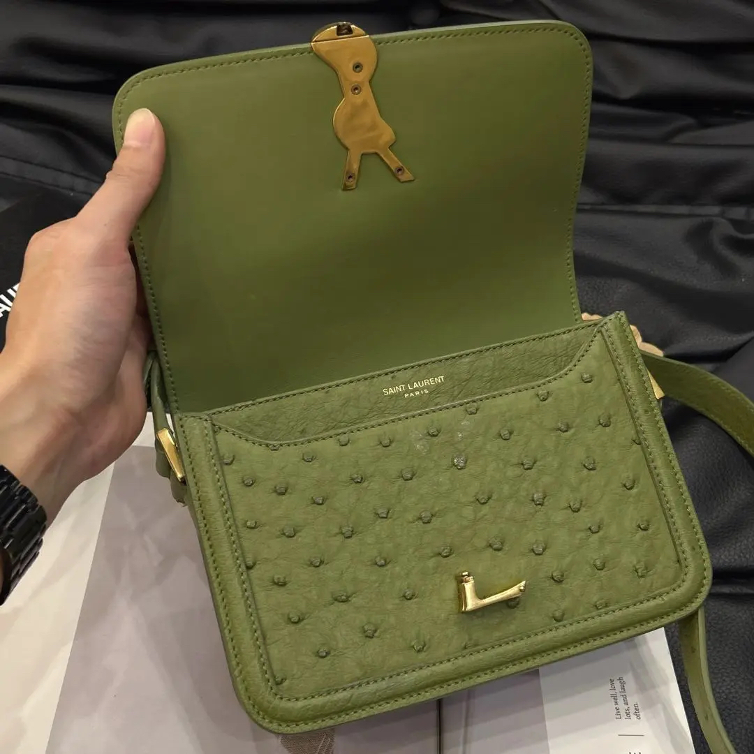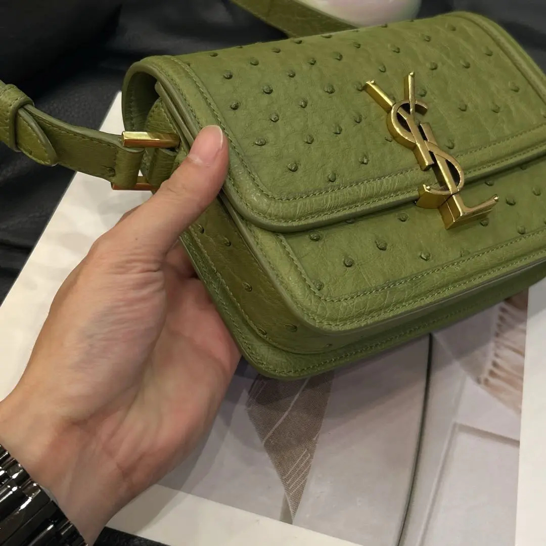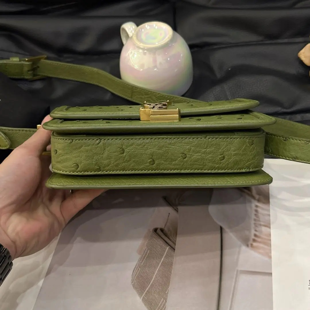 【商品详情】正品二手 YSL YSL Solferino 淡绿色 鸵鸟皮 中号 豆腐包🏝️98新 19*14。很难得