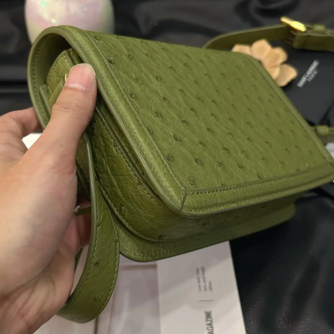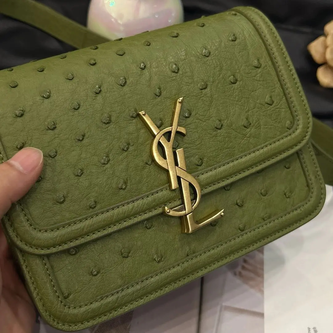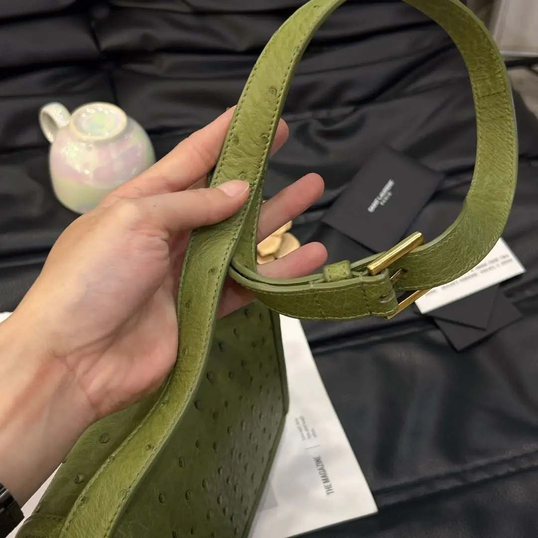 【商品详情】正品二手 YSL YSL Solferino 淡绿色 鸵鸟皮 中号 豆腐包🏝️98新 19*14。很难得