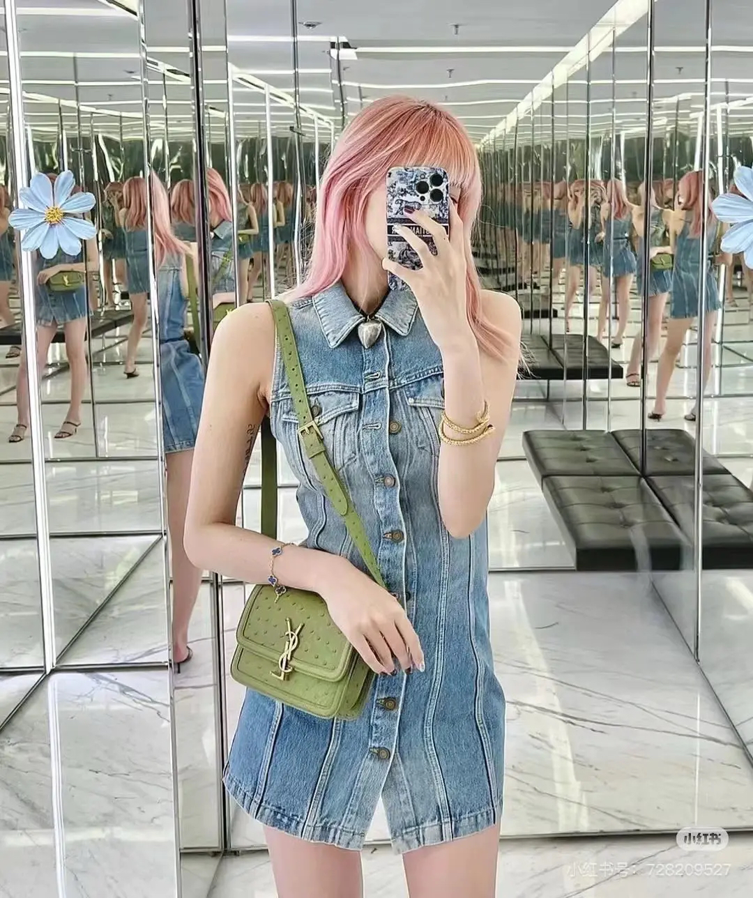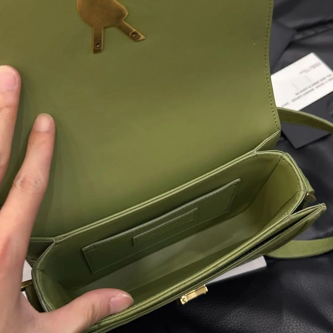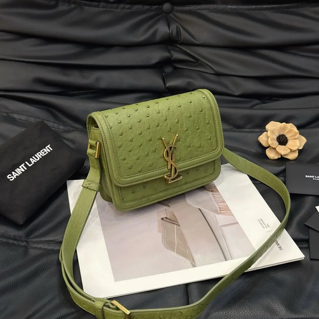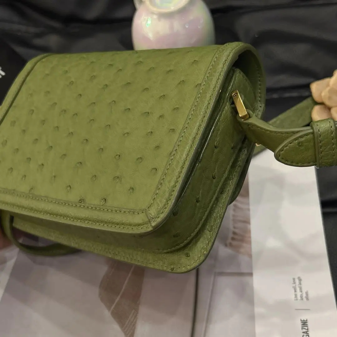 【商品详情】正品二手 YSL YSL Solferino 淡绿色 鸵鸟皮 中号 豆腐包🏝️98新 19*14。很难得