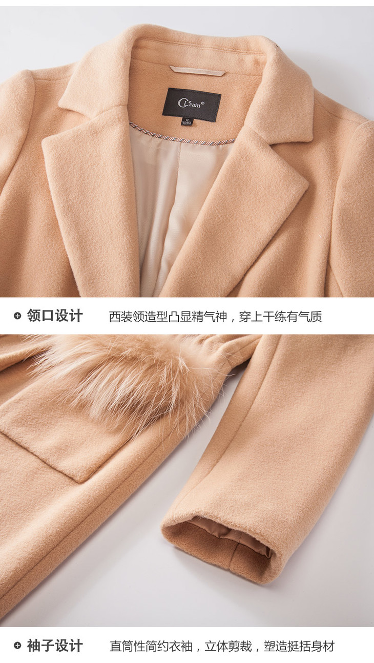 欧芮儿冬装女2019 收腰显瘦毛呢外套女抽绳百搭毛领呢大衣