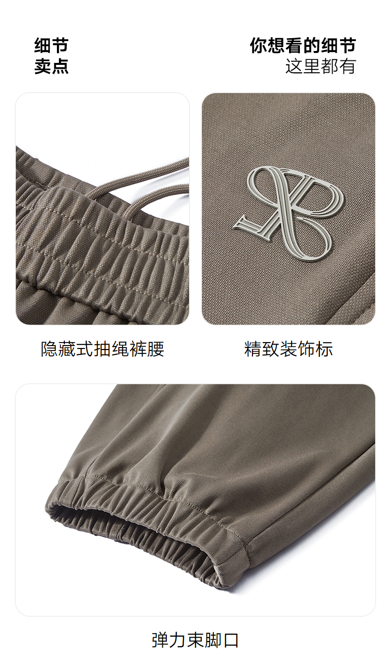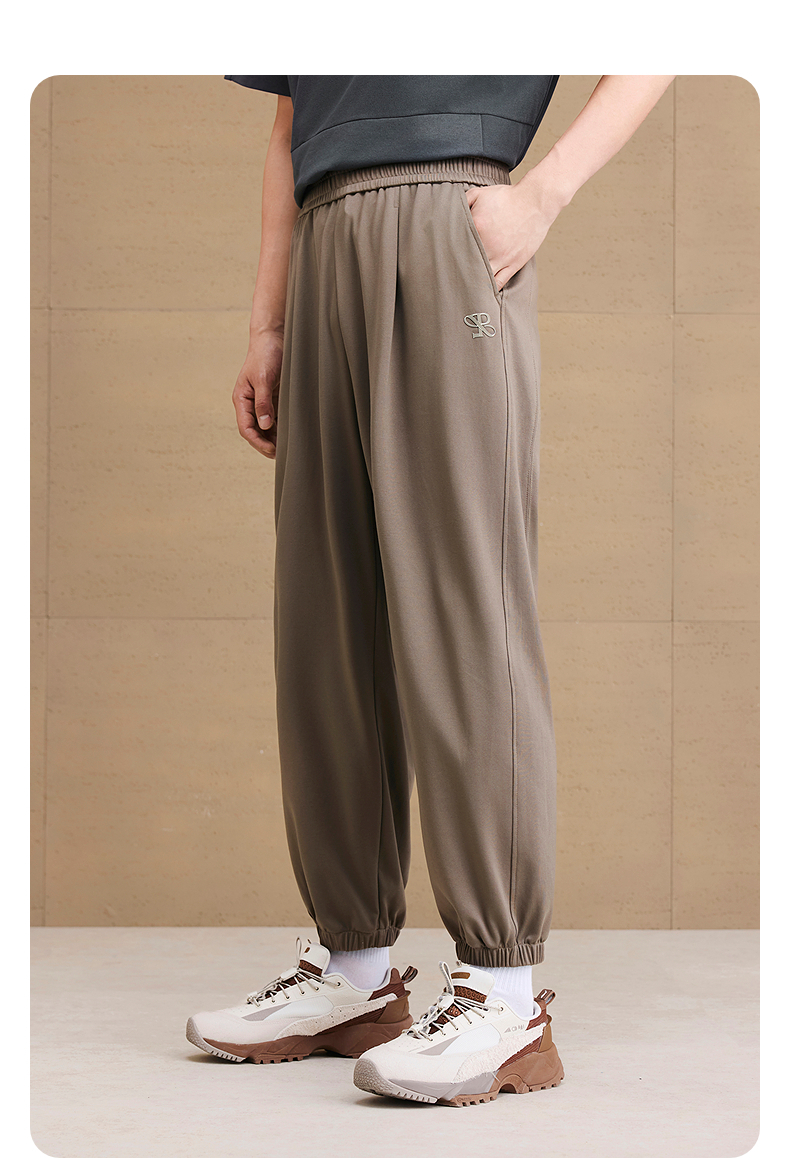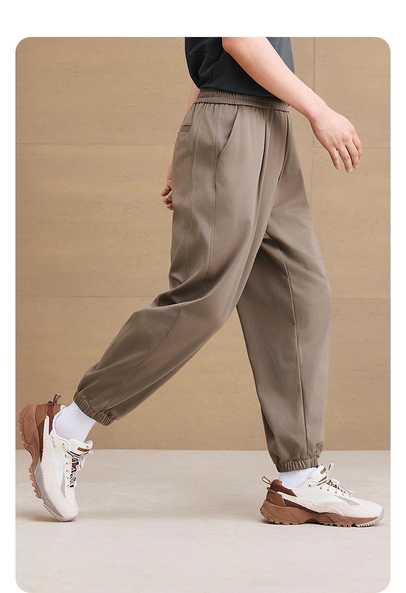GXG男装 咖色宽松束脚裤透气男休闲裤 24年秋G24X023056
