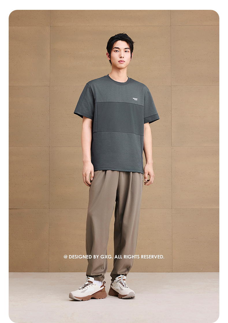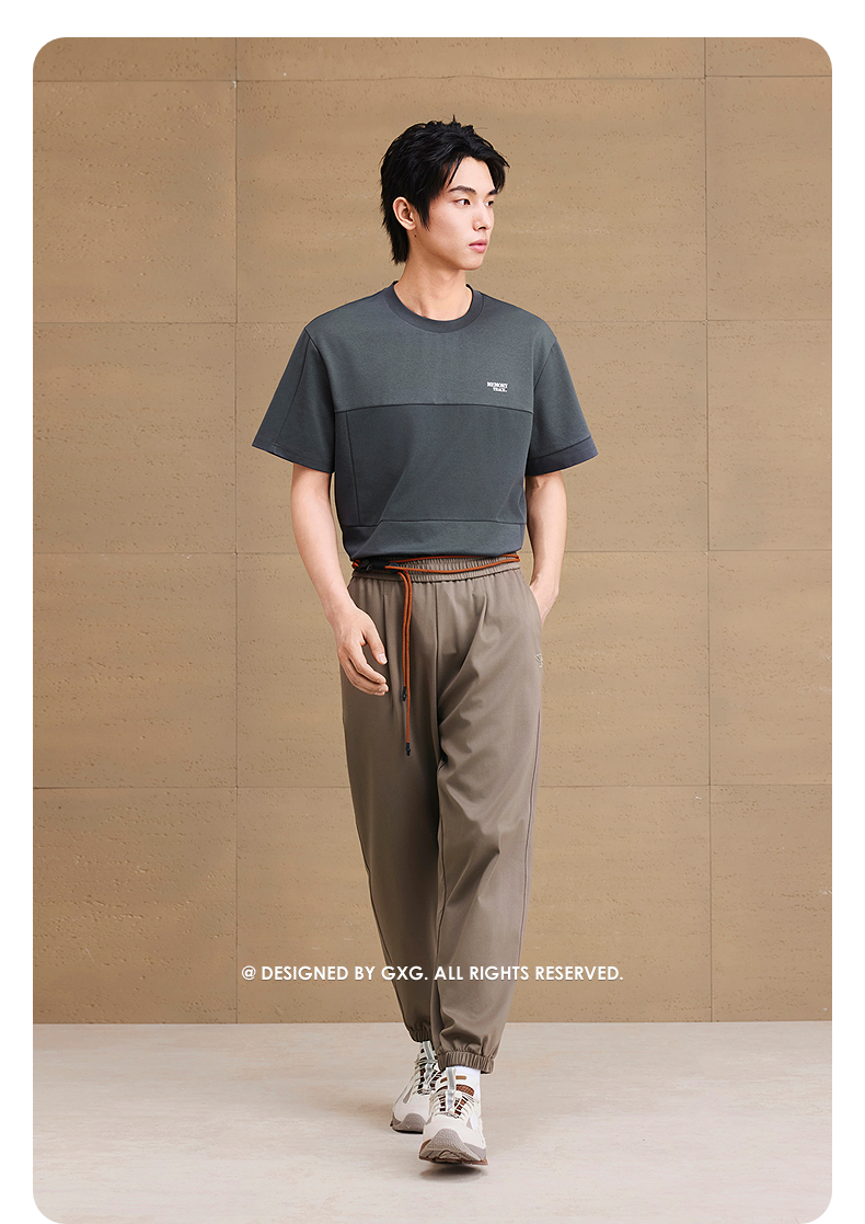 GXG男装 双色休闲裤通勤束脚裤男轻薄长裤简约裤子 2025夏季新品