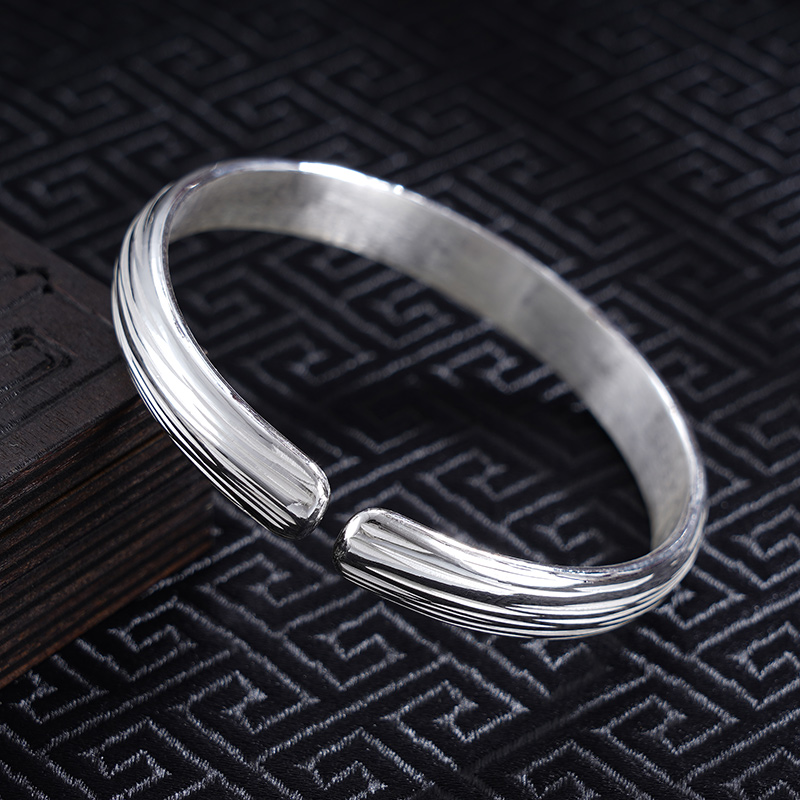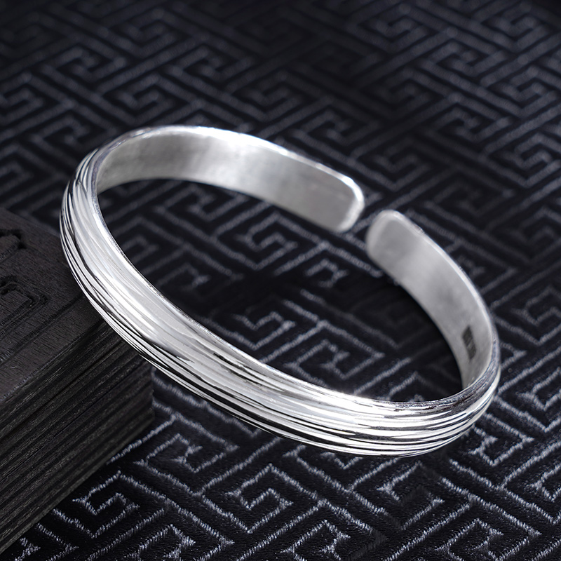 【寓意】:手镯以“银河”为设计灵感,镯体采用立体浮雕工艺,模拟银河光带的蜿蜒曲折,呈现细腻的肌理质感。