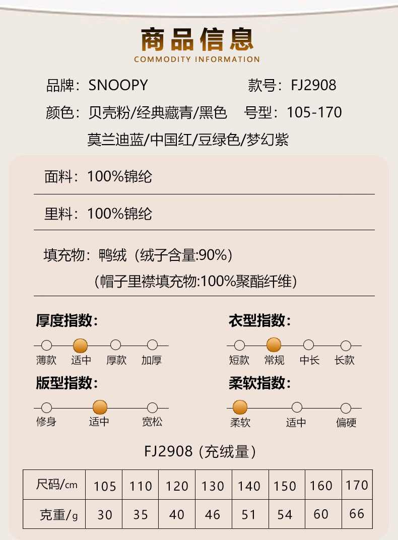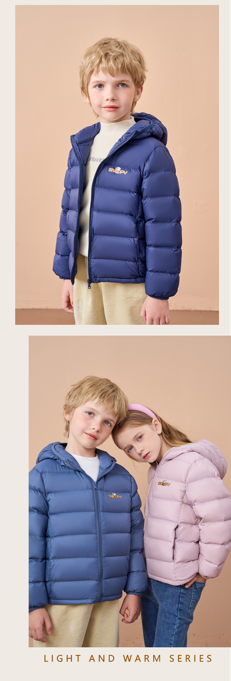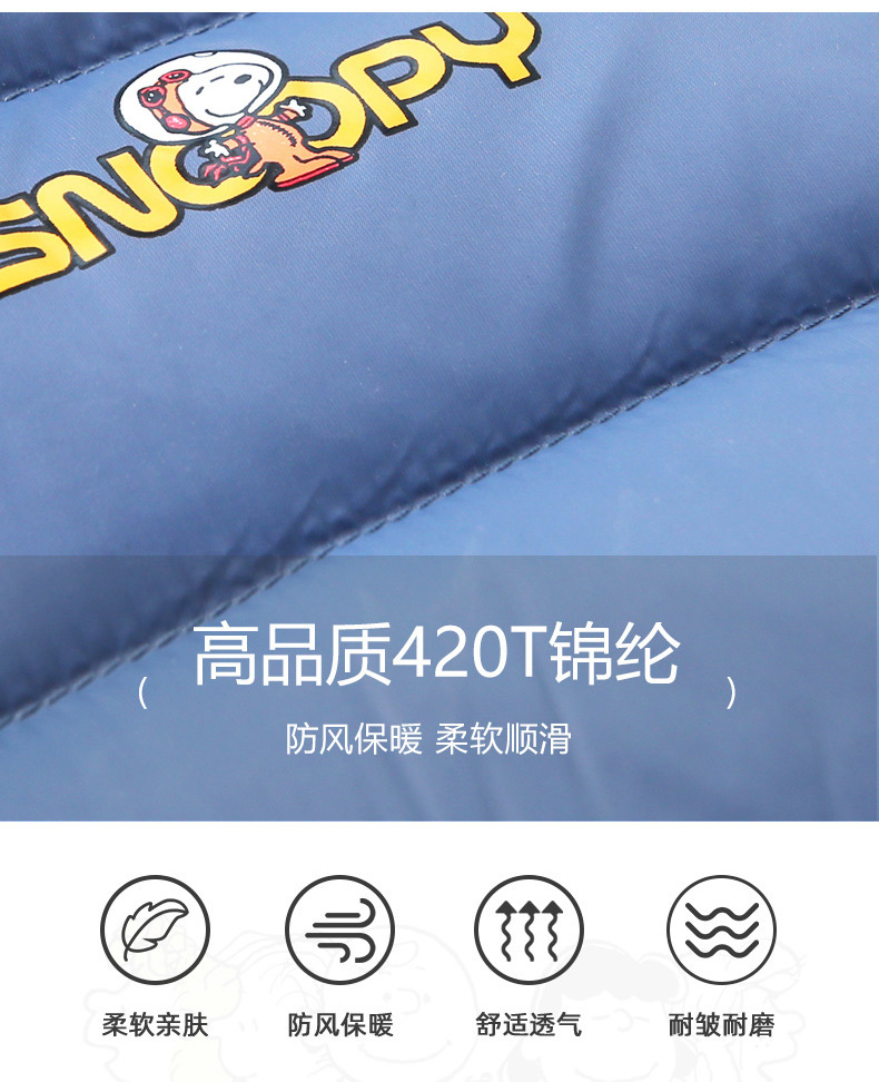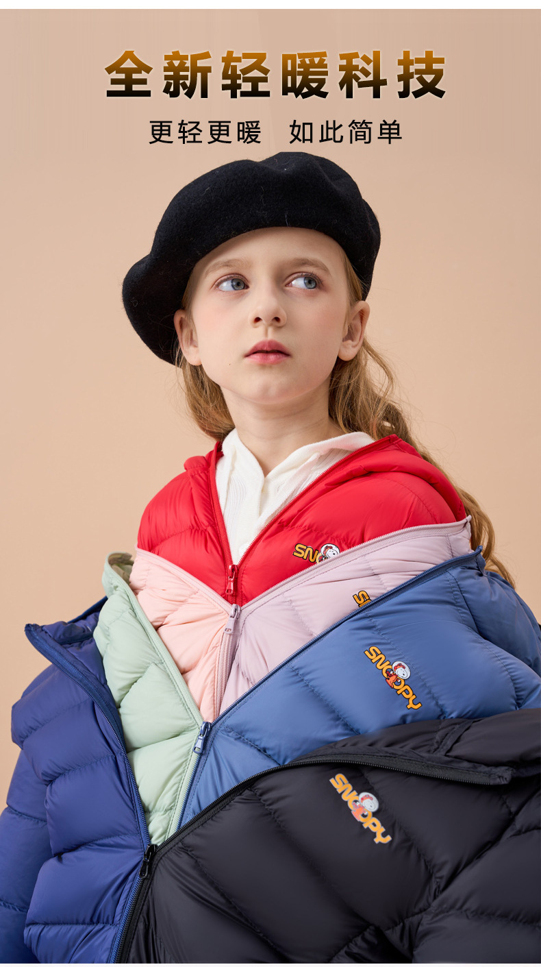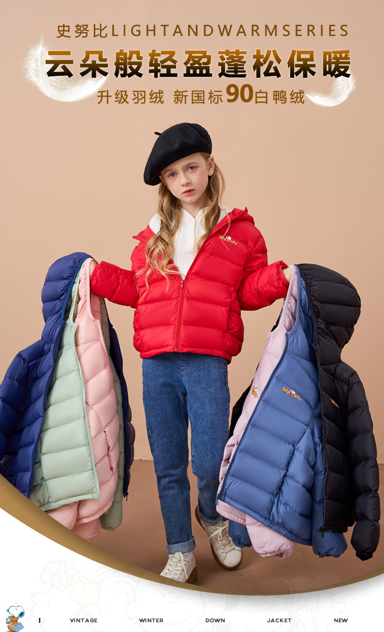 史努比儿童轻薄保暖秋冬羽绒服男女童白鸭绒外套连帽童装羽绒服