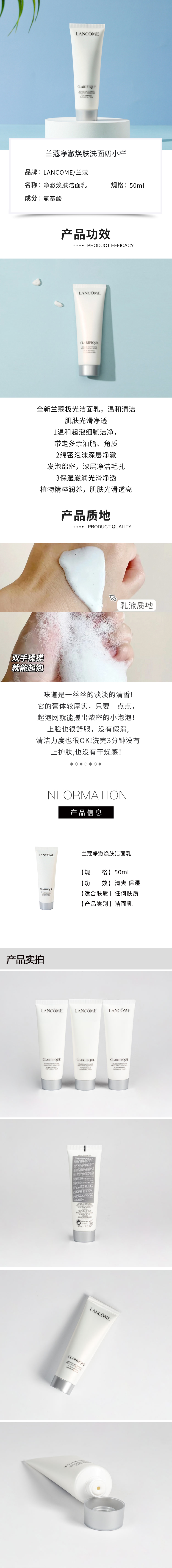【88元会员福利】兰蔻净澈焕肤洁面乳50ml(中小样)