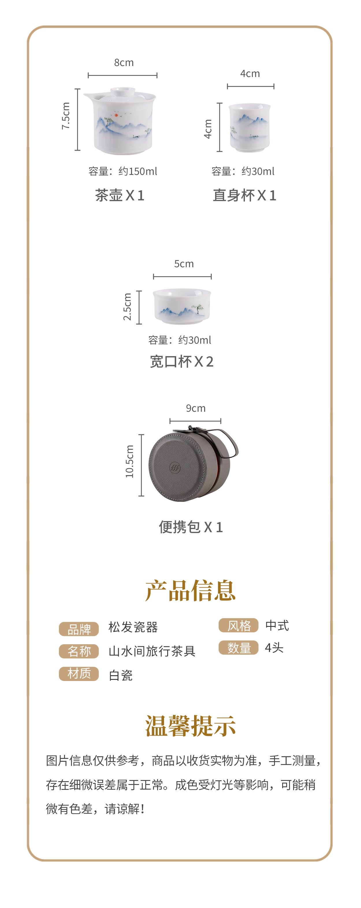 4头山水间旅行茶具