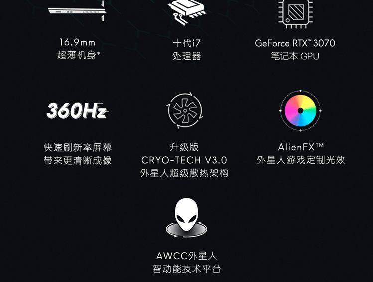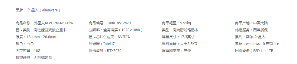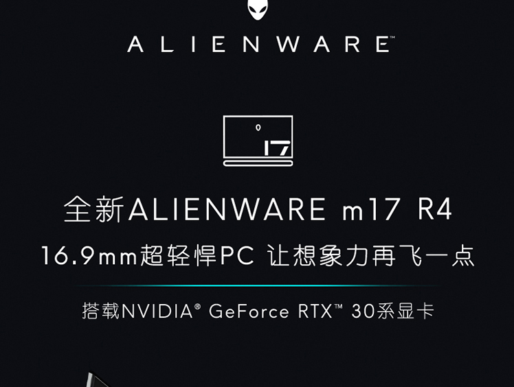 外星人Alienware m17 R4 17.3英寸轻薄游戏本电脑(i7 16G 1T RTX3070 8G独显 360Hz)6745白