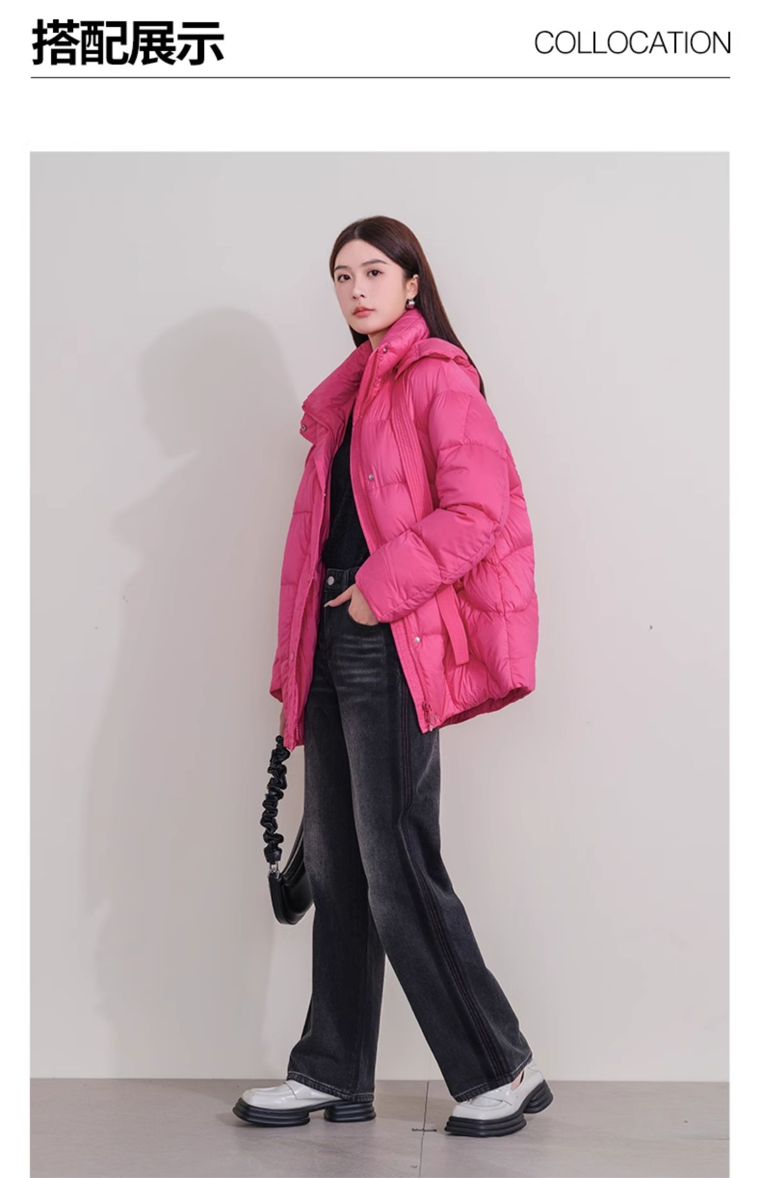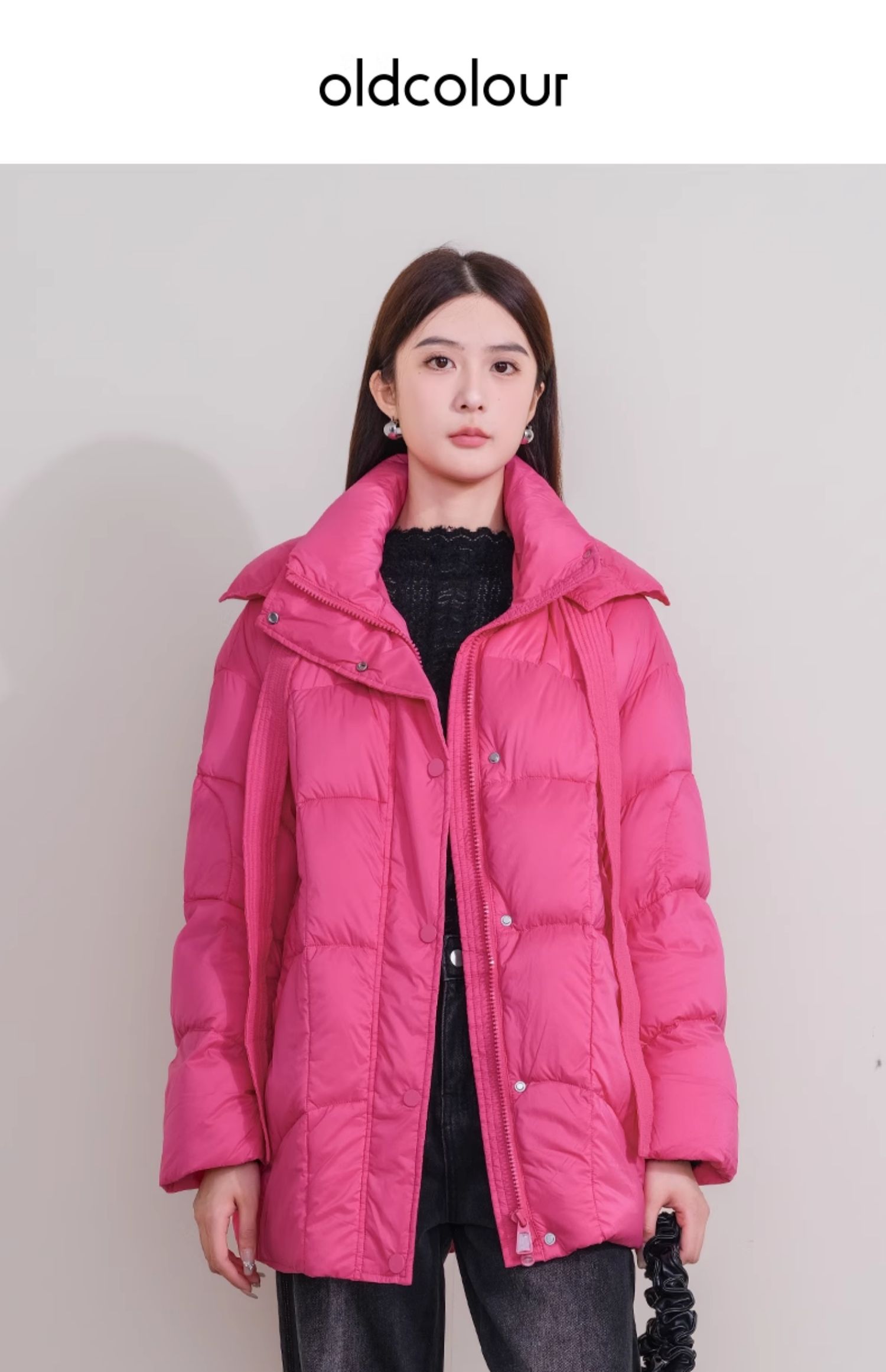oldcolour欧珂冬季新款时尚短款长袖纯色中羽绒服女P460906A1