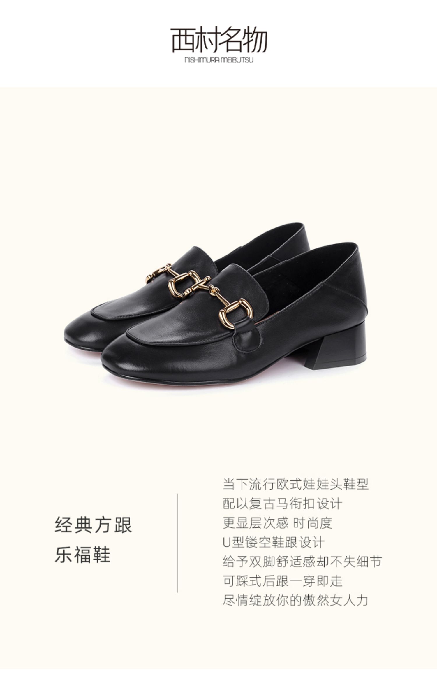 西村名物2020新款经典复古马衔扣方跟娃娃头乐福鞋女-X20AM18221