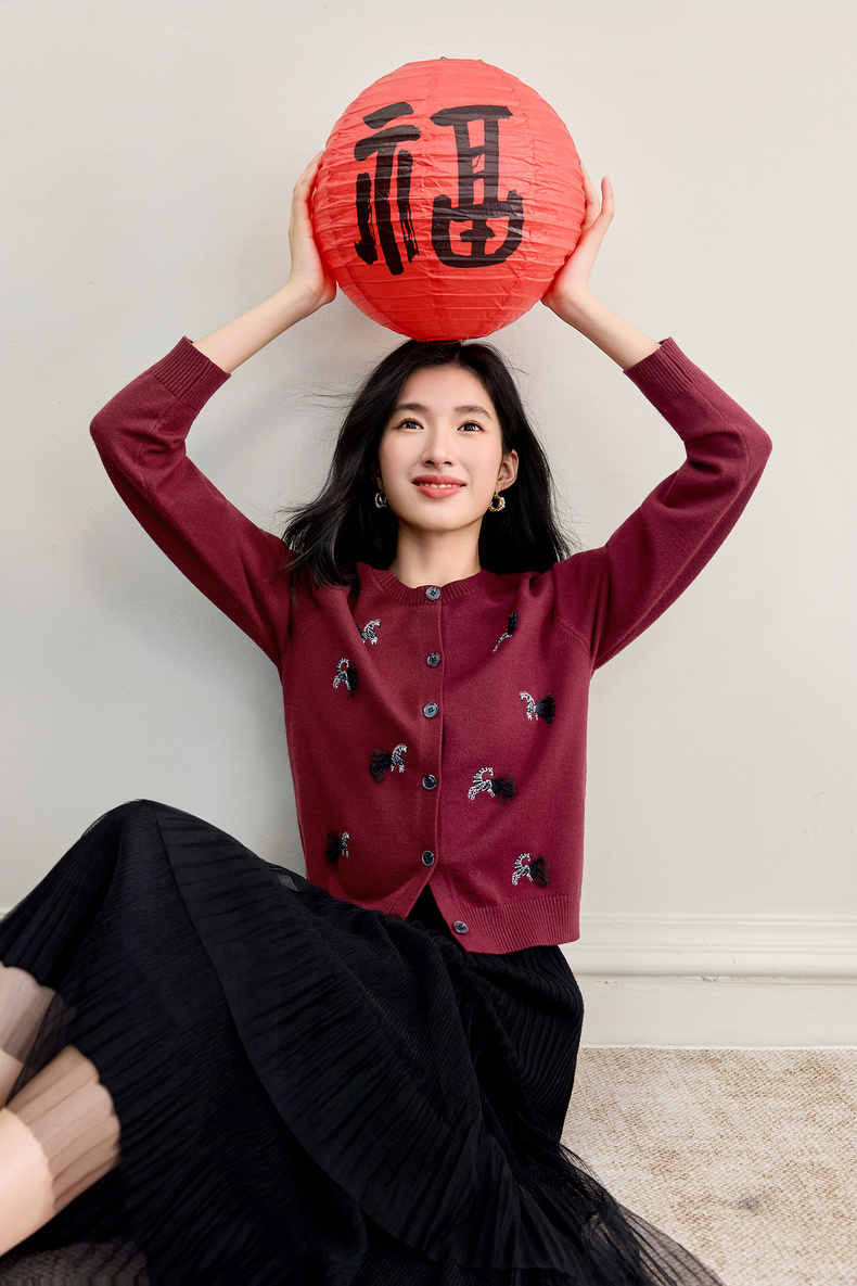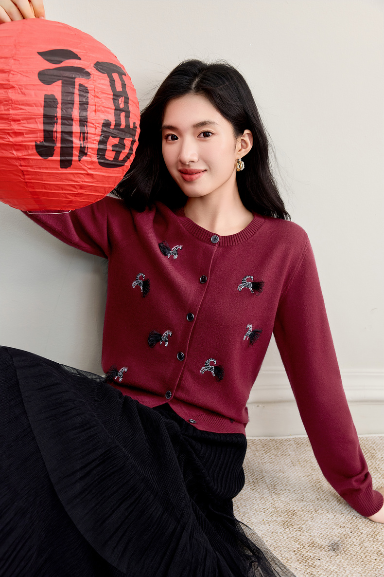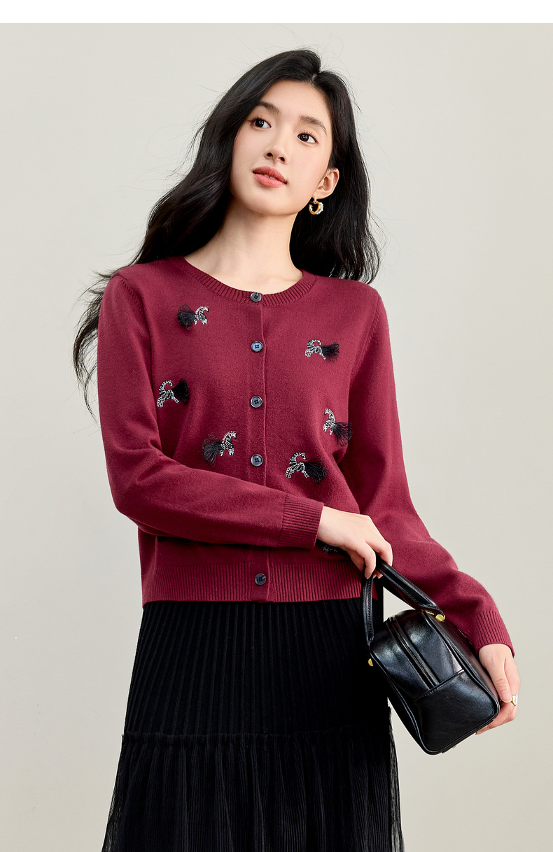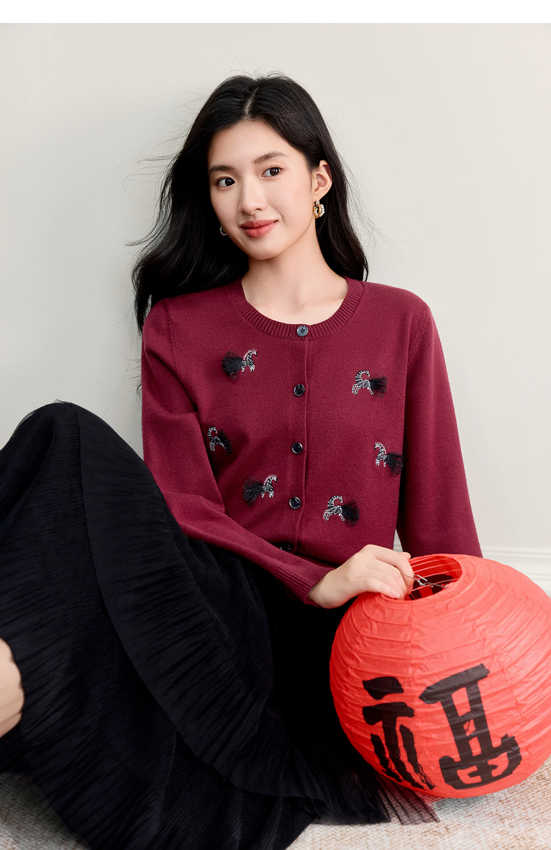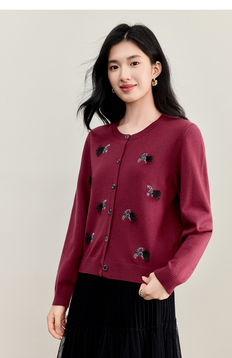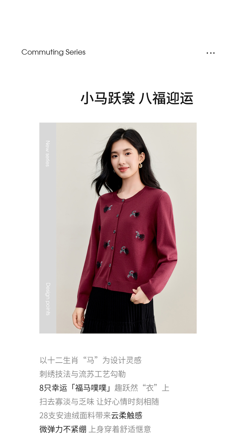 【内购】【幸运小马】通勤设计感圆领单排扣软糯安迪绒开衫毛衣-W53EB3516