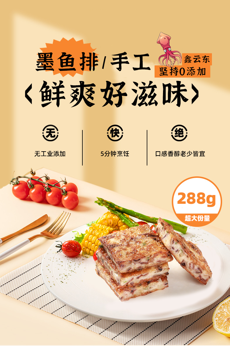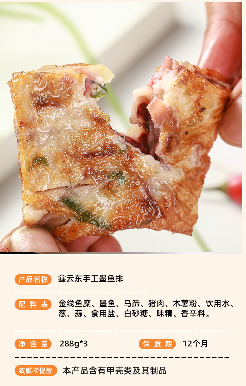 鑫云东手工墨鱼排/1包(288g)生产日期:25年11月
