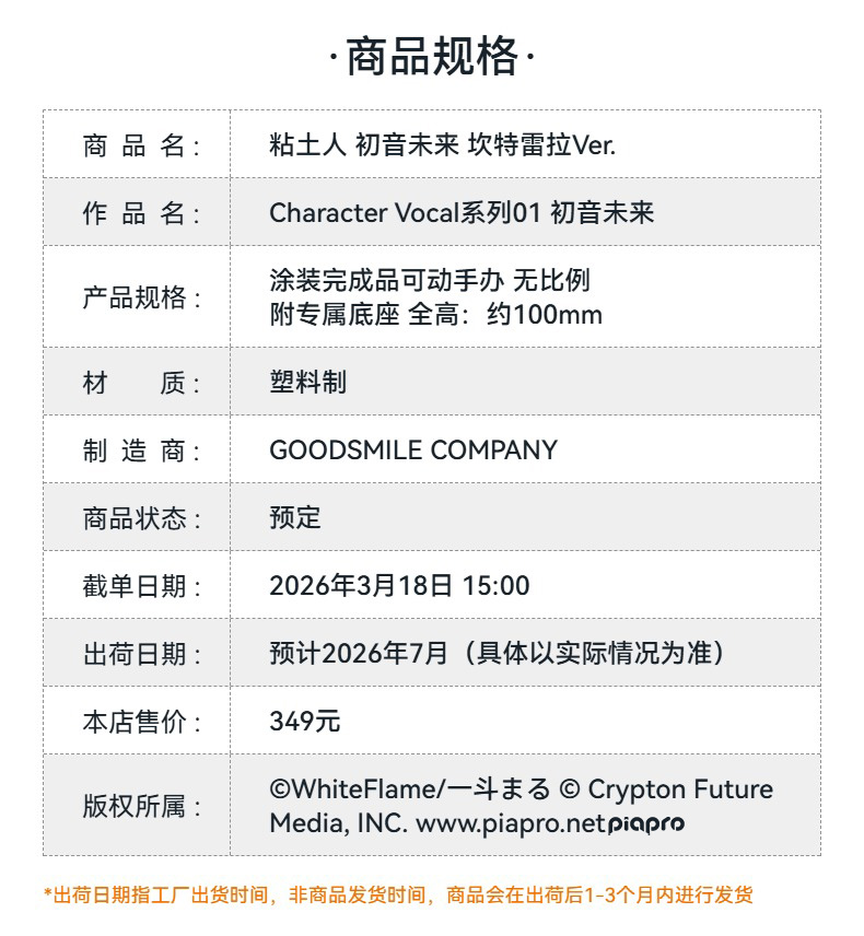 【GSC预售定金】粘土人 初音未来 坎特雷拉Ver. 附官方限定特典