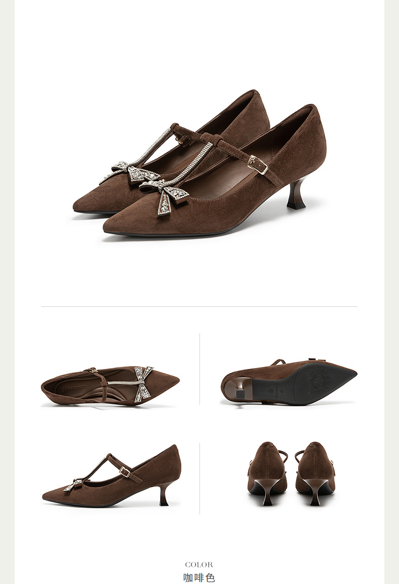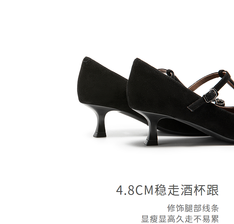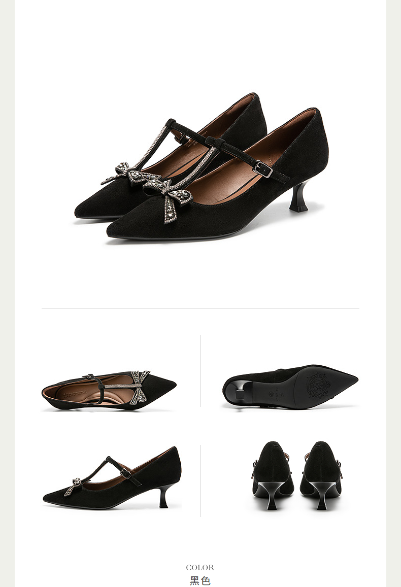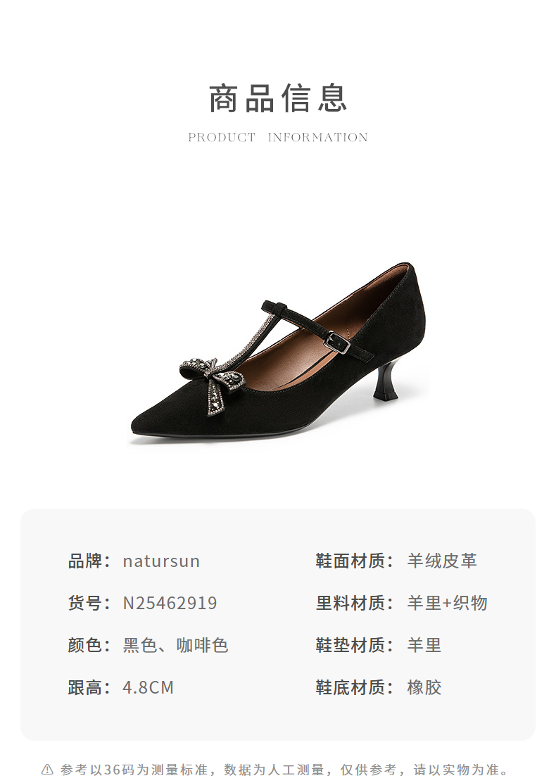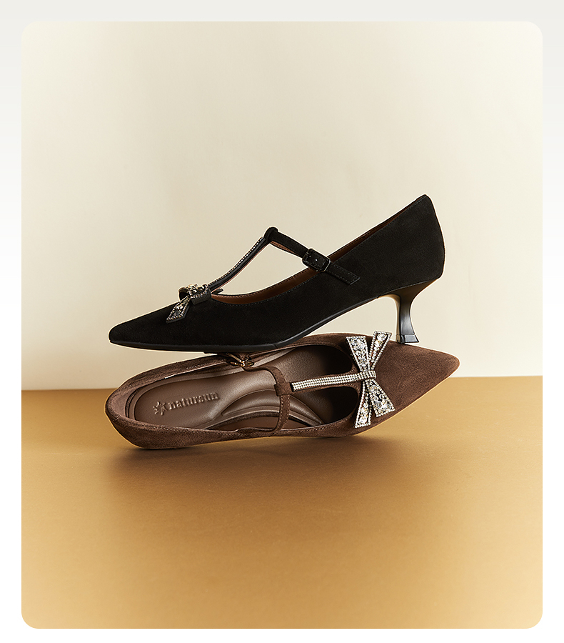 natursun玛丽珍高跟鞋精致蝴蝶结舒适T字带绝美单鞋N25462919