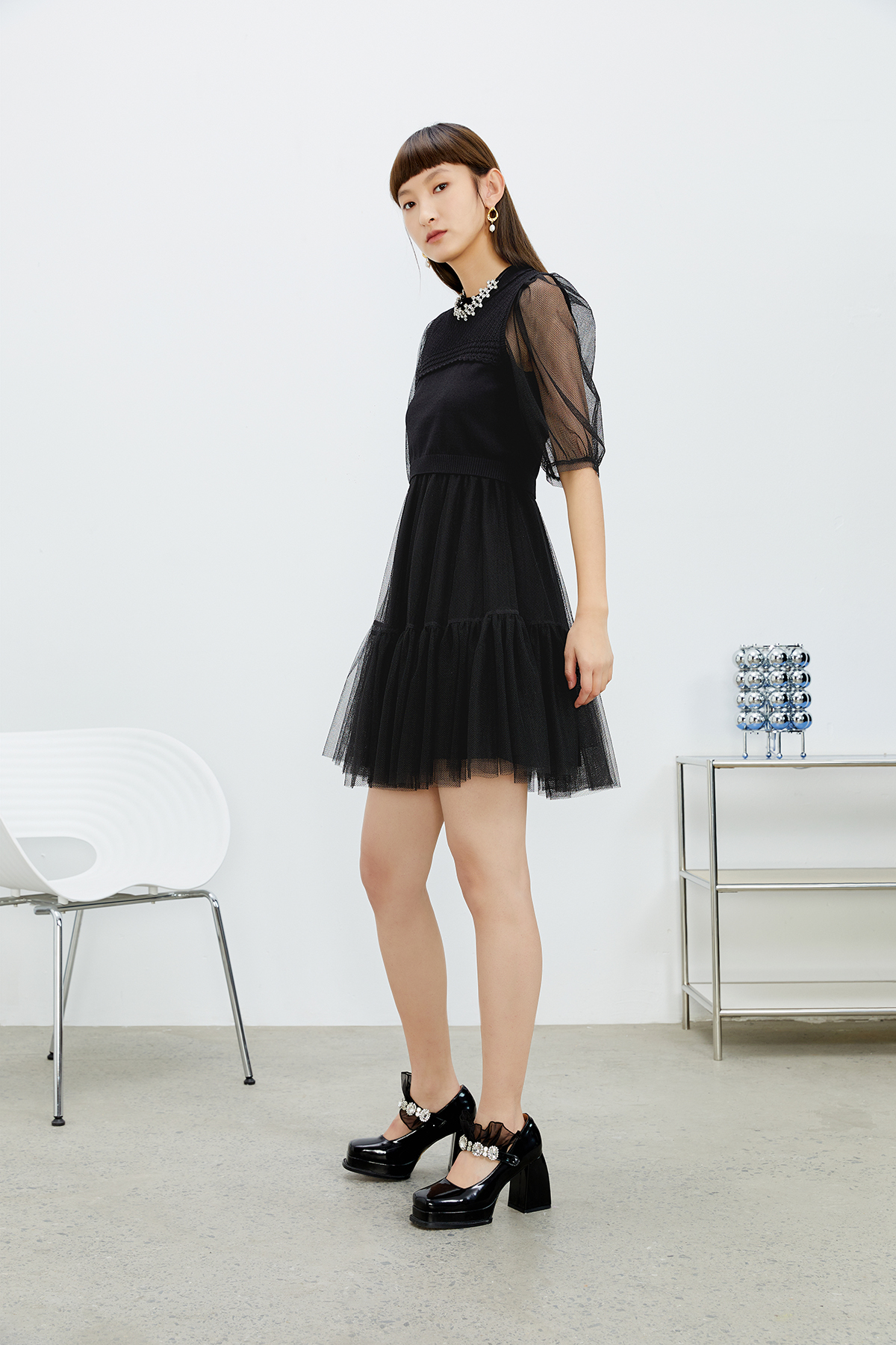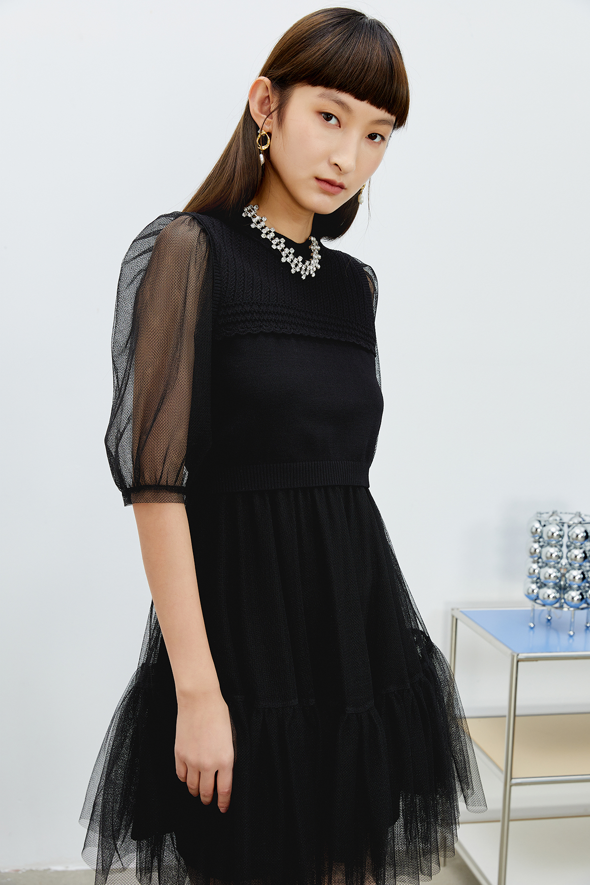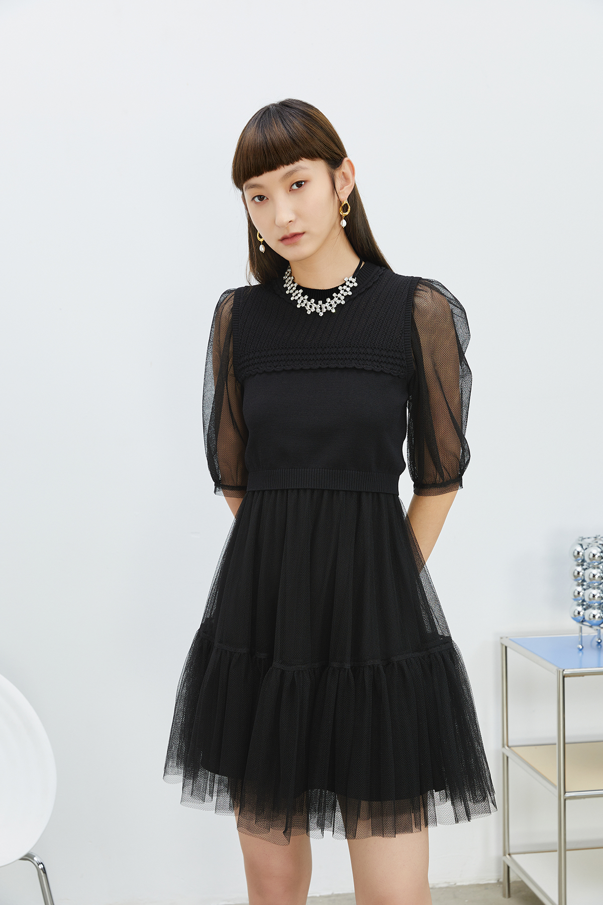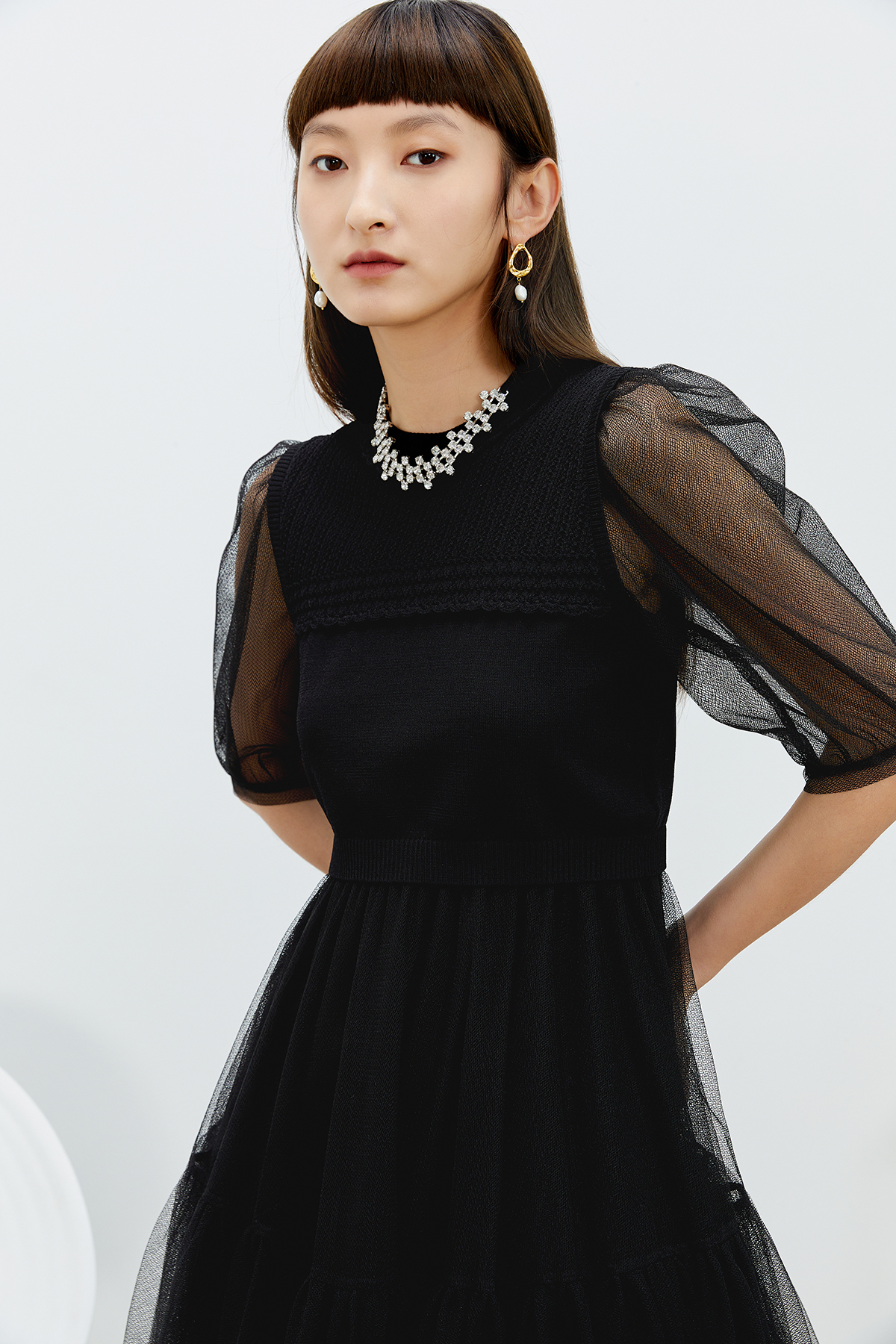 NEELLY纳俪商场同款气质圆领连衣裙女N22031Y01139