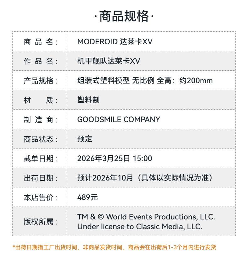 【GSC预售定金】MODEROID 达莱卡XV 机甲舰队达莱卡XV 手办模玩