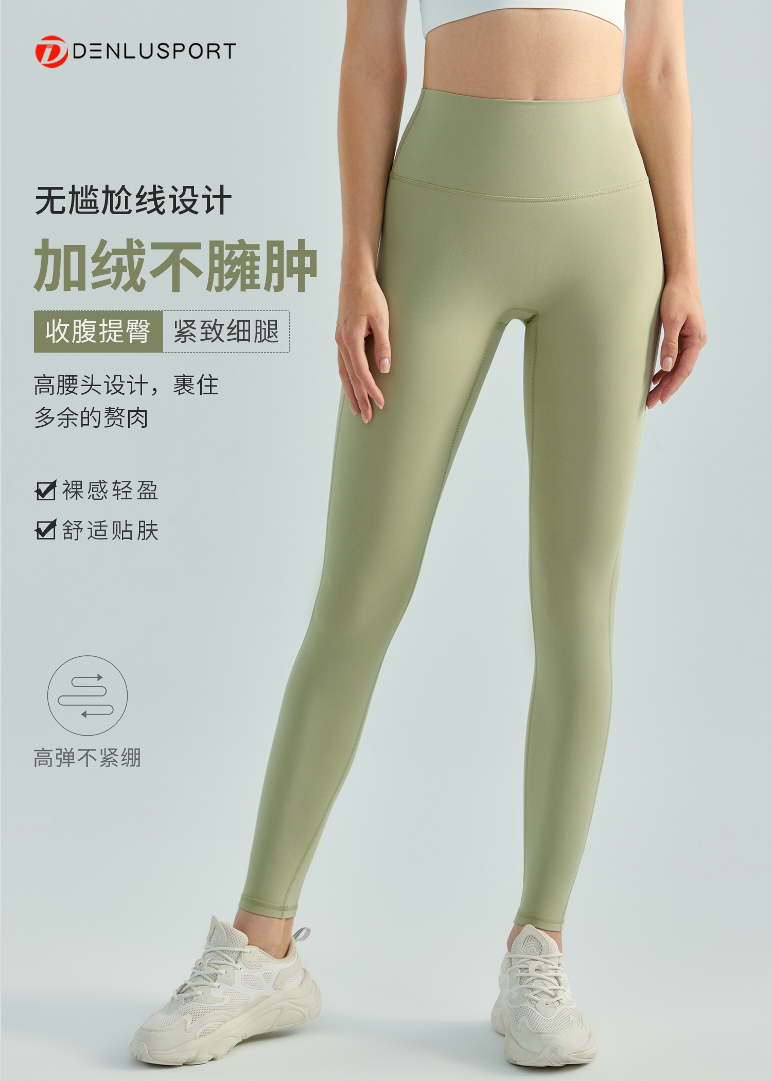 秋冬加绒暖绒瑜伽弹力健身裤 DY66151# 双面锦高腰高弹锁温保暖瑜伽裤