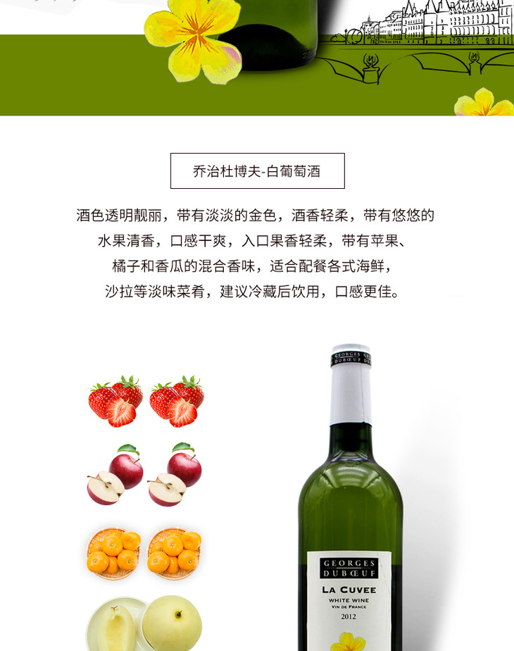 法国原瓶进口干白 乔治杜博夫白葡萄酒Georges Duboeuf Cuvee White 单支装750ml