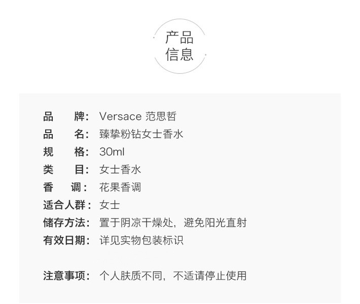 法国 VERSACE/范思哲及致粉水晶粉钻浓香水30ml/50ml/简装90ml 版本随机发