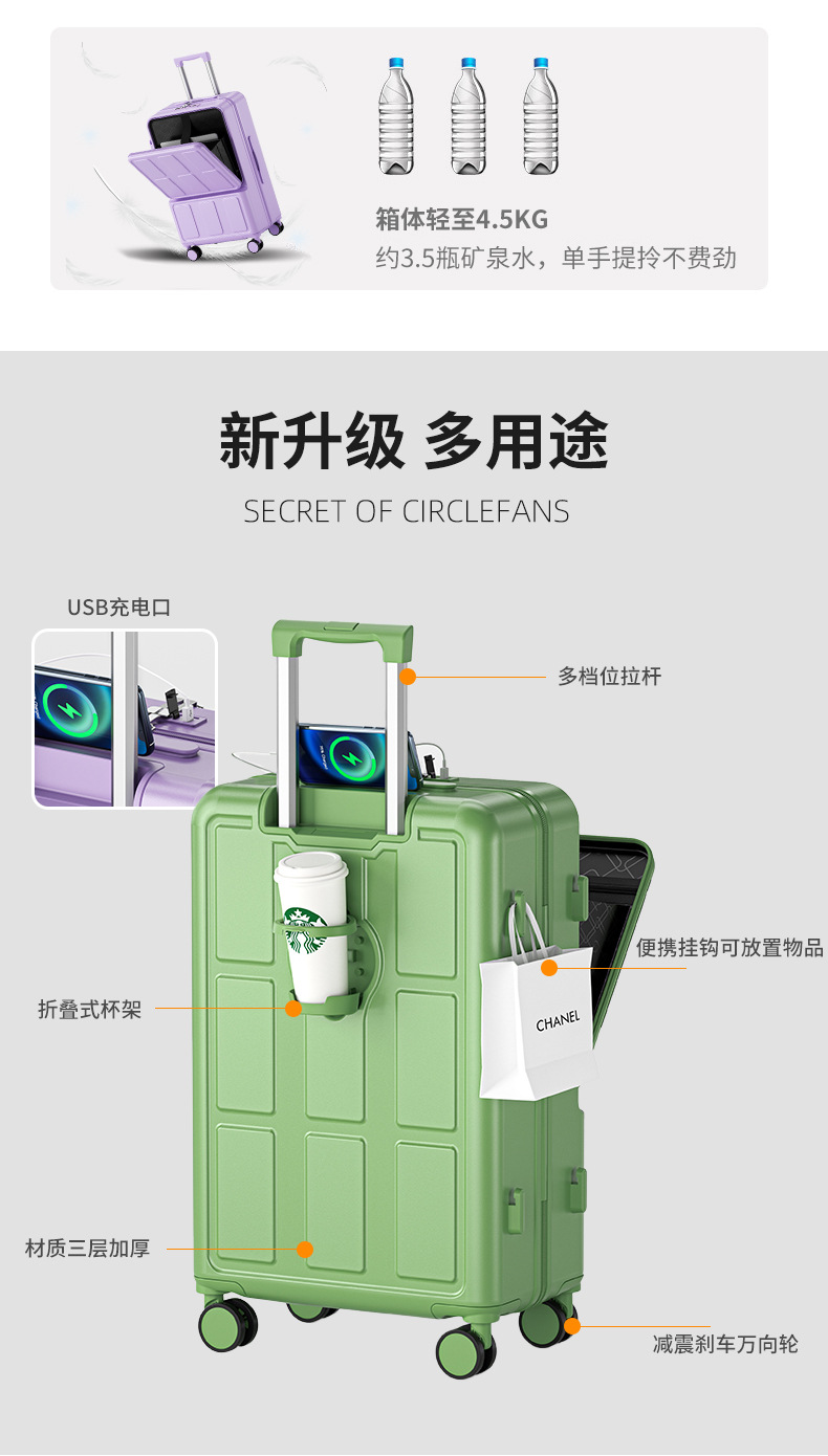 【可前置开口行李箱】多用途杯架旅行箱 清新糖果色密码箱男登机拉杆箱新年春节出行