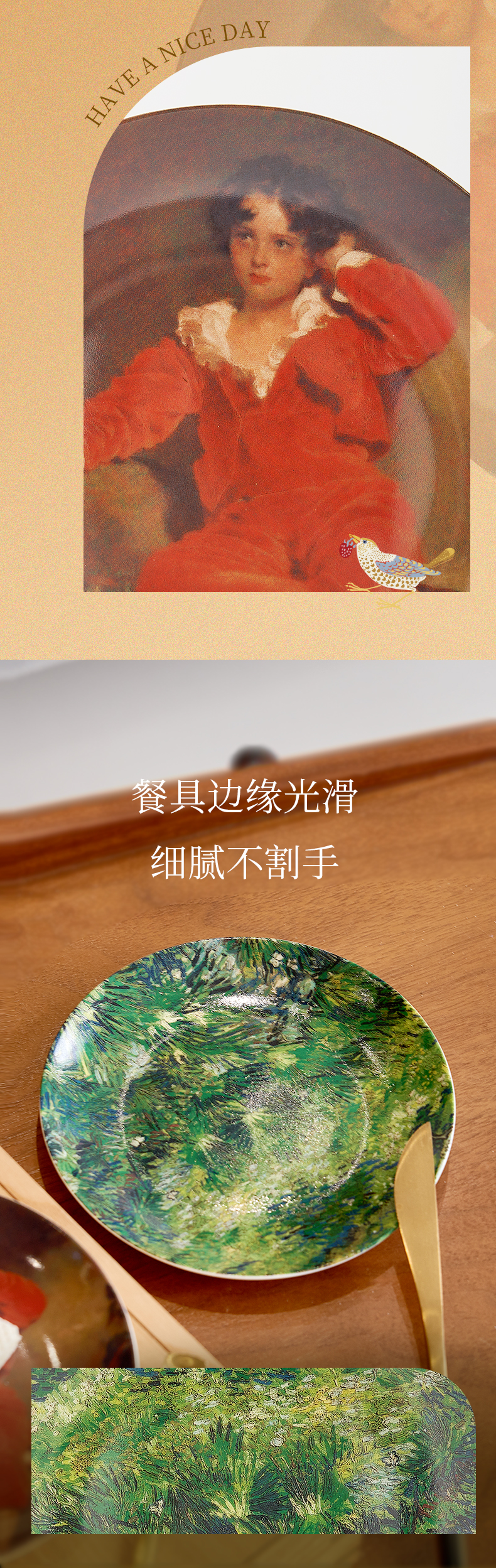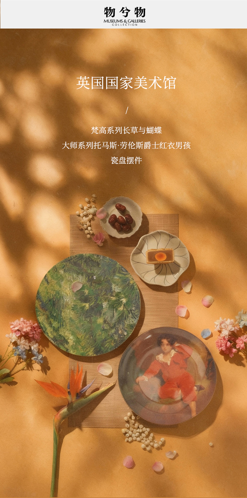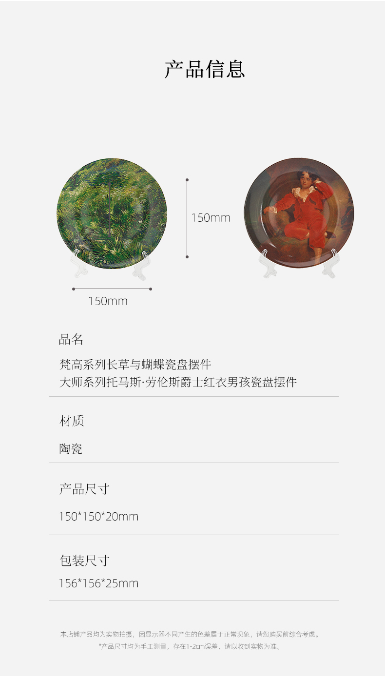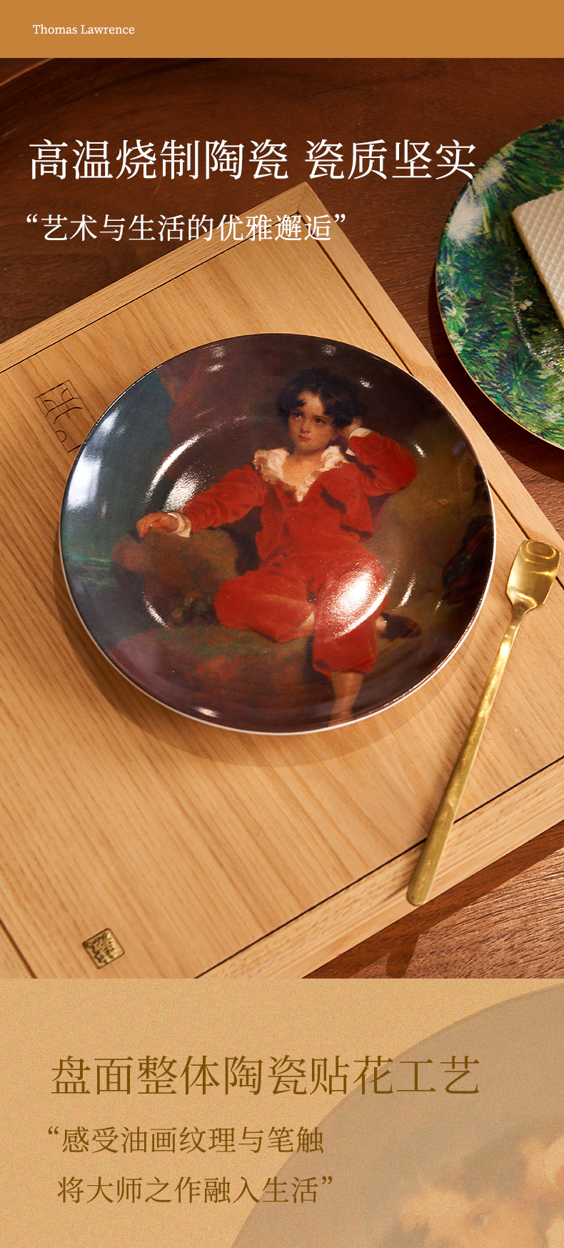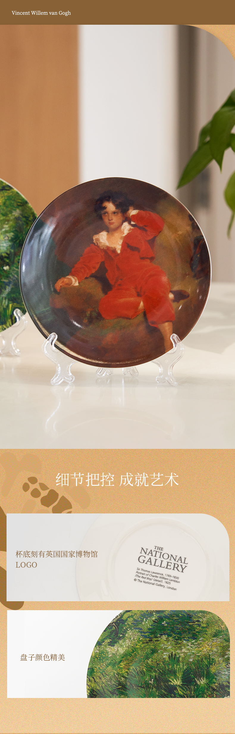 英国国家美术馆 梵高长草与蝴蝶 托马斯·劳伦斯爵士红衣男孩 瓷盘摆件