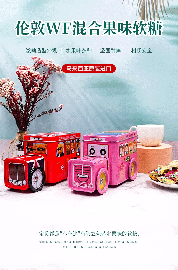 马来西亚伦敦WF混合果味软糖凝胶糖果200g 小粉车/小红车激萌造型外观多种水果味 062152/063696