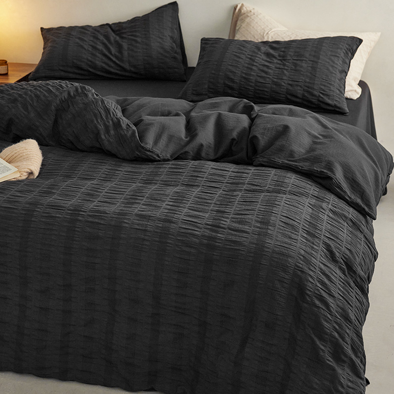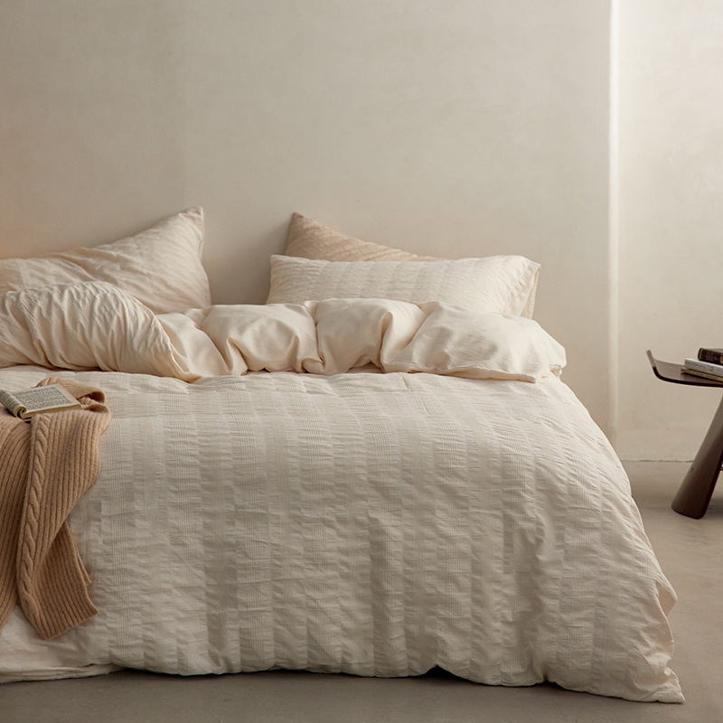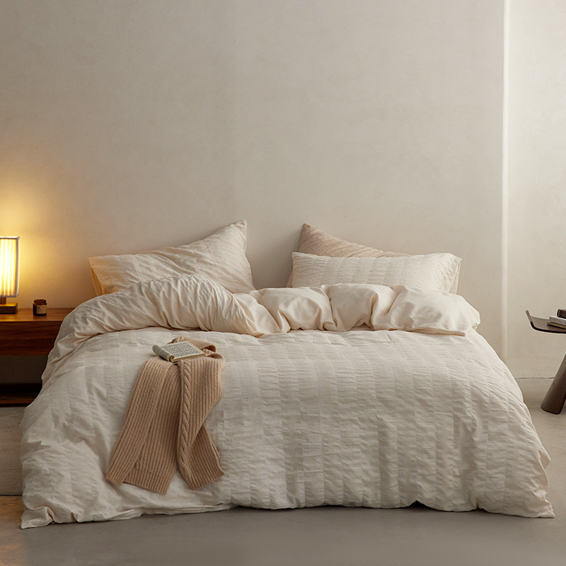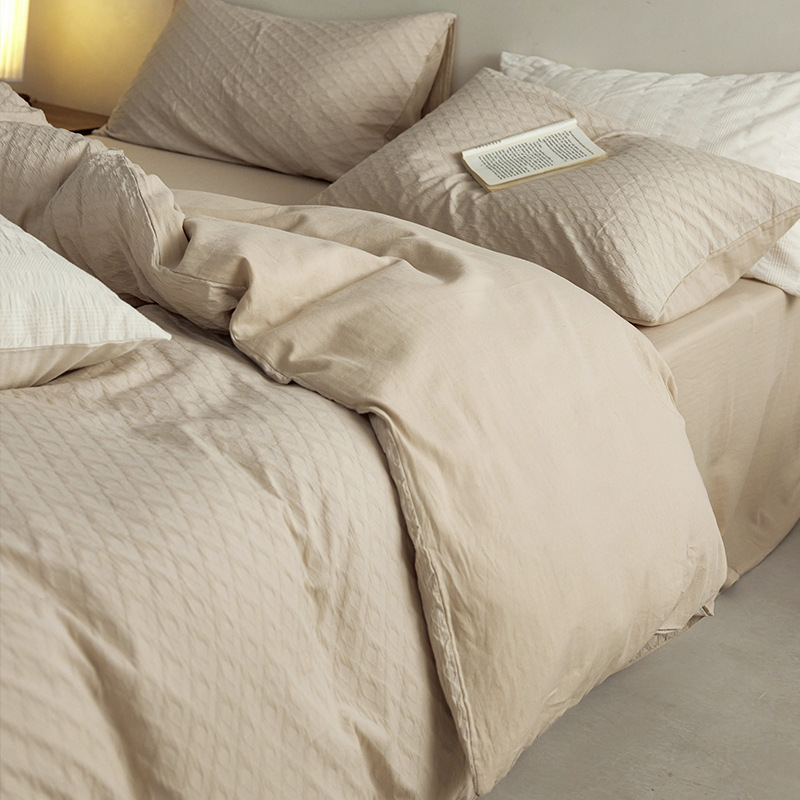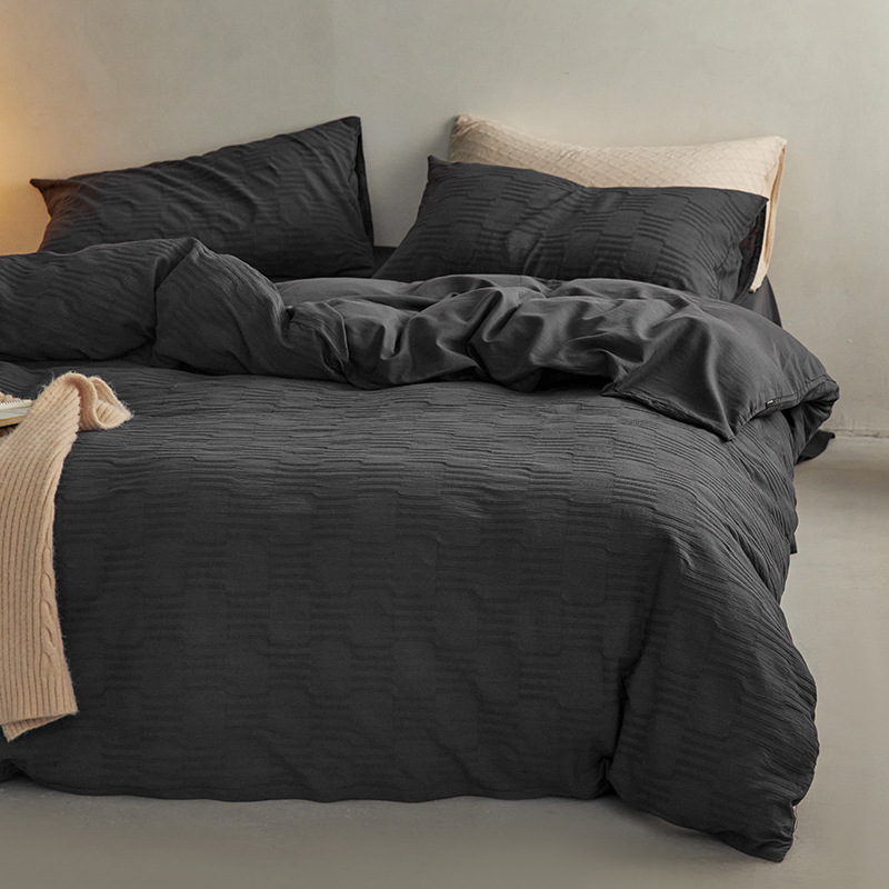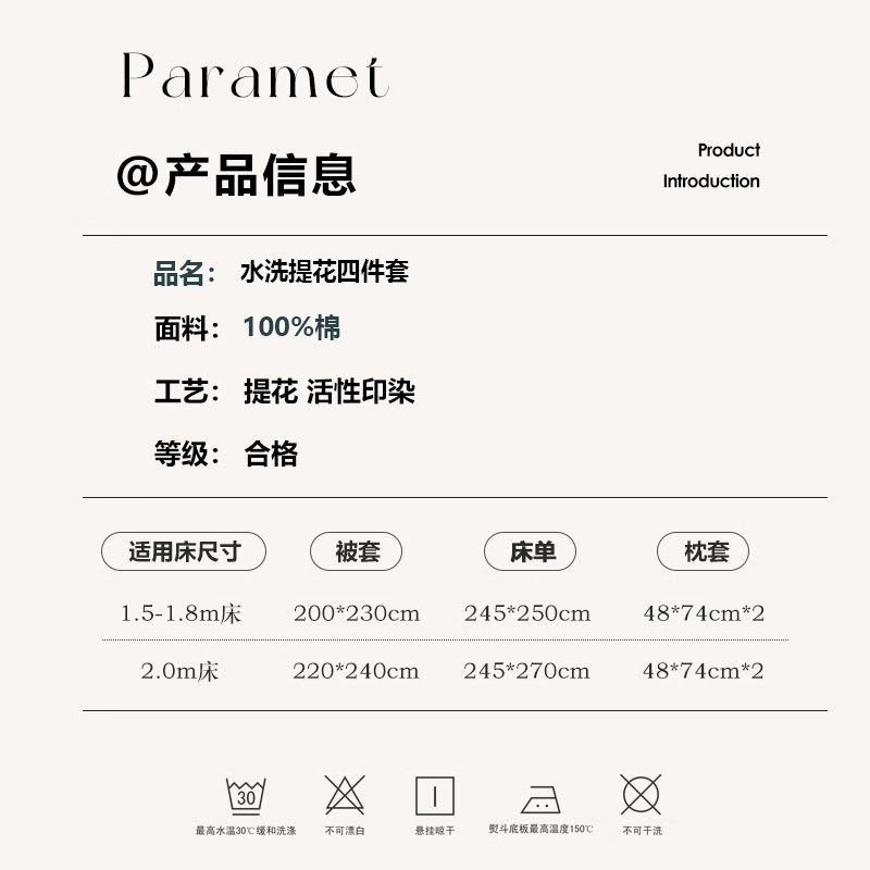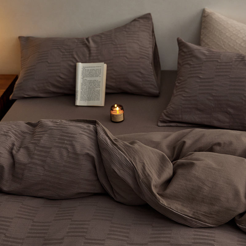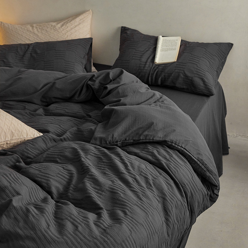 【水洗棉提花四件套】全棉提花水洗四件套纯色柔软亲肤床品套件裸睡