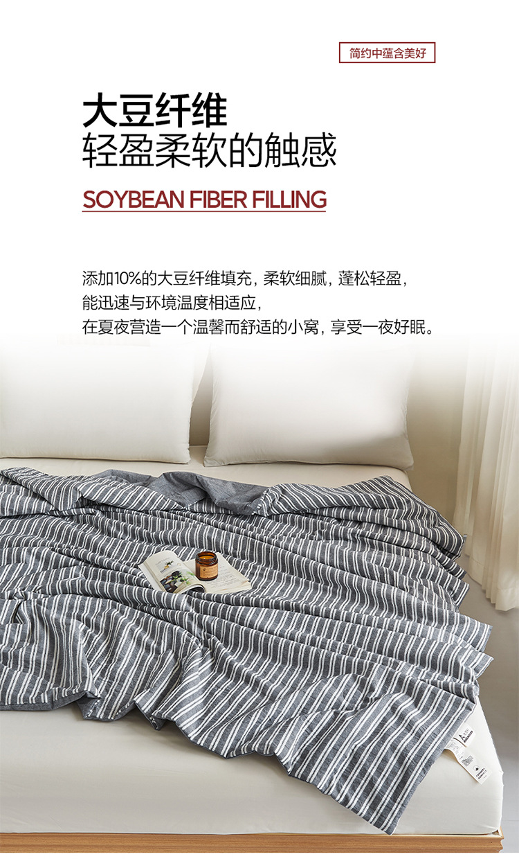 【条纹色织夏被】水洗棉夏被大豆纤维被条纹全棉柔软夏凉被空调被子