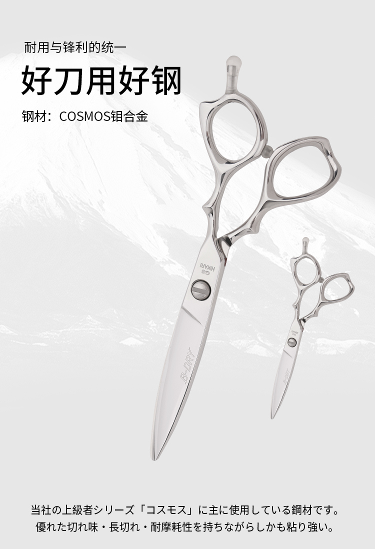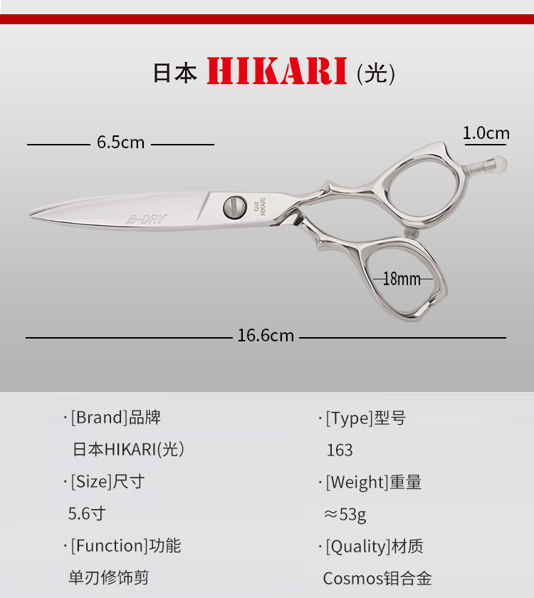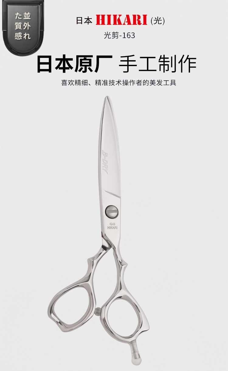 HIKARI 光剪B-DRY COSMOS 163 锋利/ 平剪/全手型剪/日式/柳叶剪滑刀/胖胖/纹理/ 专业滑剪 5.6寸/