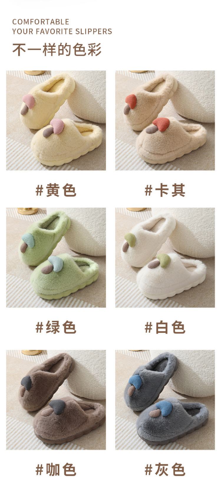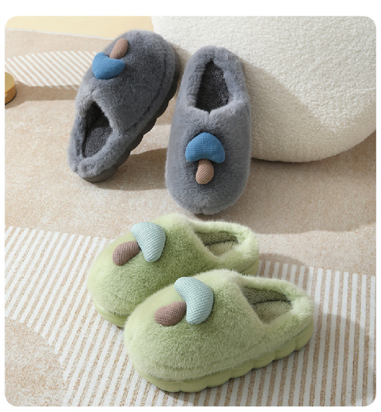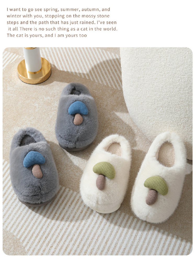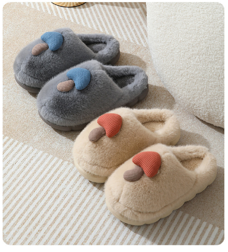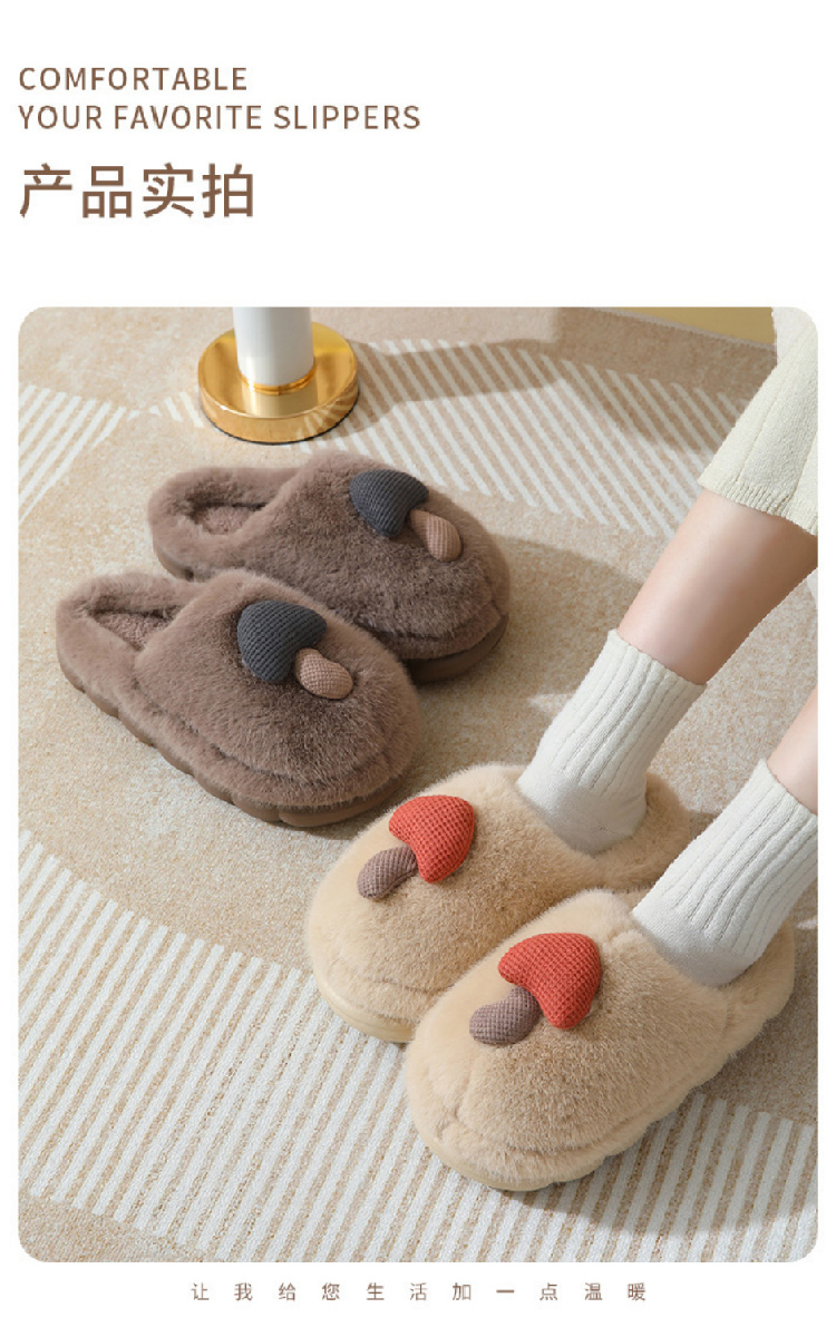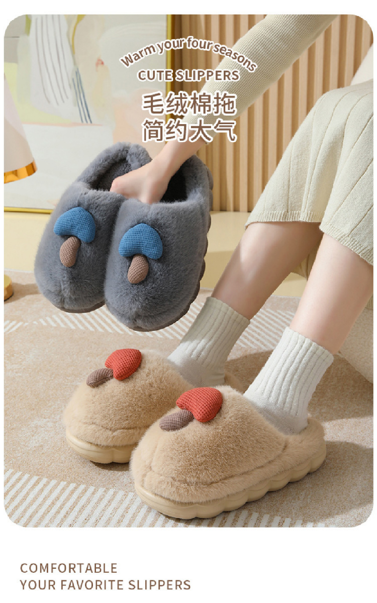 【蘑菇毛绒拖鞋】冬季可爱蘑菇加棉加厚拖鞋 情侣室内防滑家用卡通毛绒拖鞋