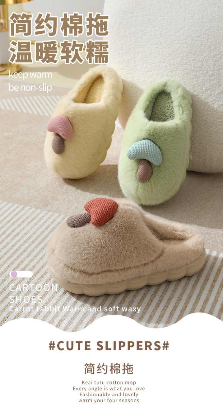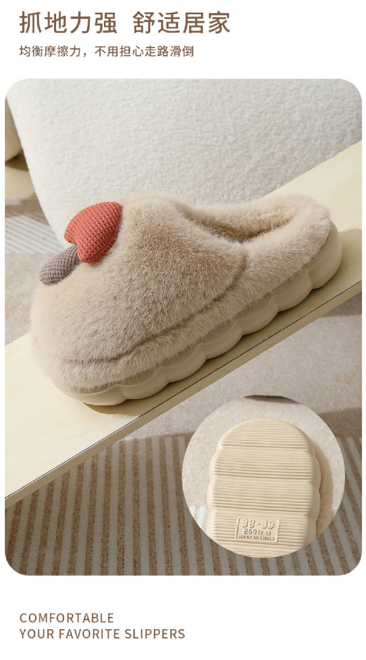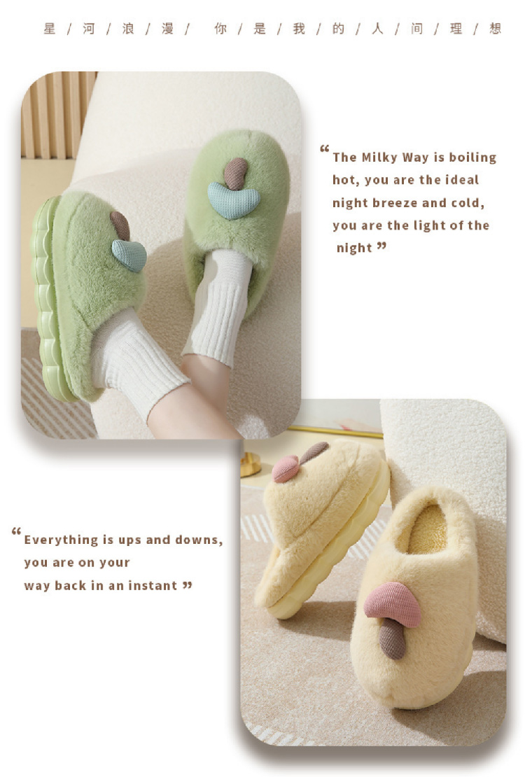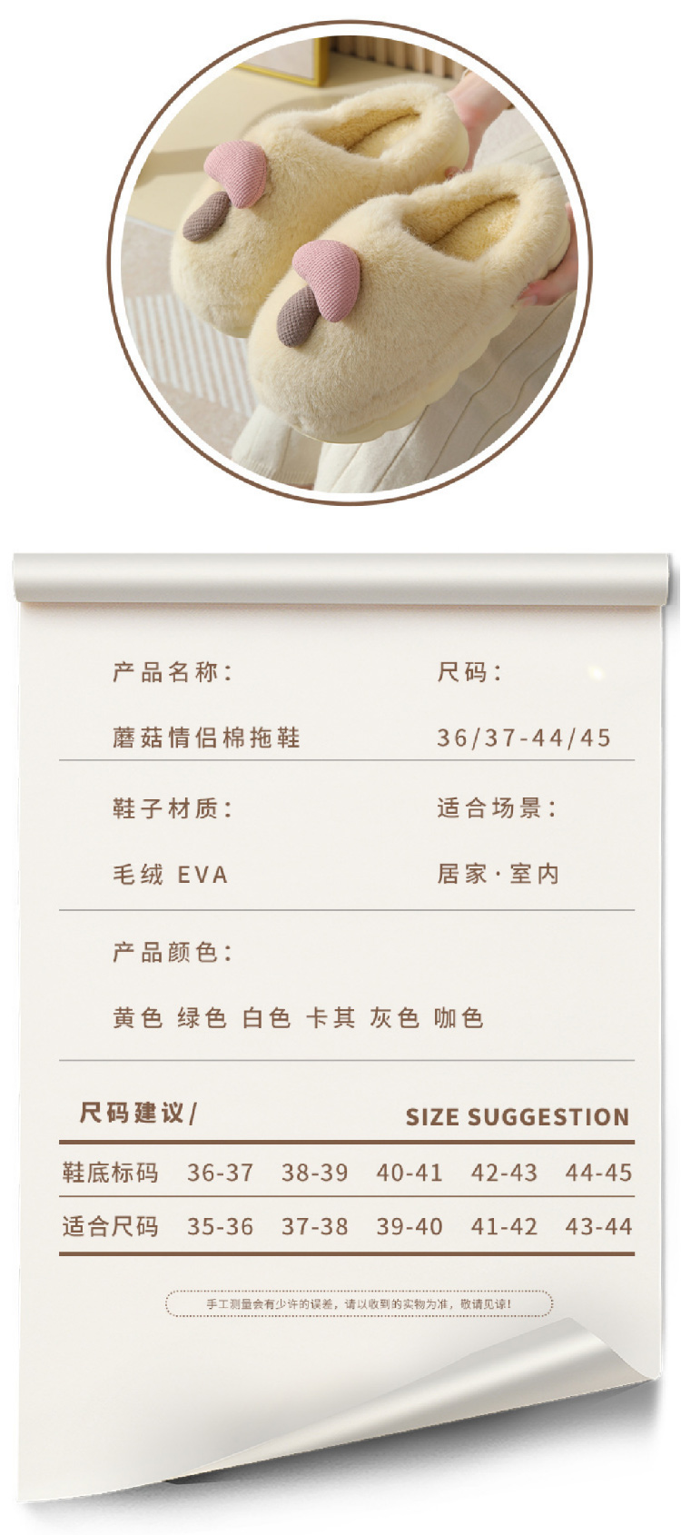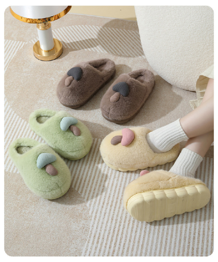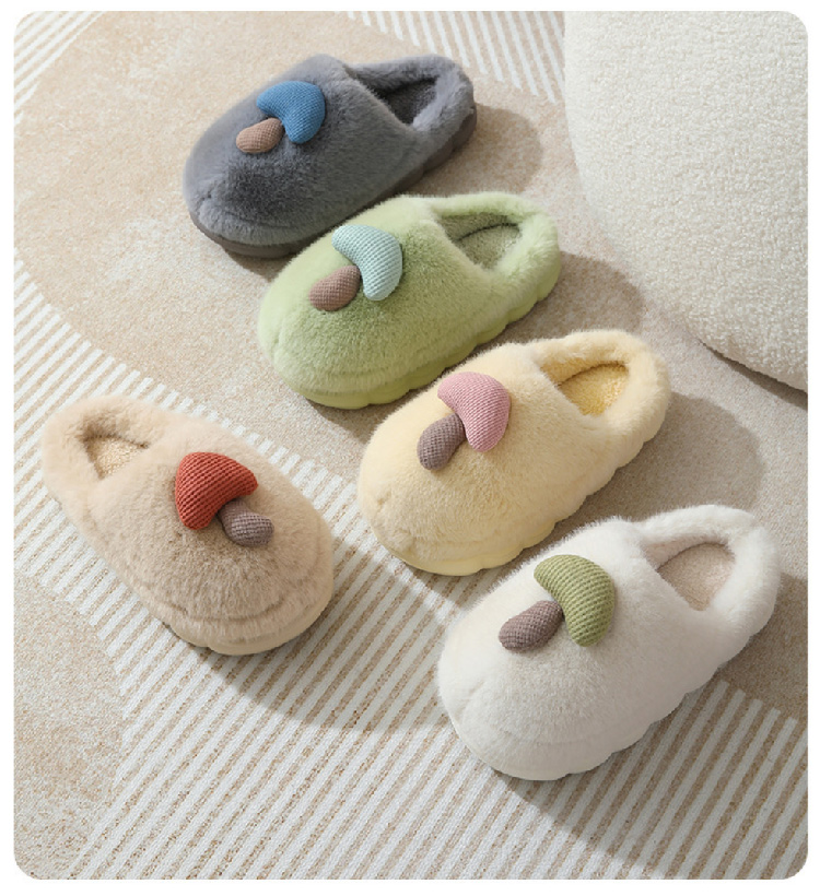 【蘑菇毛绒拖鞋】冬季可爱蘑菇加棉加厚拖鞋 情侣室内防滑家用卡通毛绒拖鞋