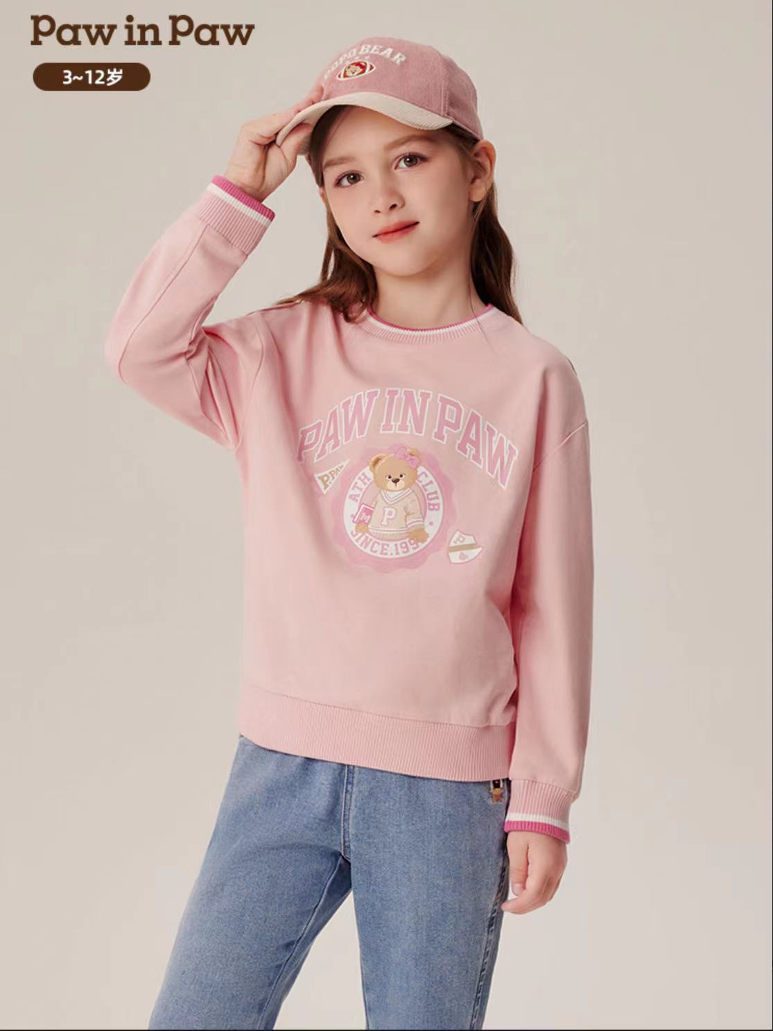 [PawinPaw]B8F小熊童装2024年早秋新款男女童圆领卫衣舒适简约好搭PCMAE3811M