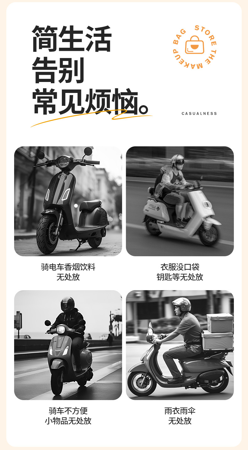 【电动车收纳好物!告别物品无处放】电动车挂包挂物包头盔雨衣收纳袋电瓶车防水储物包大容量前置挂兜。ry