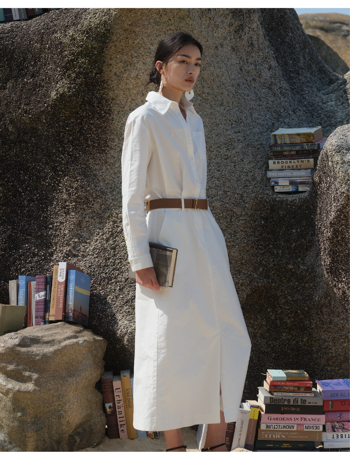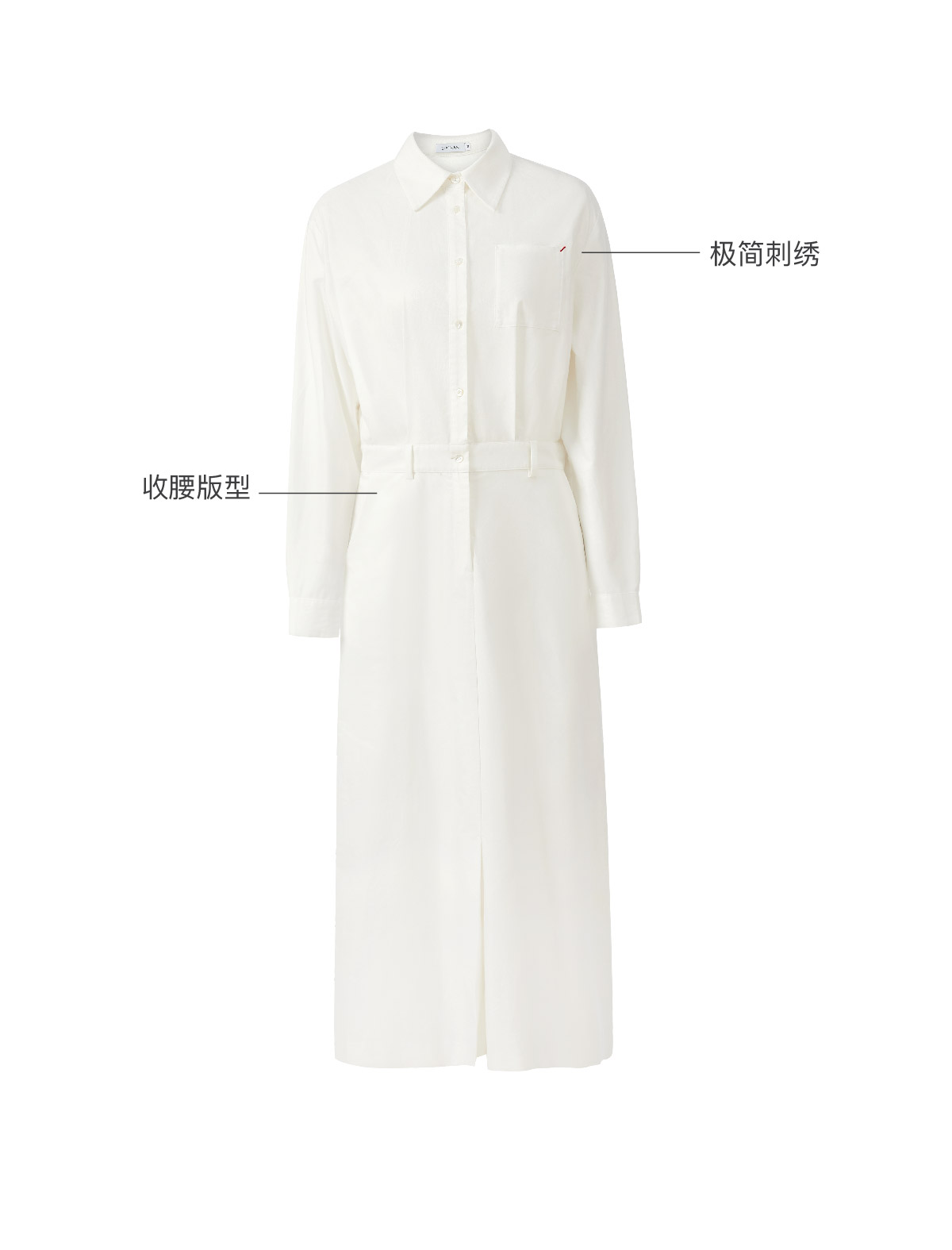 LIYIHAN 25夏纯色亚麻衬衫式连衣裙长袖高腰连衣裙显瘦法式百搭