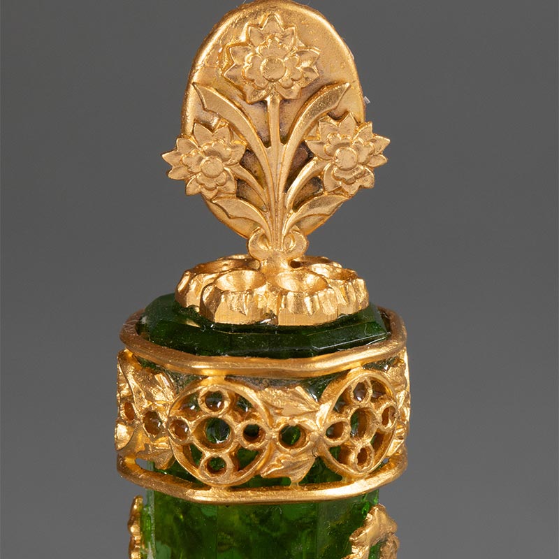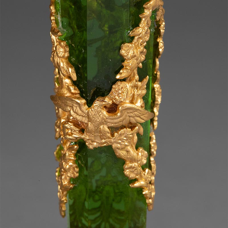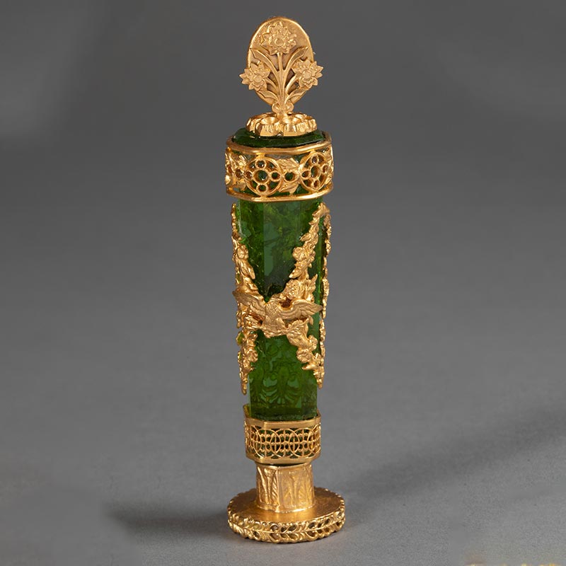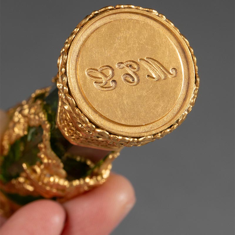 19世纪法国出品女神花卉主题铜鎏金精雕嵌卡梅奥古典肖像浮雕装饰绿色水晶火漆印章